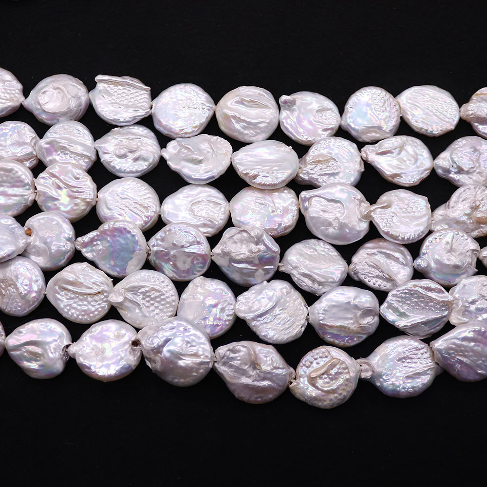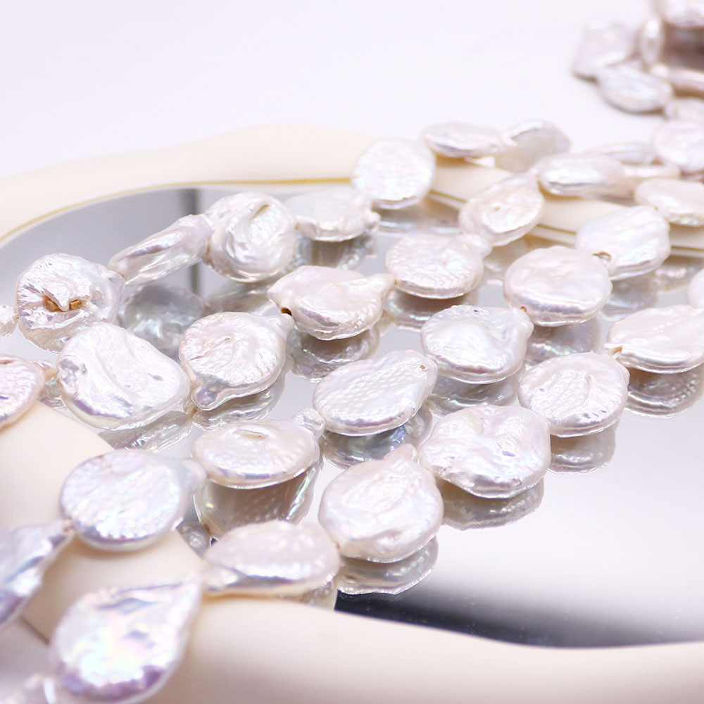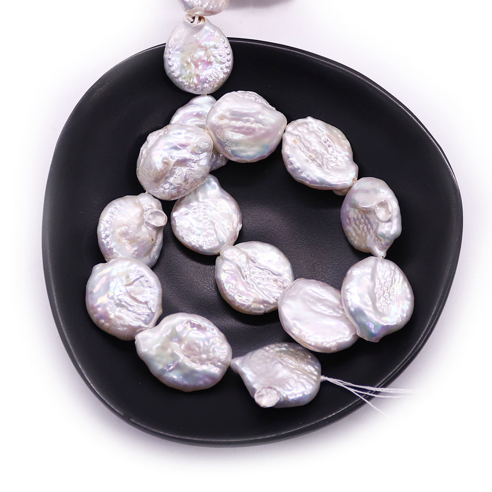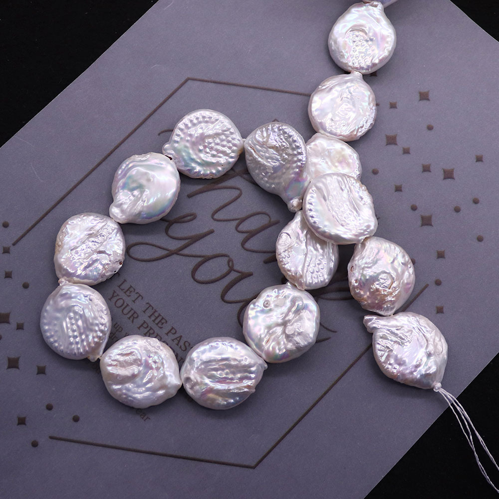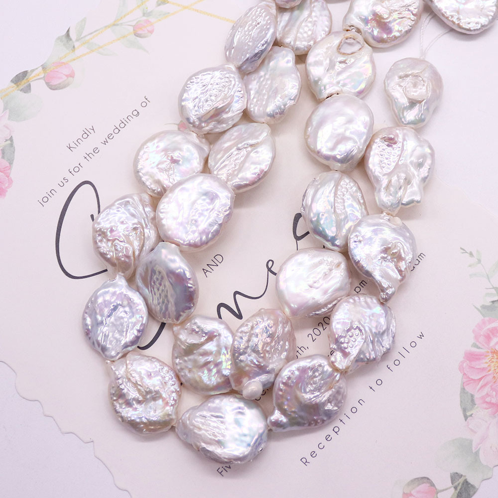 Button kultivierte Süßwasserperlen, Natürliche kultivierte Süßwasserperlen, Barock, DIY, weiß, 20x24mm, Länge:38 cm, verkauft von Strang
