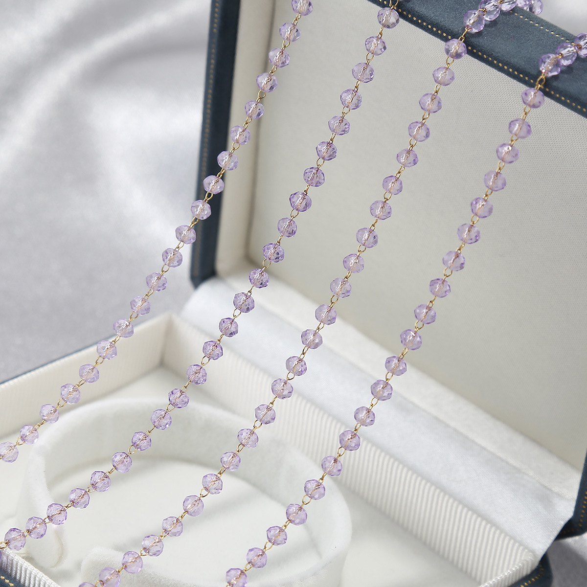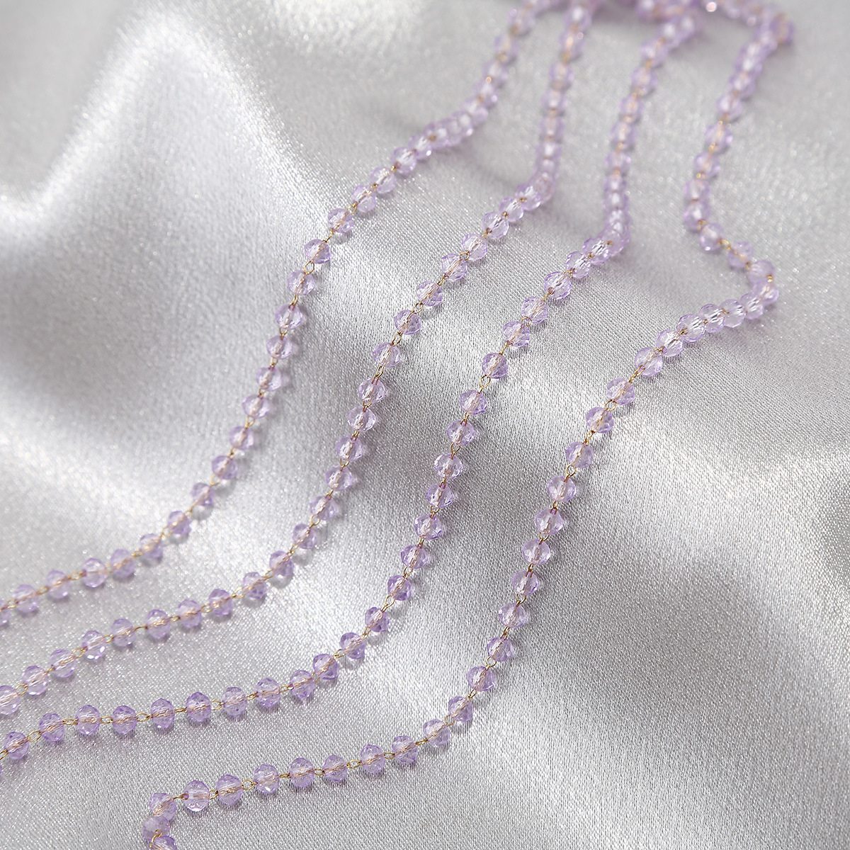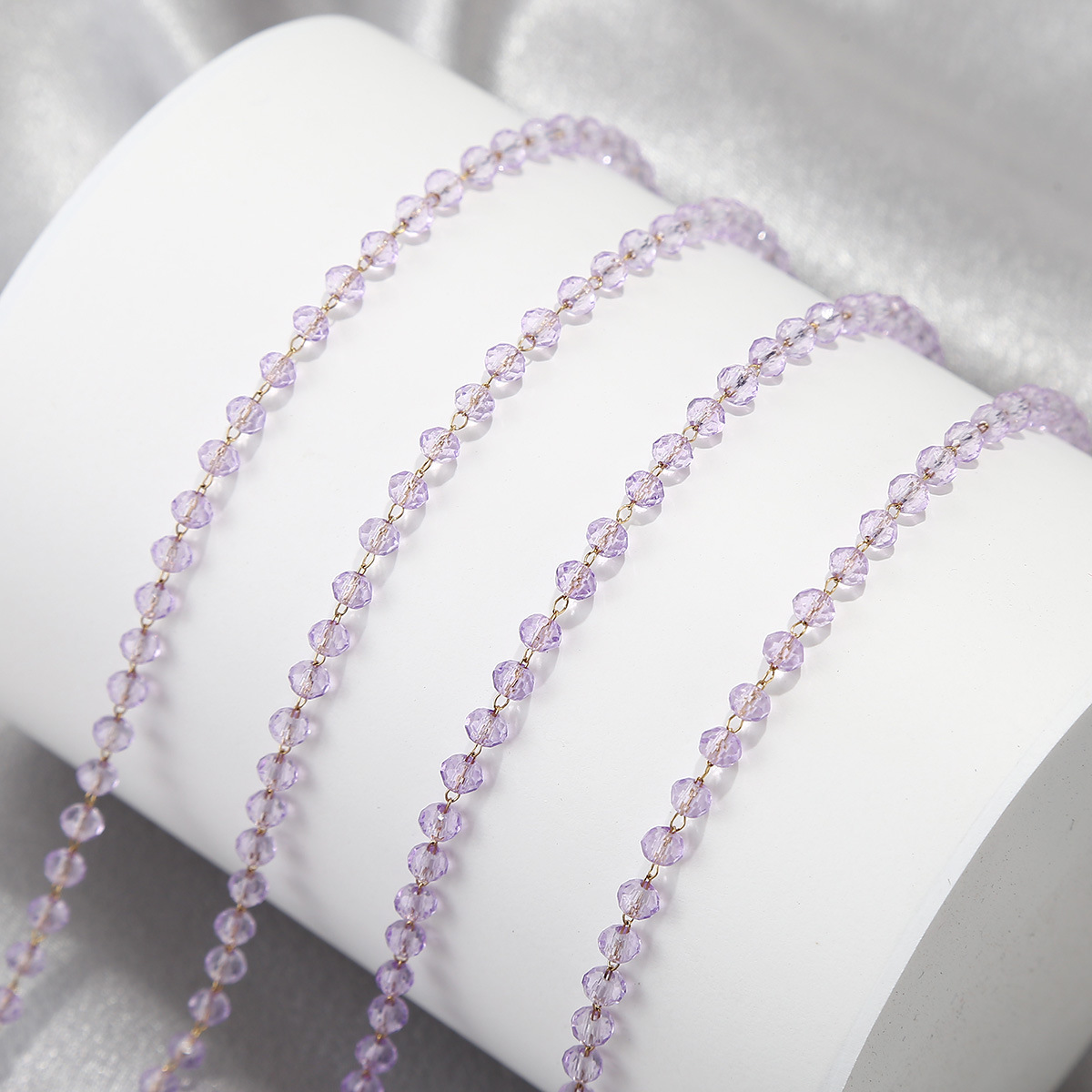 Edelstein Perlen Kette, 304 Edelstahl, mit Glas, plattiert, DIY, violett, verkauft von m