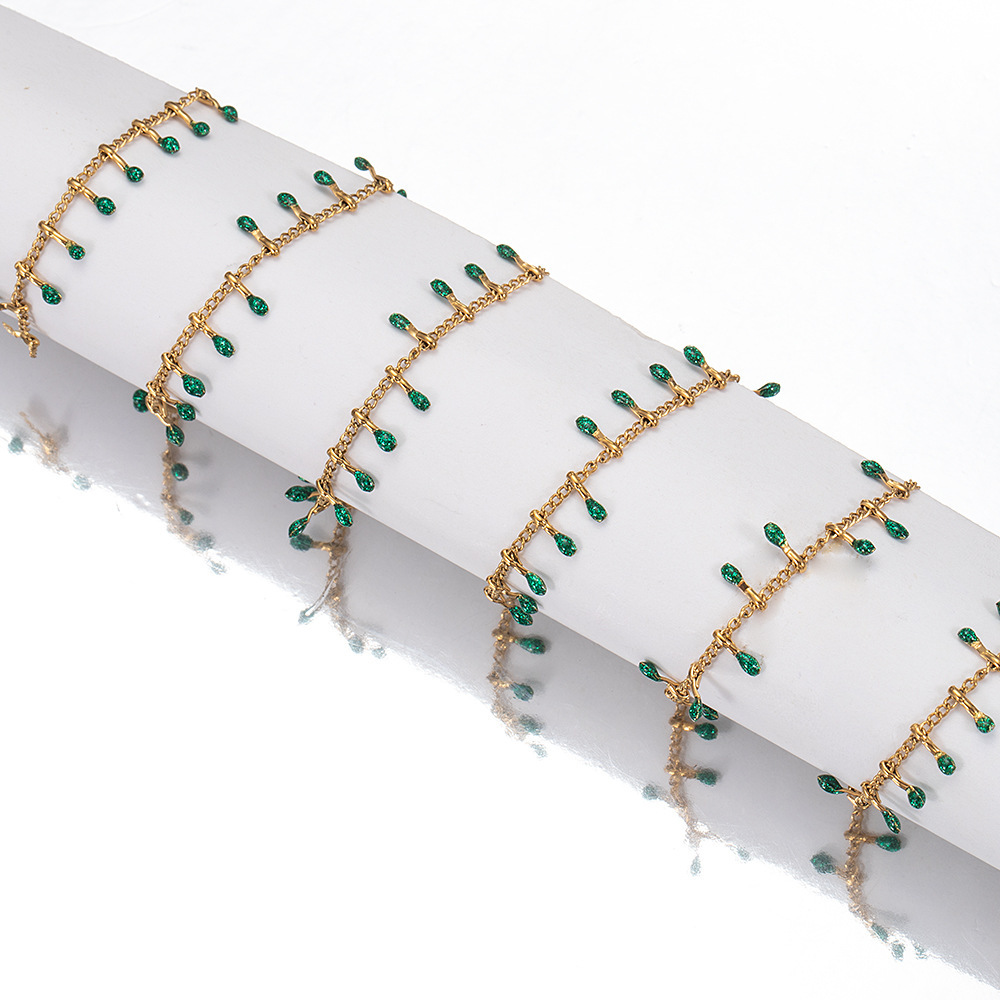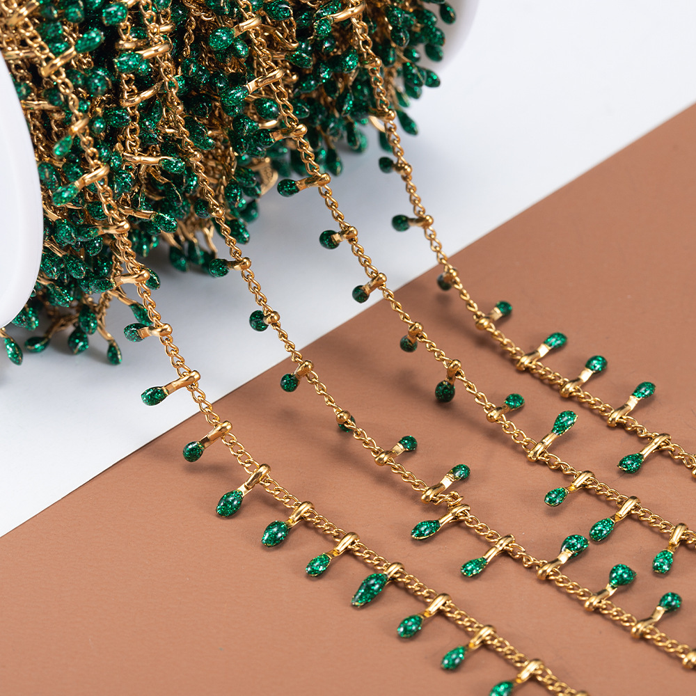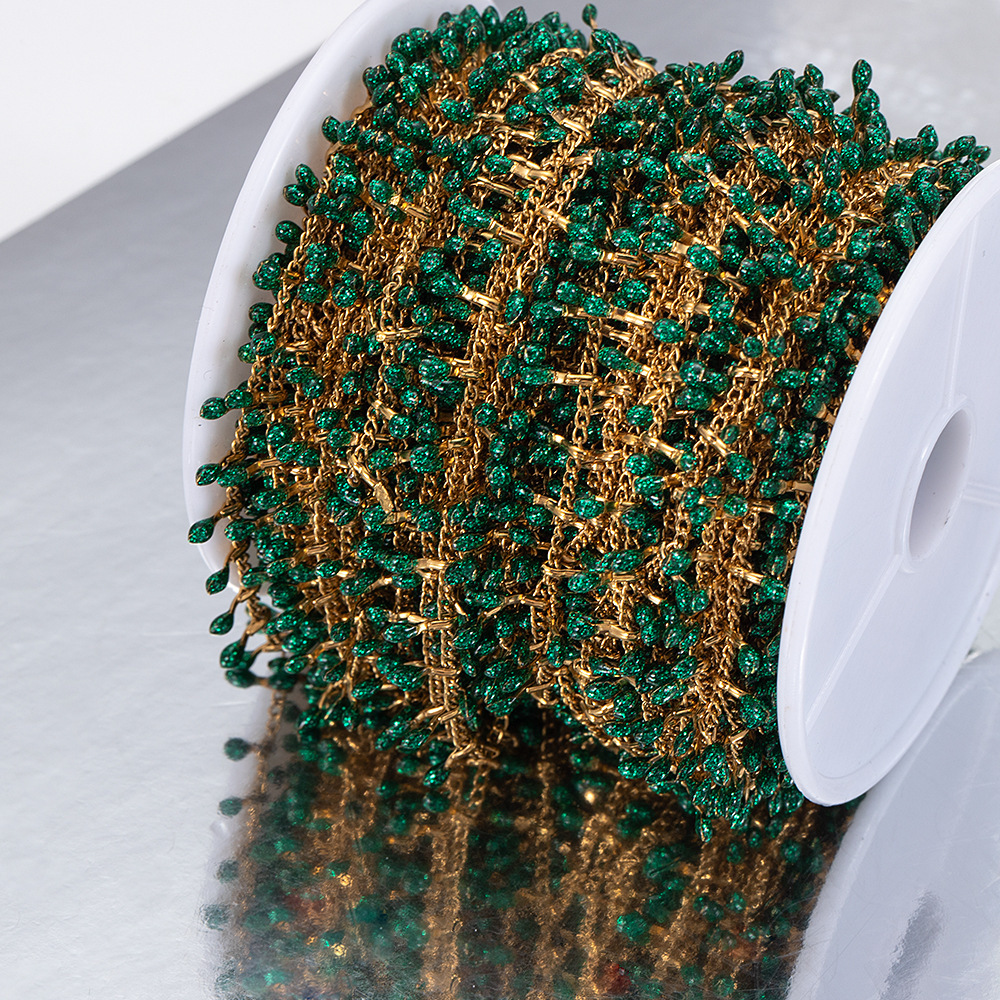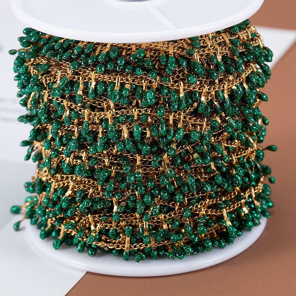 Edelstein Perlen Kette, 304 Edelstahl, goldfarben plattiert, DIY & Emaille, grün, 1m/Tasche, verkauft von Tasche
