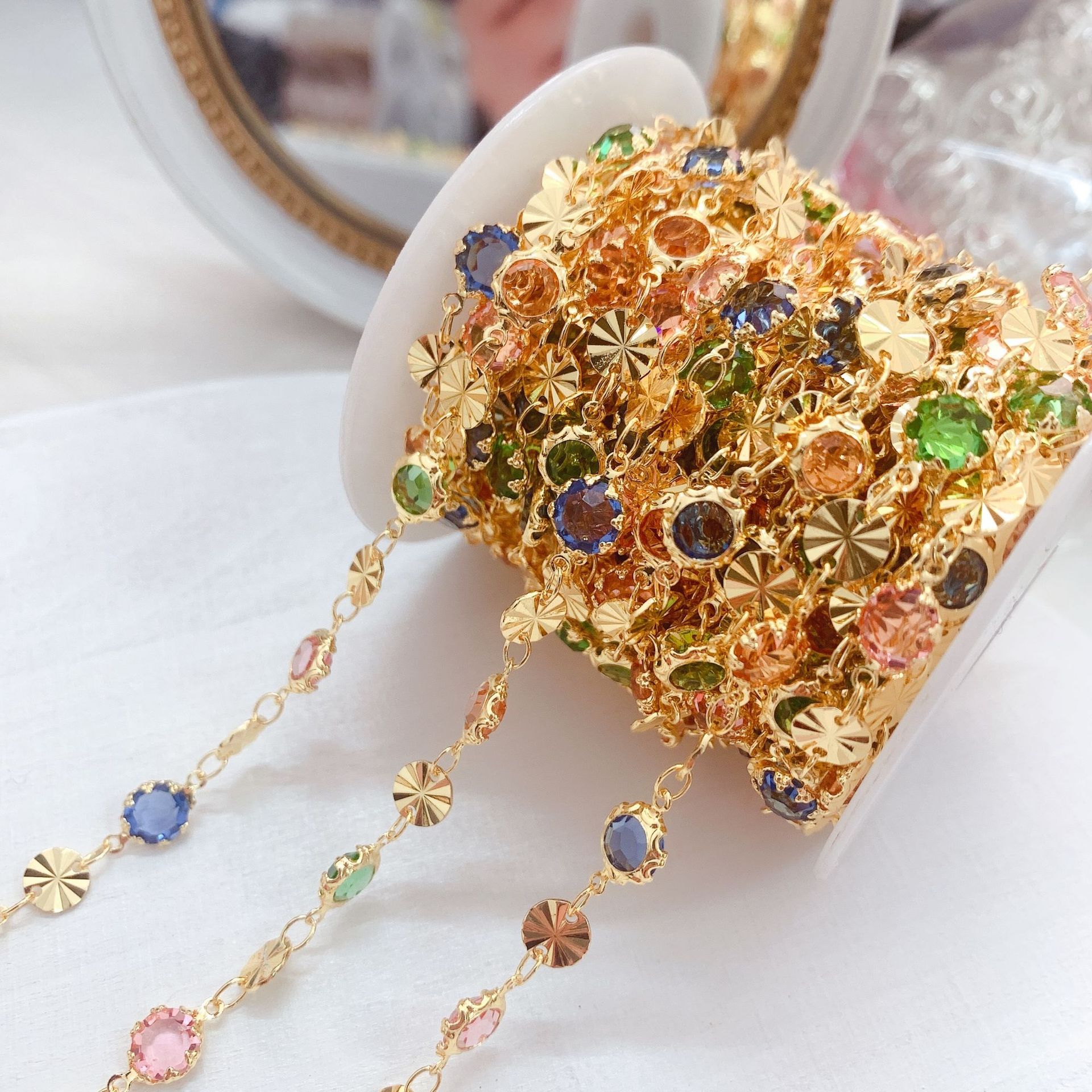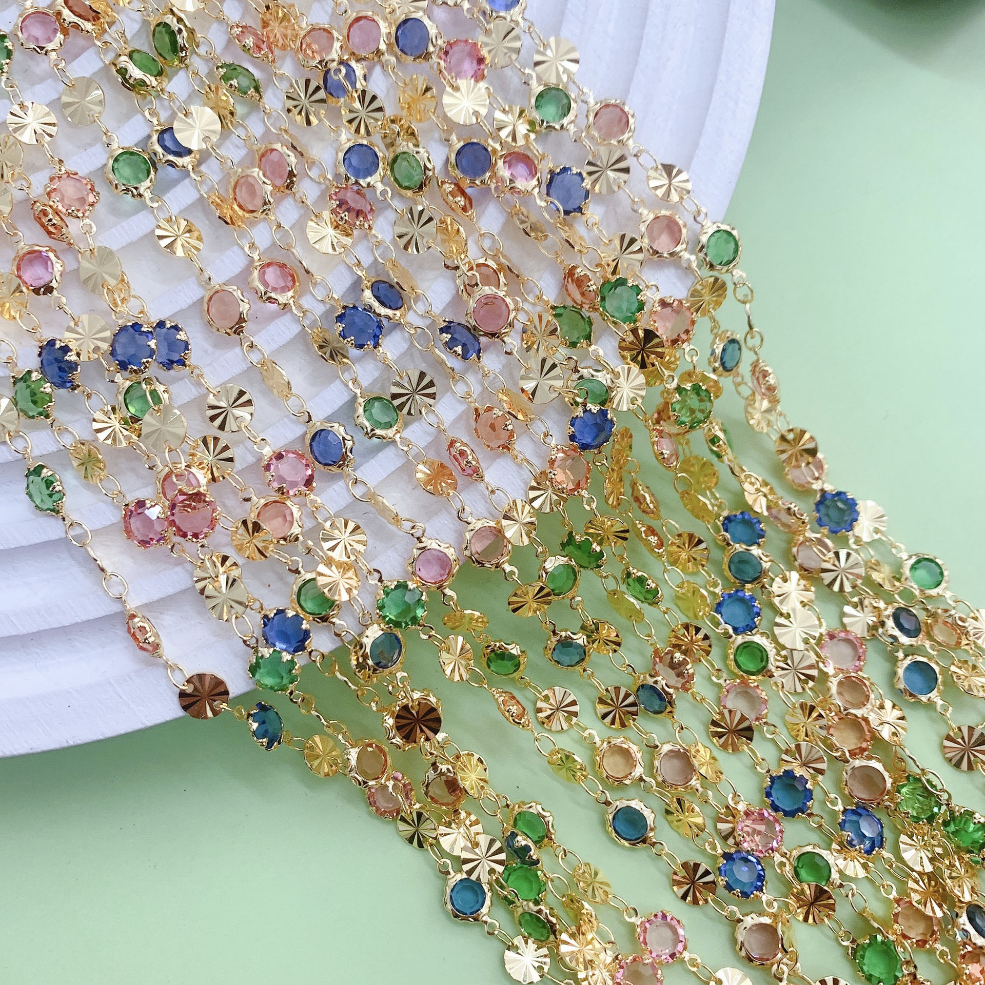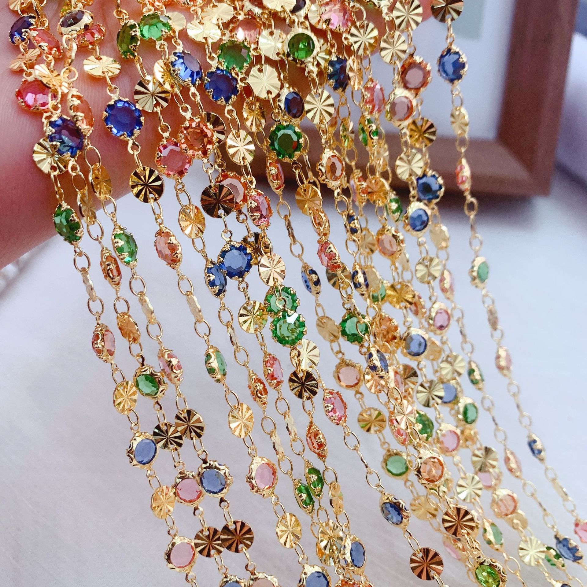Edelstein Perlen Kette, Messing, mit kubischer Zirkonia, goldfarben plattiert, DIY, gemischte Farben, 10m/Tasche, verkauft von Tasche