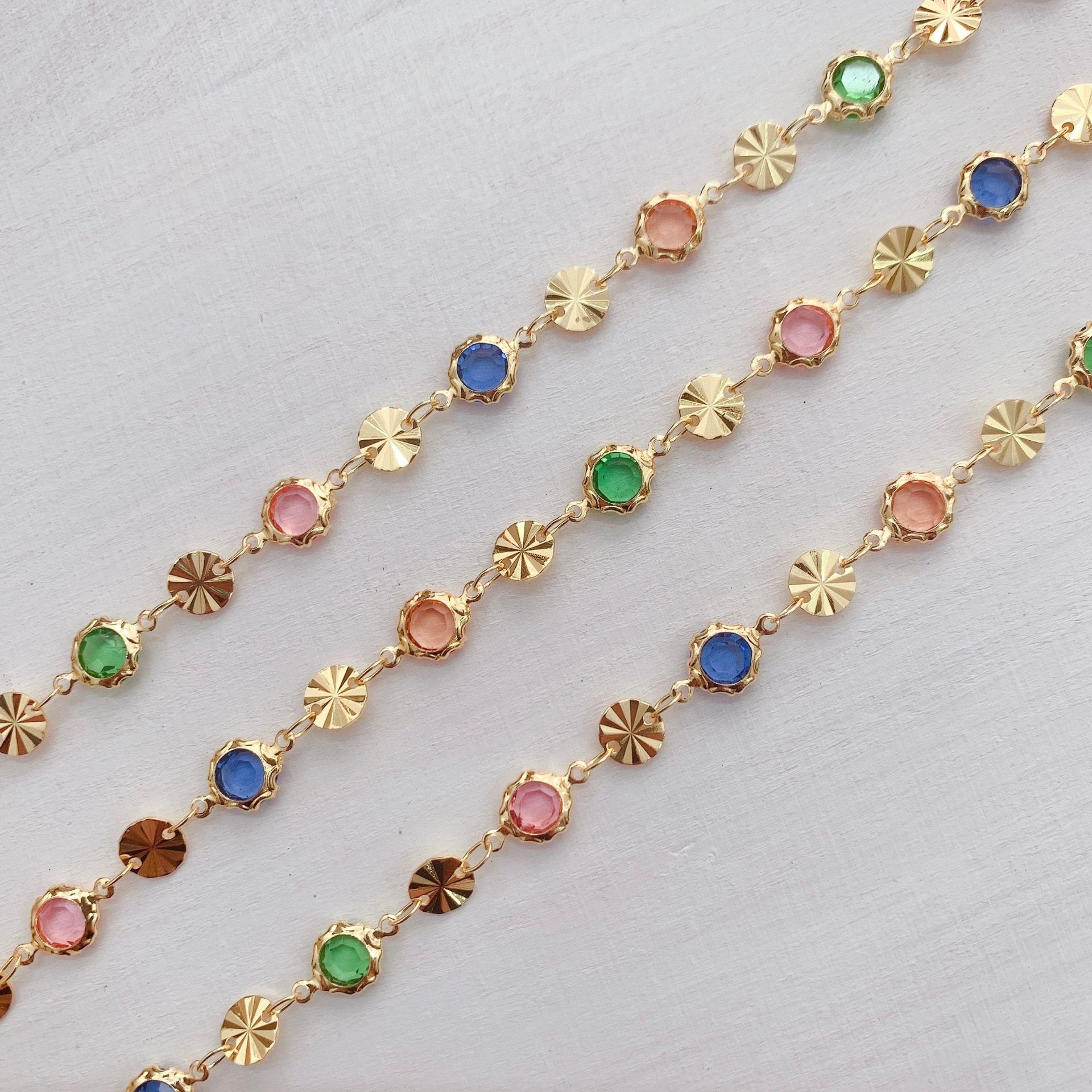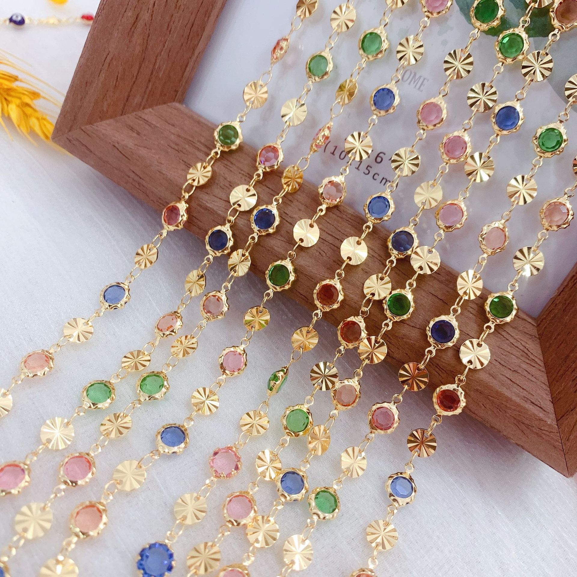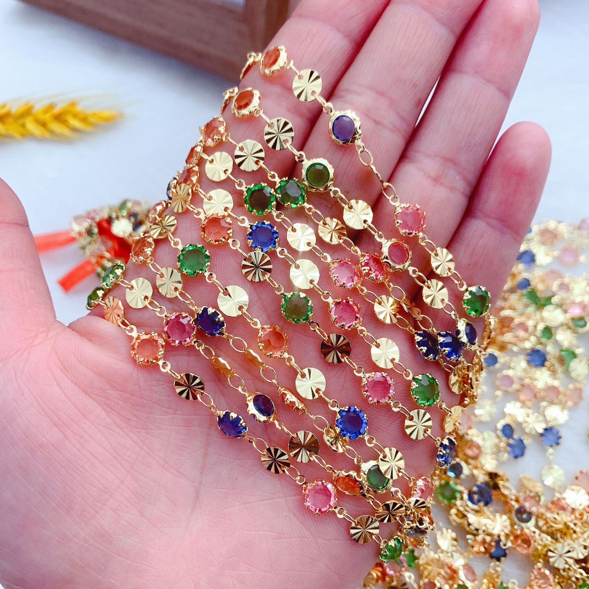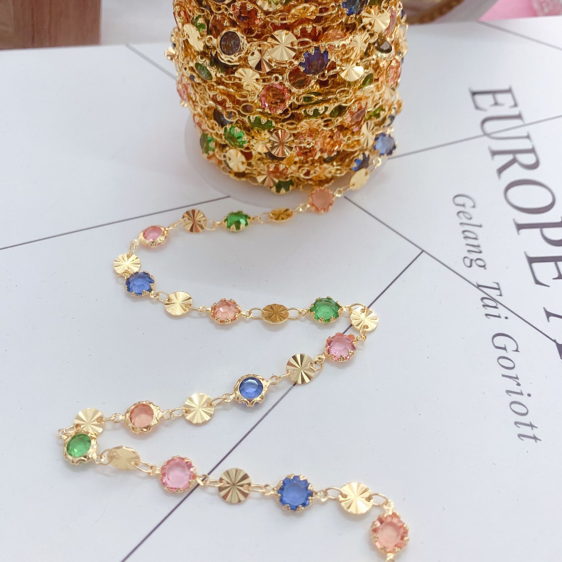 Edelstein Perlen Kette, Messing, mit kubischer Zirkonia, goldfarben plattiert, DIY, gemischte Farben, 10m/Tasche, verkauft von Tasche