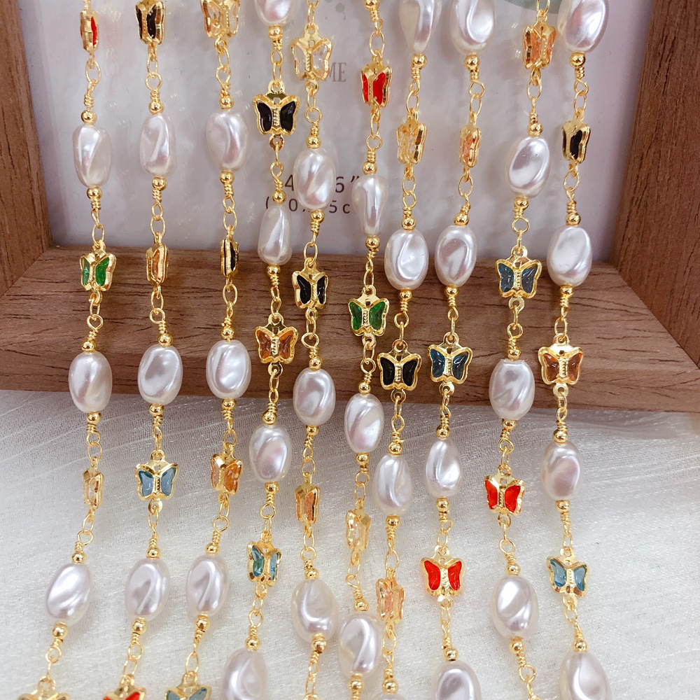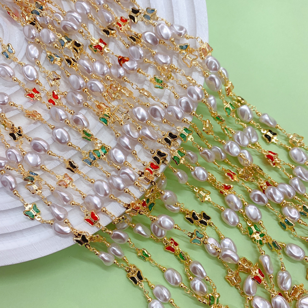 Edelstein Perlen Kette, Messing, mit Kunststoff Perlen, Schmetterling, goldfarben plattiert, DIY & mit Strass, gemischte Farben, 10m/Tasche, verkauft von Tasche