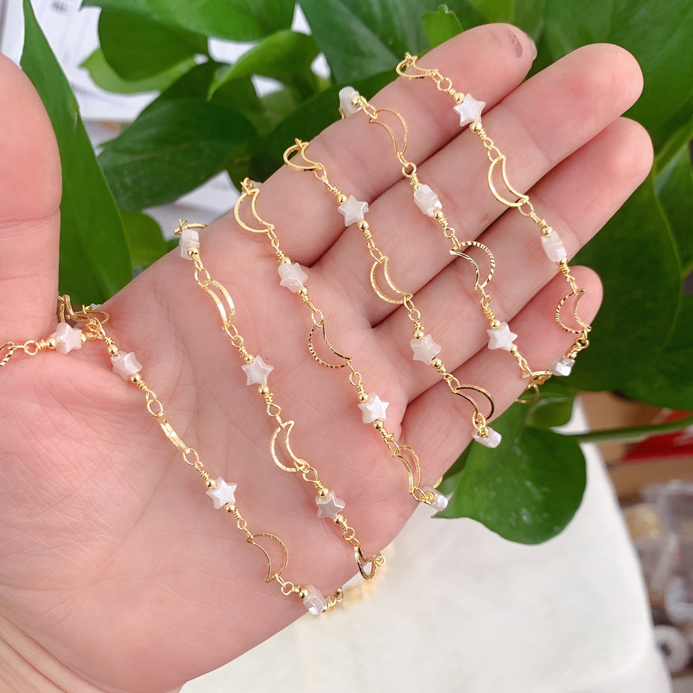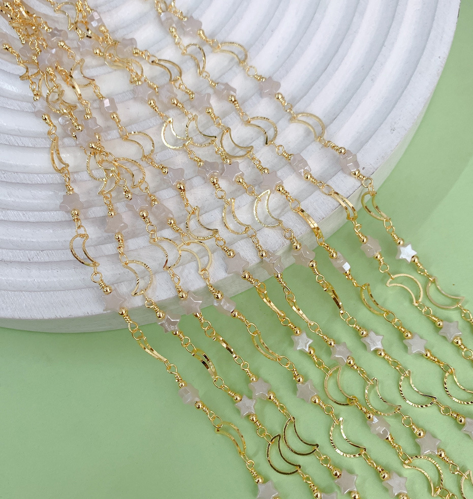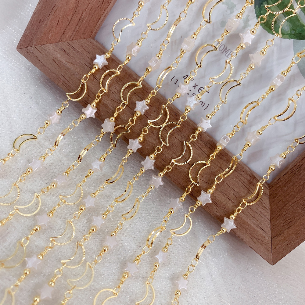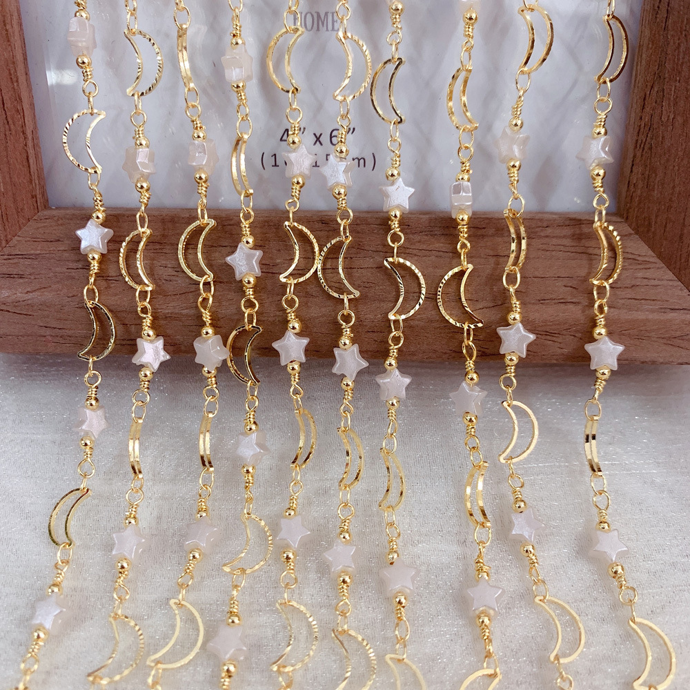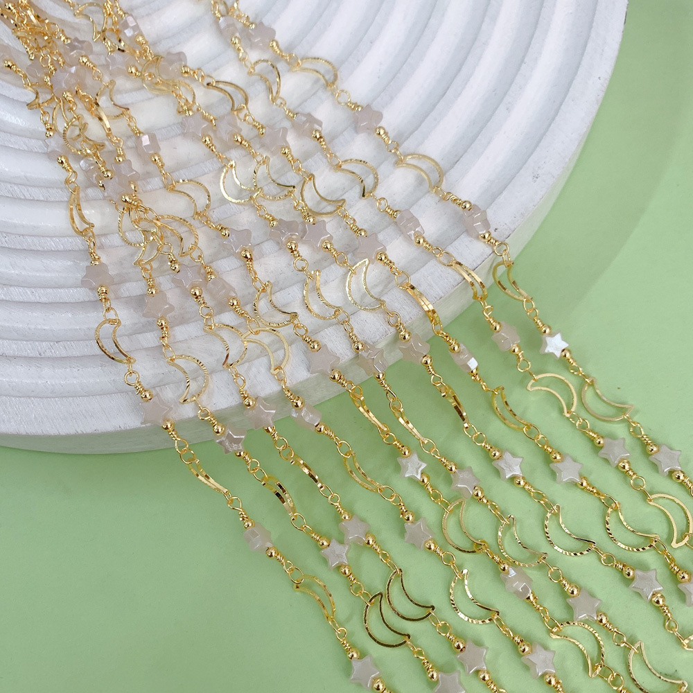 Edelstein Perlen Kette, Messing, mit Kunststoff Perlen, Mond und Sterne, goldfarben plattiert, DIY, 10m/Tasche, verkauft von Tasche