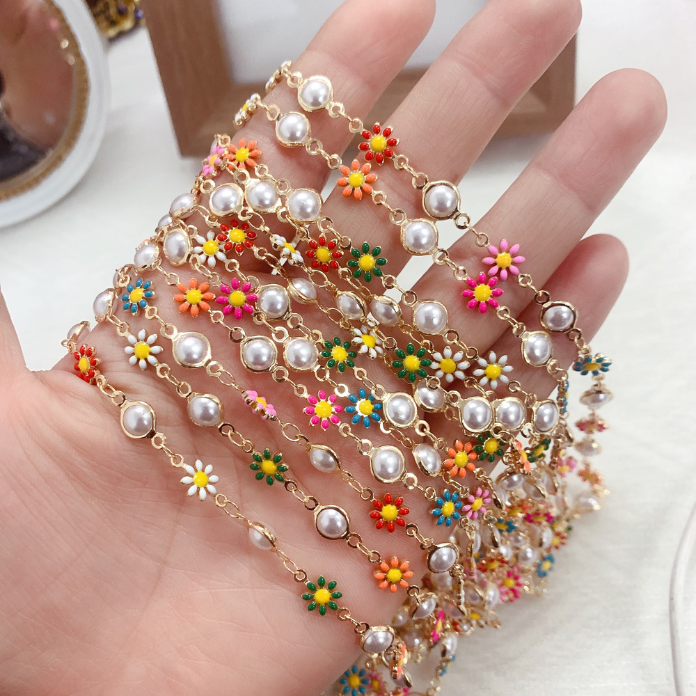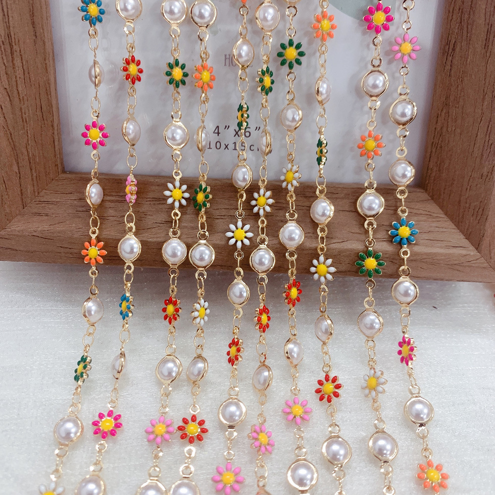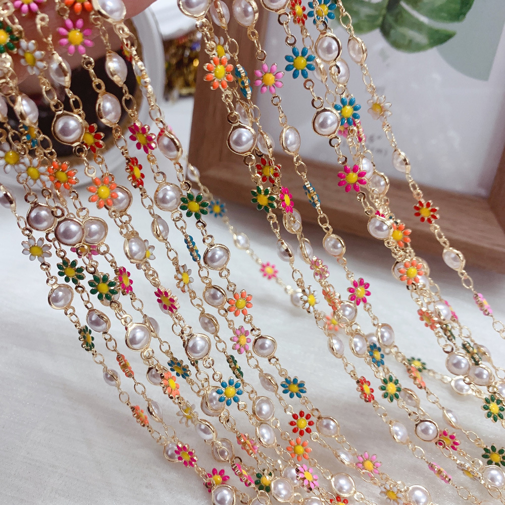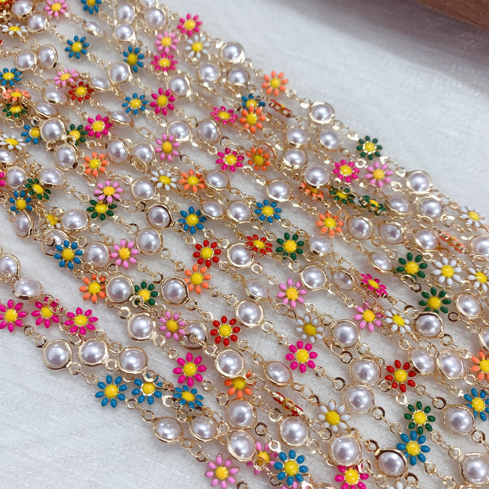 Edelstein Perlen Kette, Messing, mit Kunststoff Perlen, Blume, goldfarben plattiert, DIY & Emaille, gemischte Farben, 10m/Tasche, verkauft von Tasche