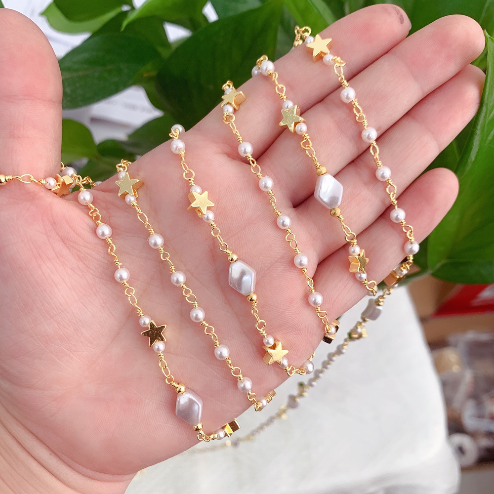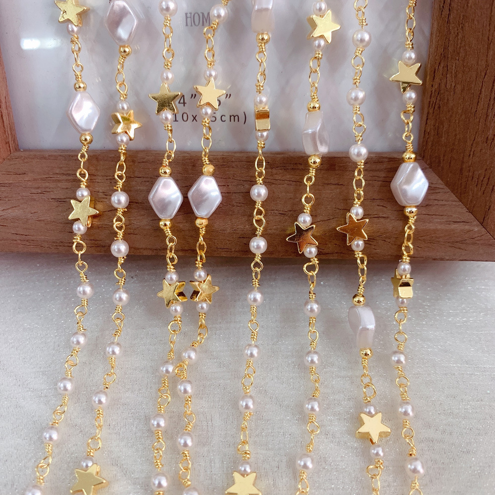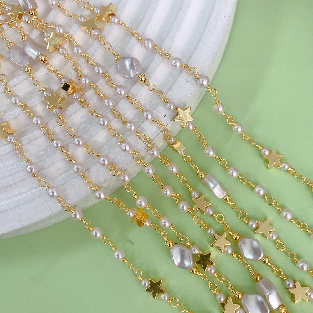 Edelstein Perlen Kette, Messing, mit Kunststoff Perlen, Stern, goldfarben plattiert, DIY, 10m/Tasche, verkauft von Tasche