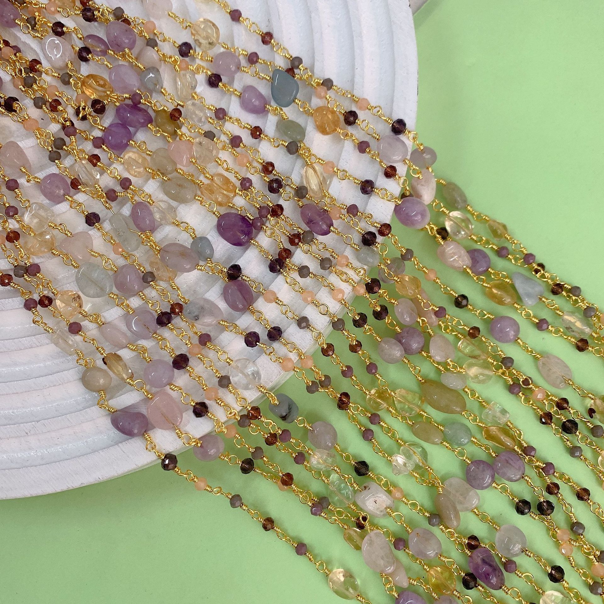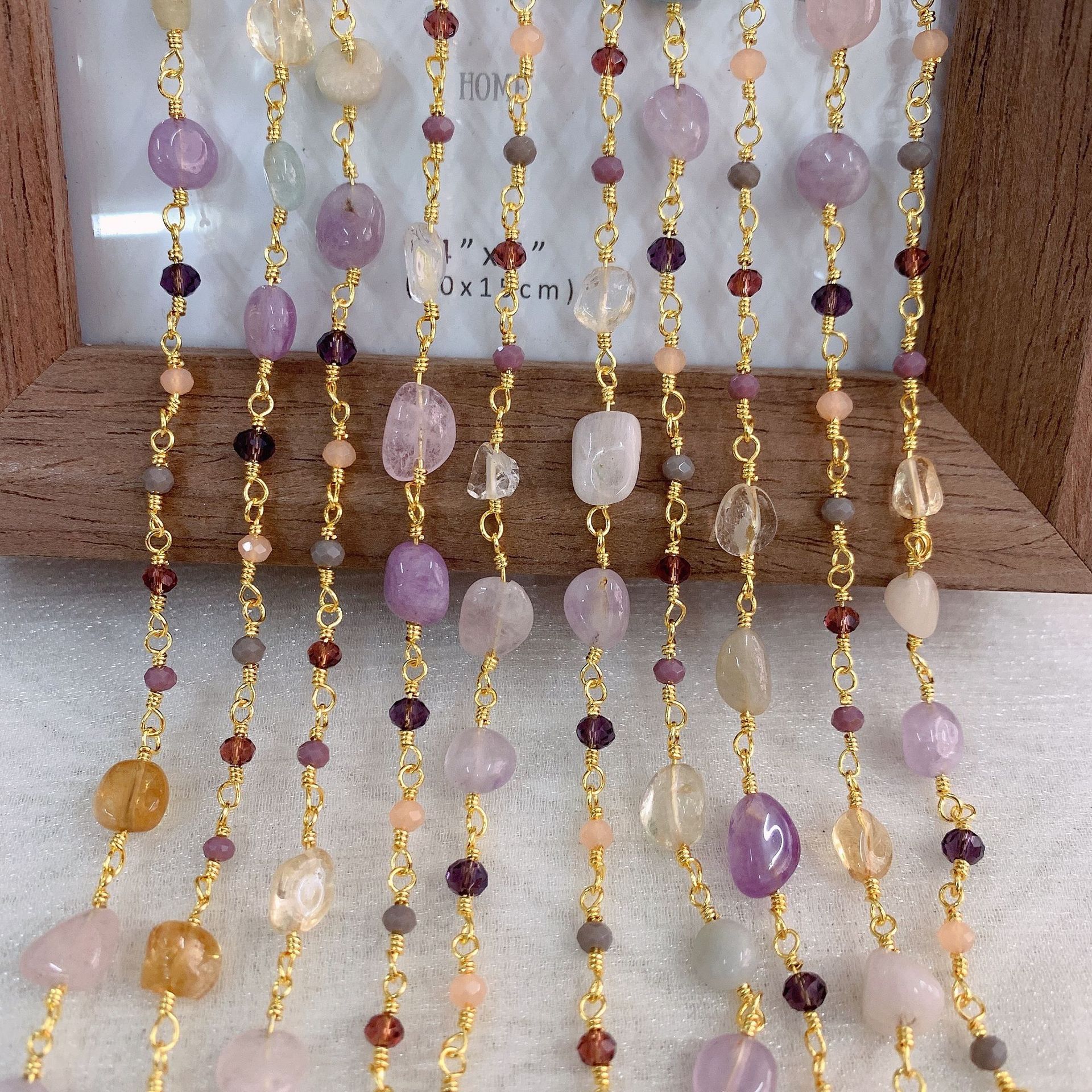 Edelstein Perlen Kette, Messing, mit Amethyst, goldfarben plattiert, DIY, 10PCs/Tasche, verkauft von Tasche