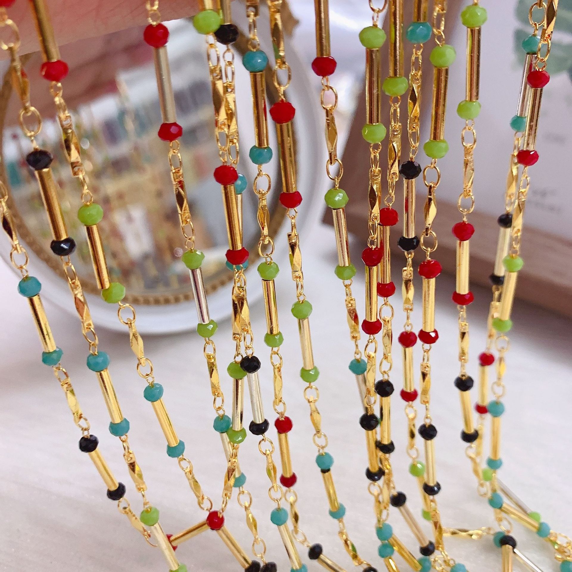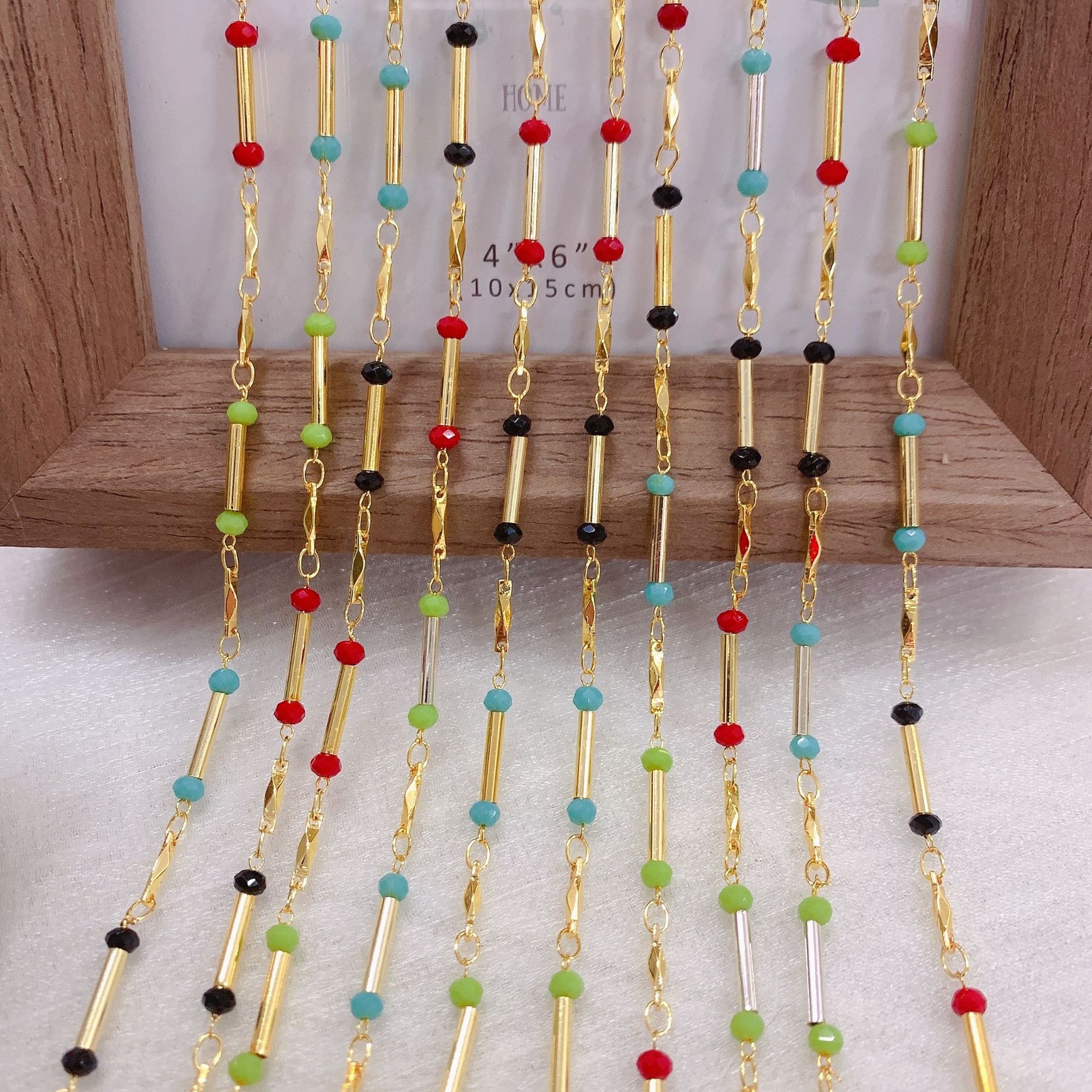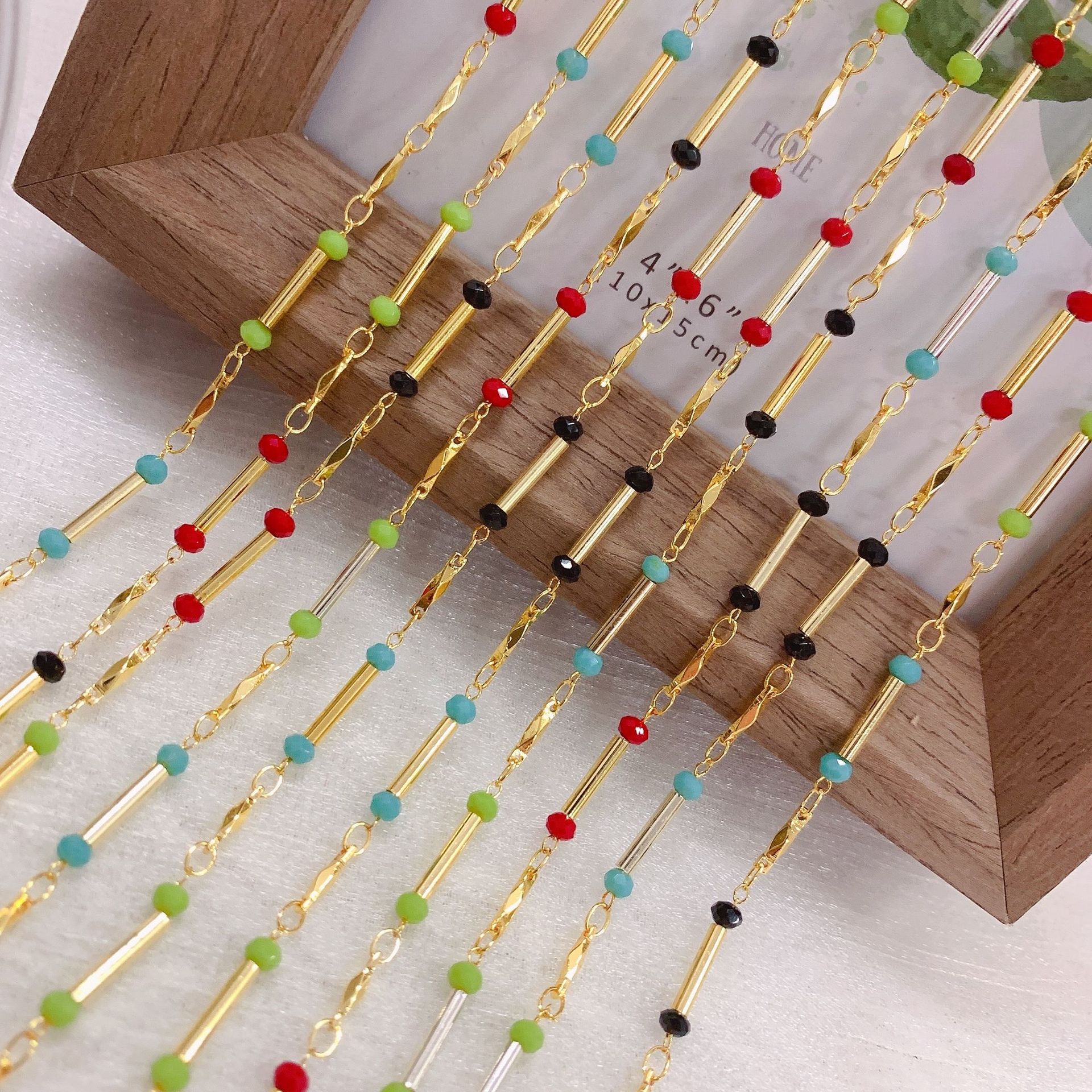 Edelstein Perlen Kette, Messing, mit Glas, goldfarben plattiert, DIY, gemischte Farben, 10m/Tasche, verkauft von Tasche