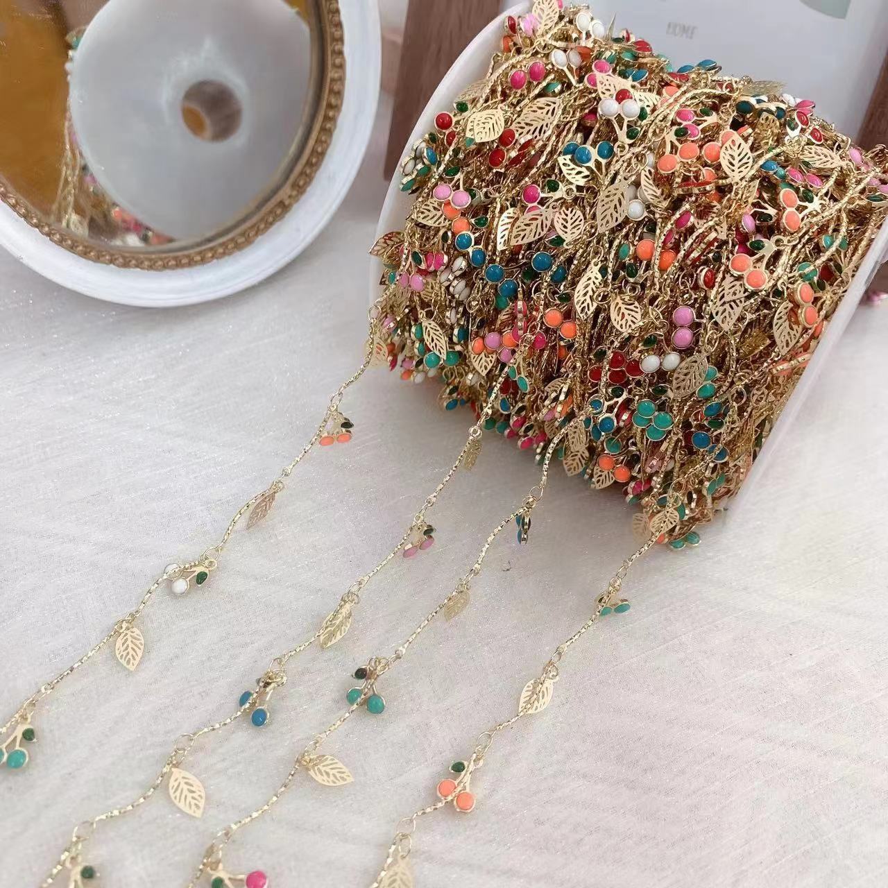 Edelstein Perlen Kette, Messing, Kirsche, goldfarben plattiert, DIY & Emaille, gemischte Farben, 10m/Tasche, verkauft von Tasche