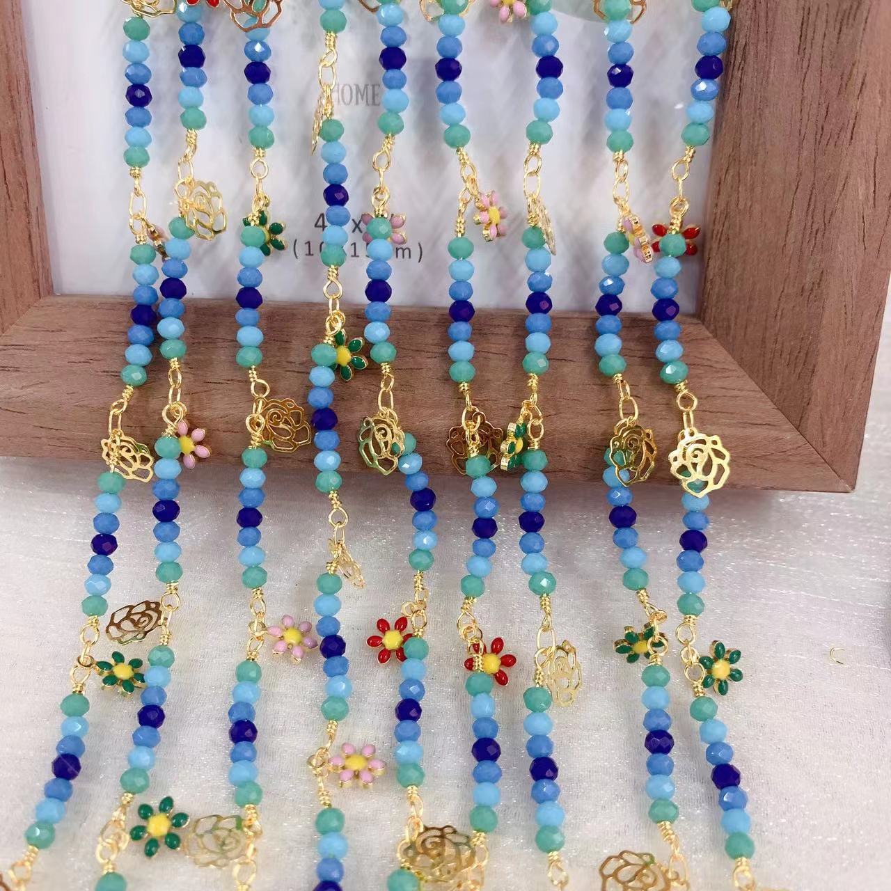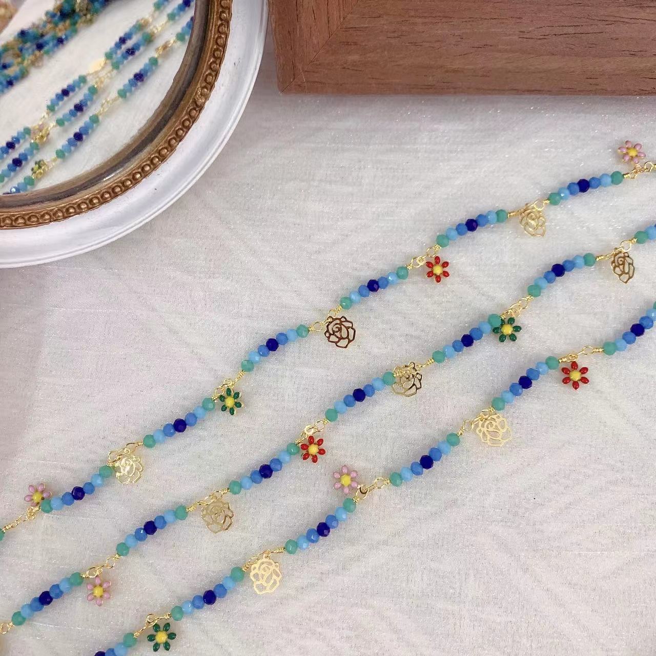 Edelstein Perlen Kette, Messing, mit Kunststoff, goldfarben plattiert, DIY & Emaille, gemischte Farben, 10m/Tasche, verkauft von Tasche