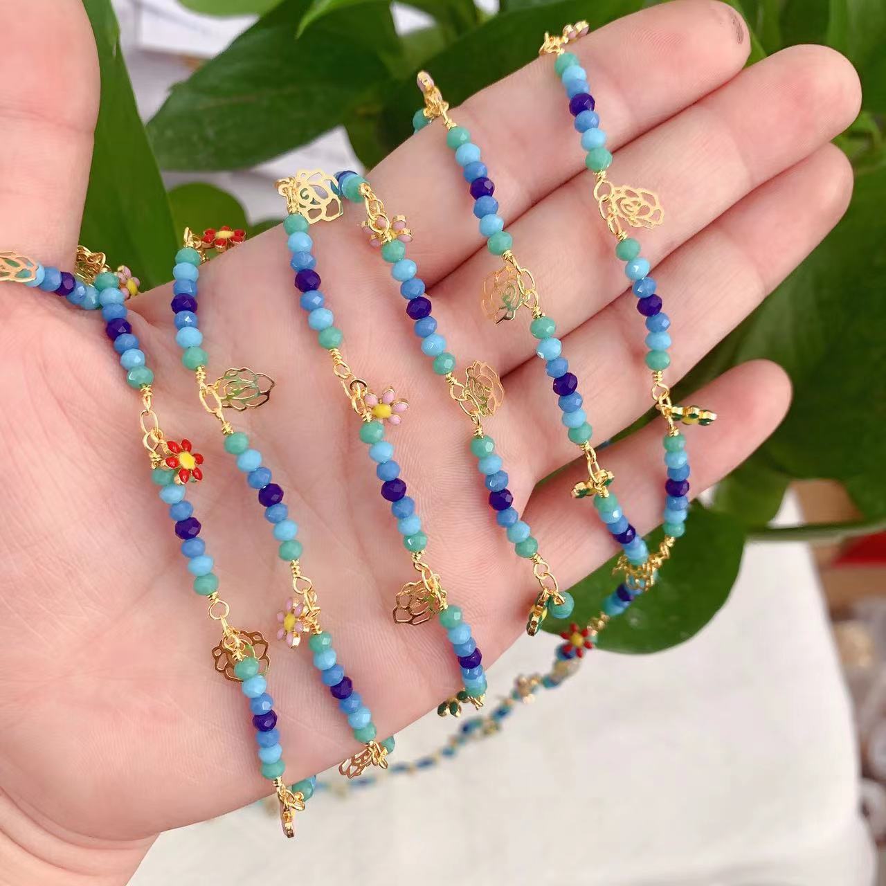 Kristall Perlen Kette, mit Messing, flache Runde, plattiert, handgefertigt & Bar-Kette & facettierte, mehrere Farben vorhanden, 15x9x4mm, verkauft von m