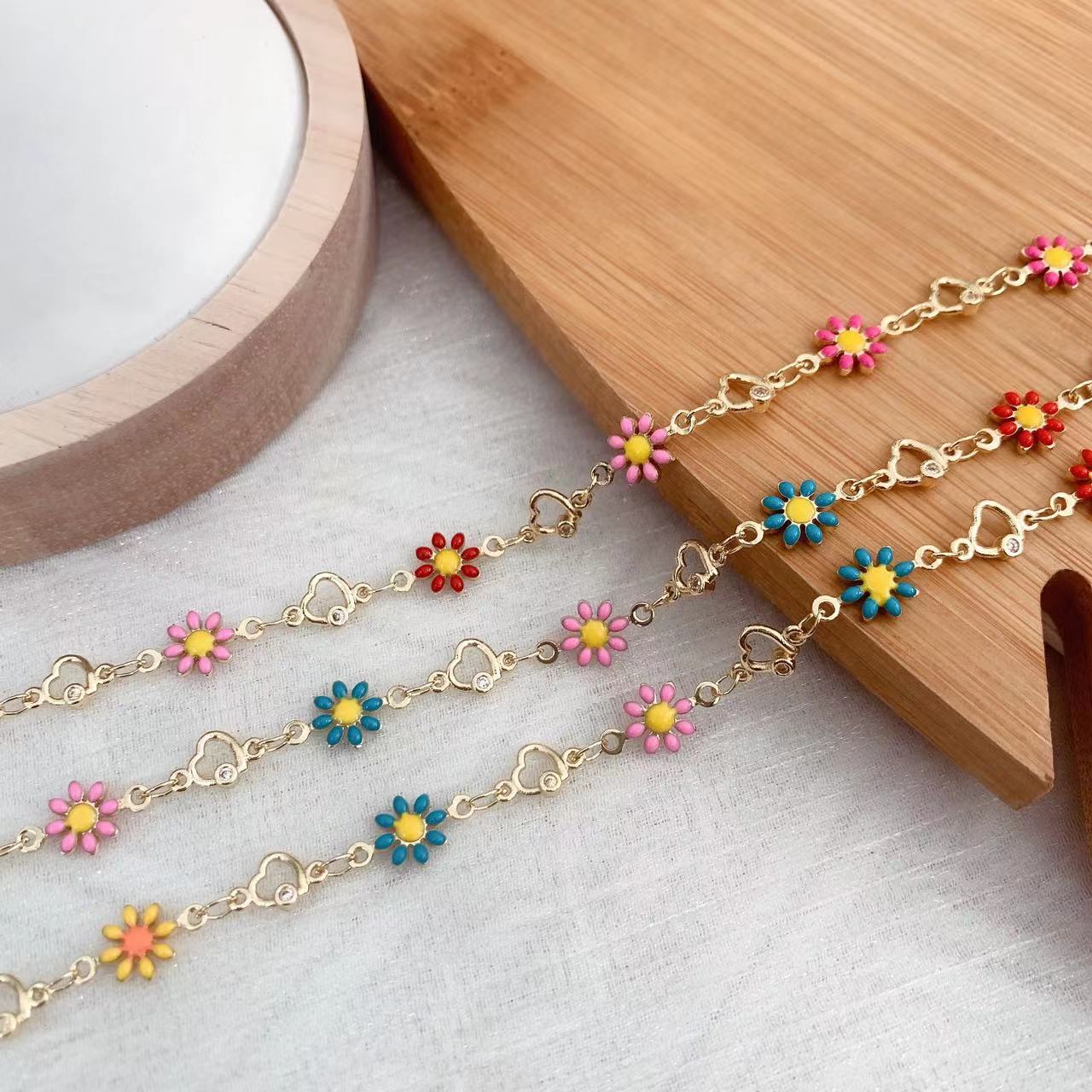 Edelstein Perlen Kette, Messing, goldfarben plattiert, DIY & Emaille, gemischte Farben, 10m/Tasche, verkauft von Tasche
