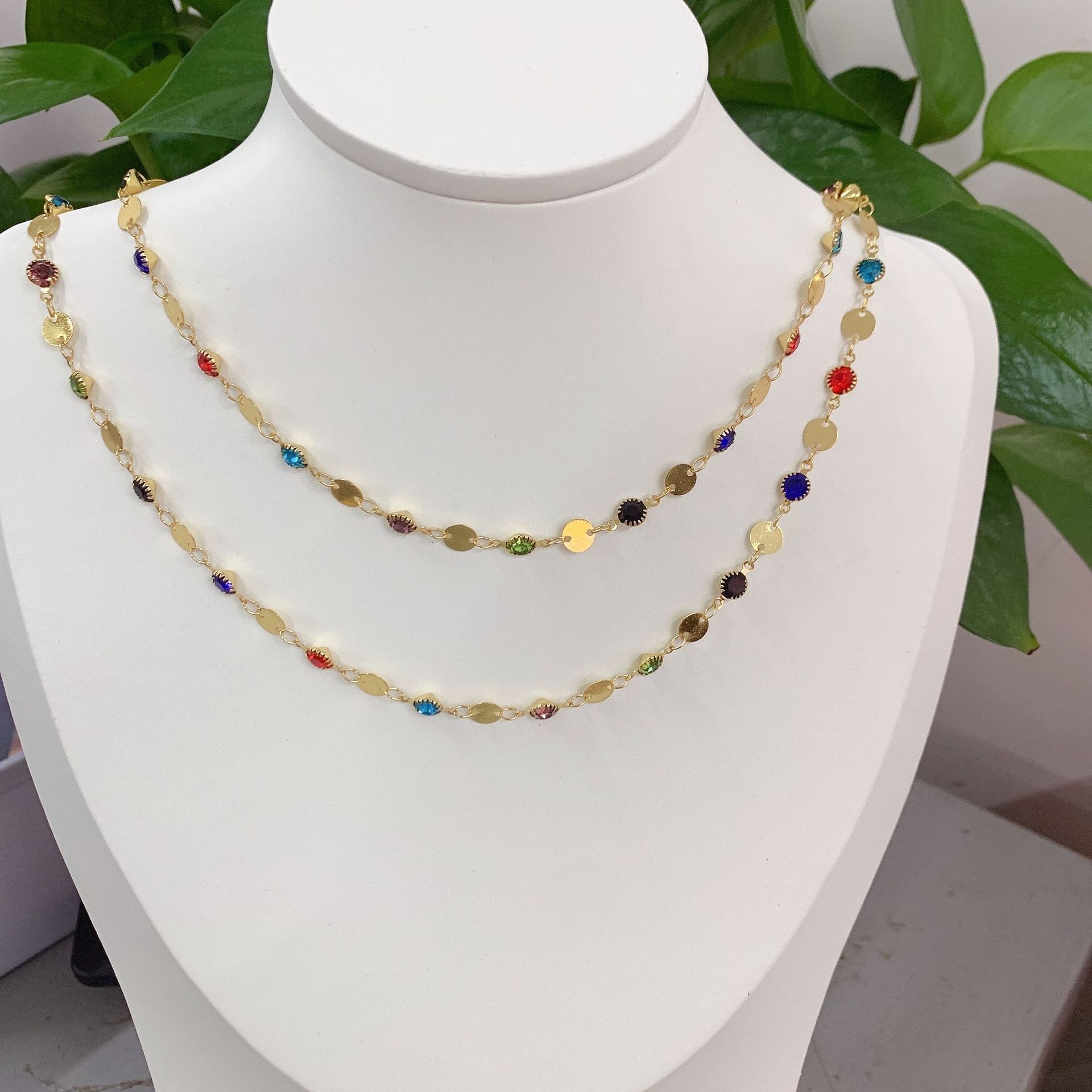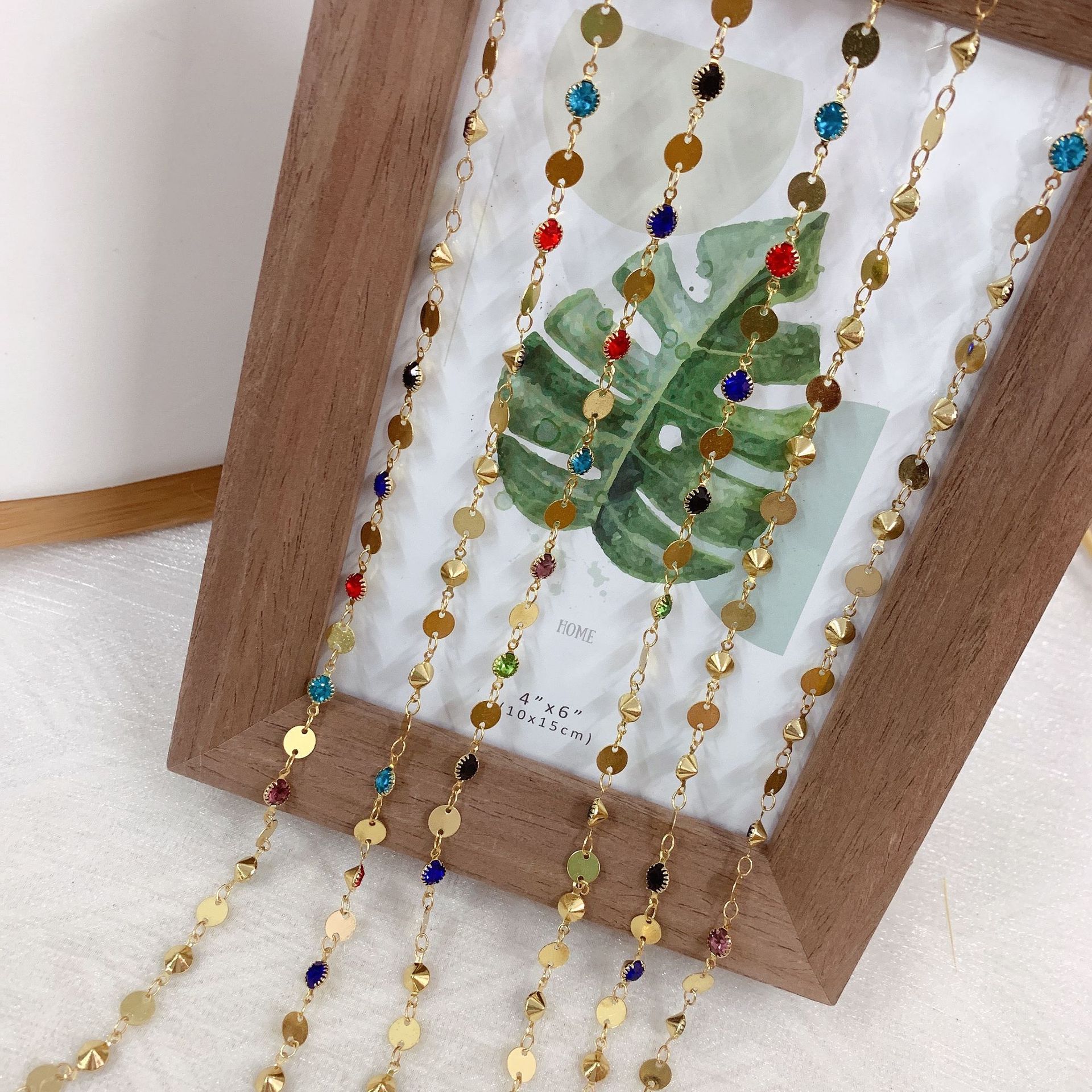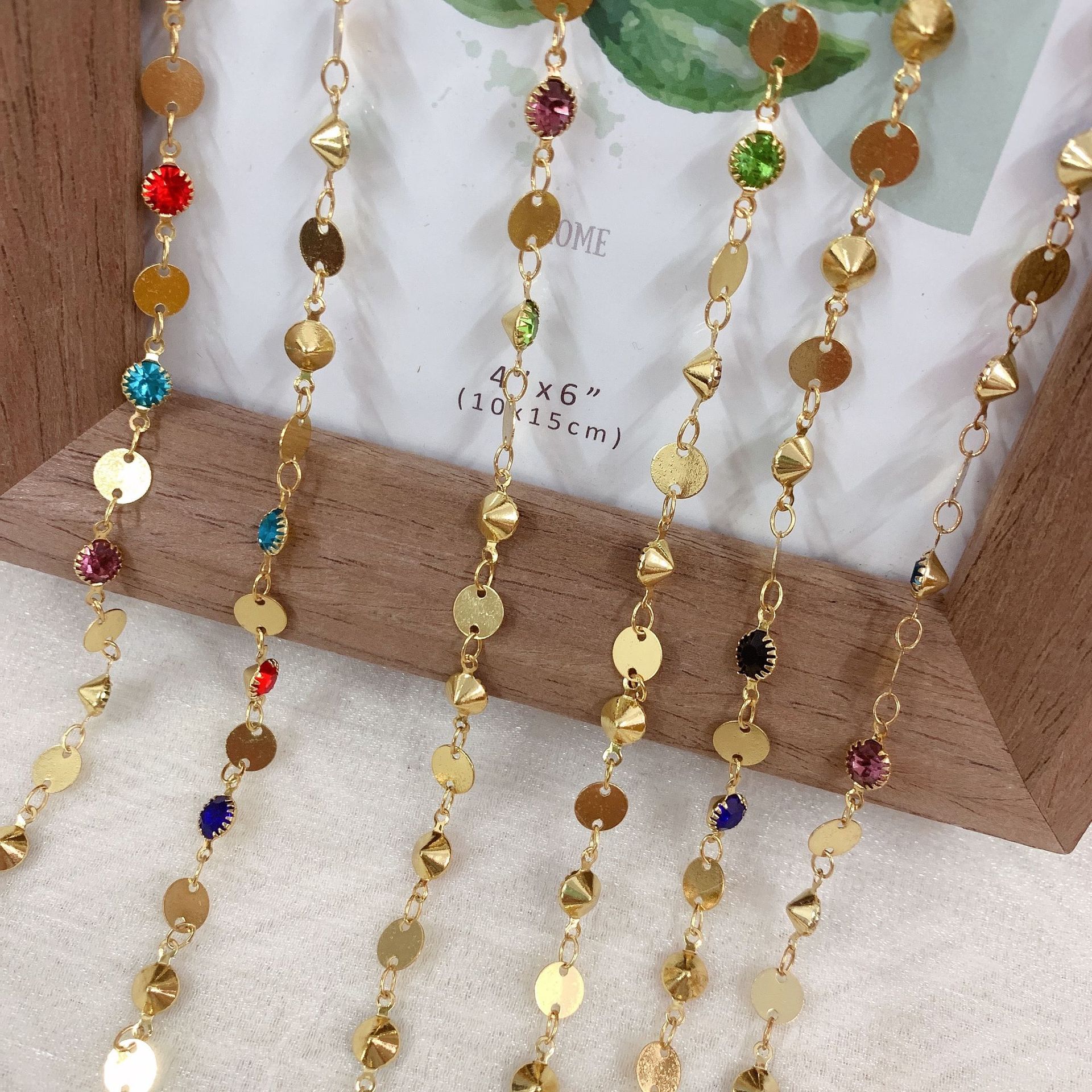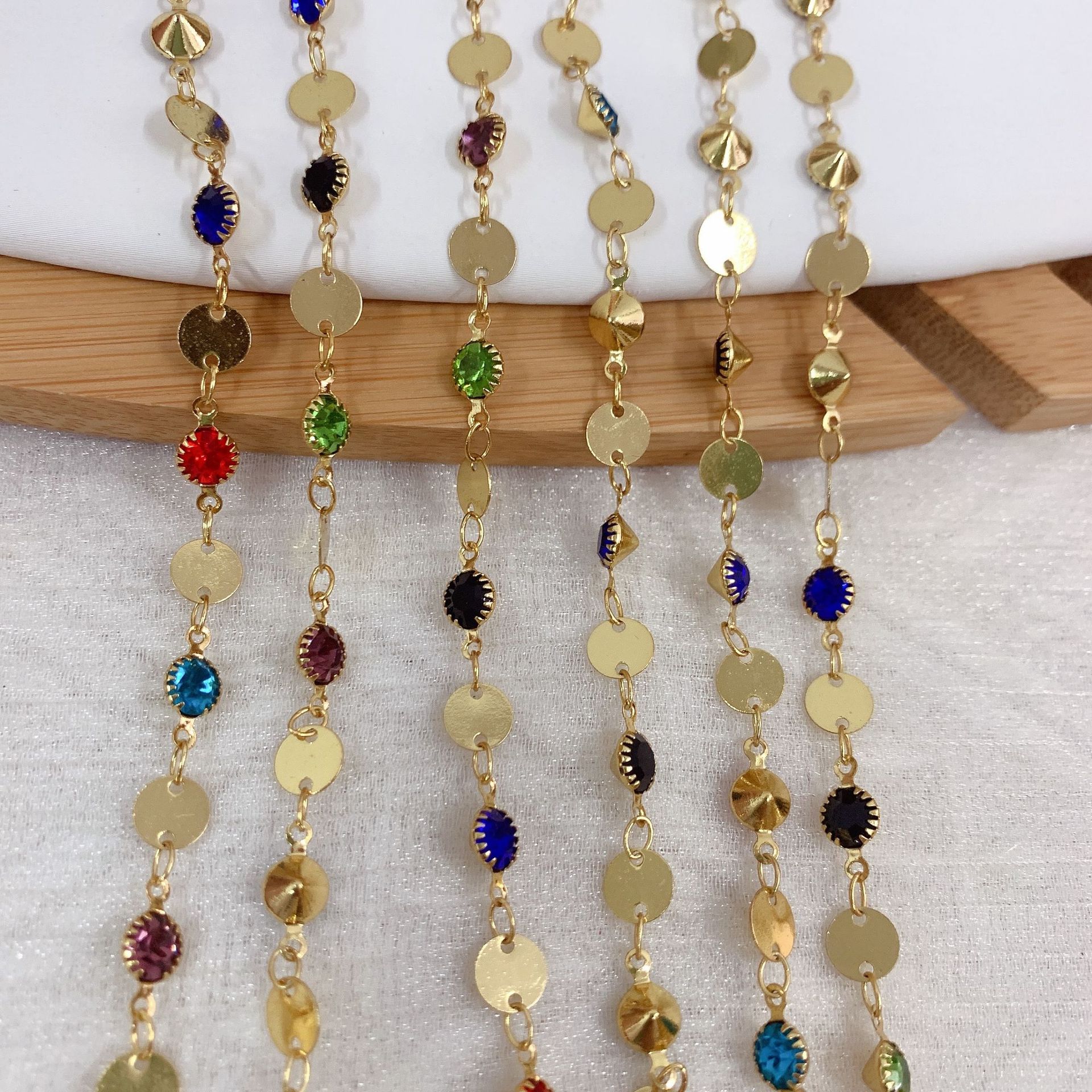 Edelstein Perlen Kette, Messing, goldfarben plattiert, DIY & mit Strass, gemischte Farben, 10m/Tasche, verkauft von Tasche