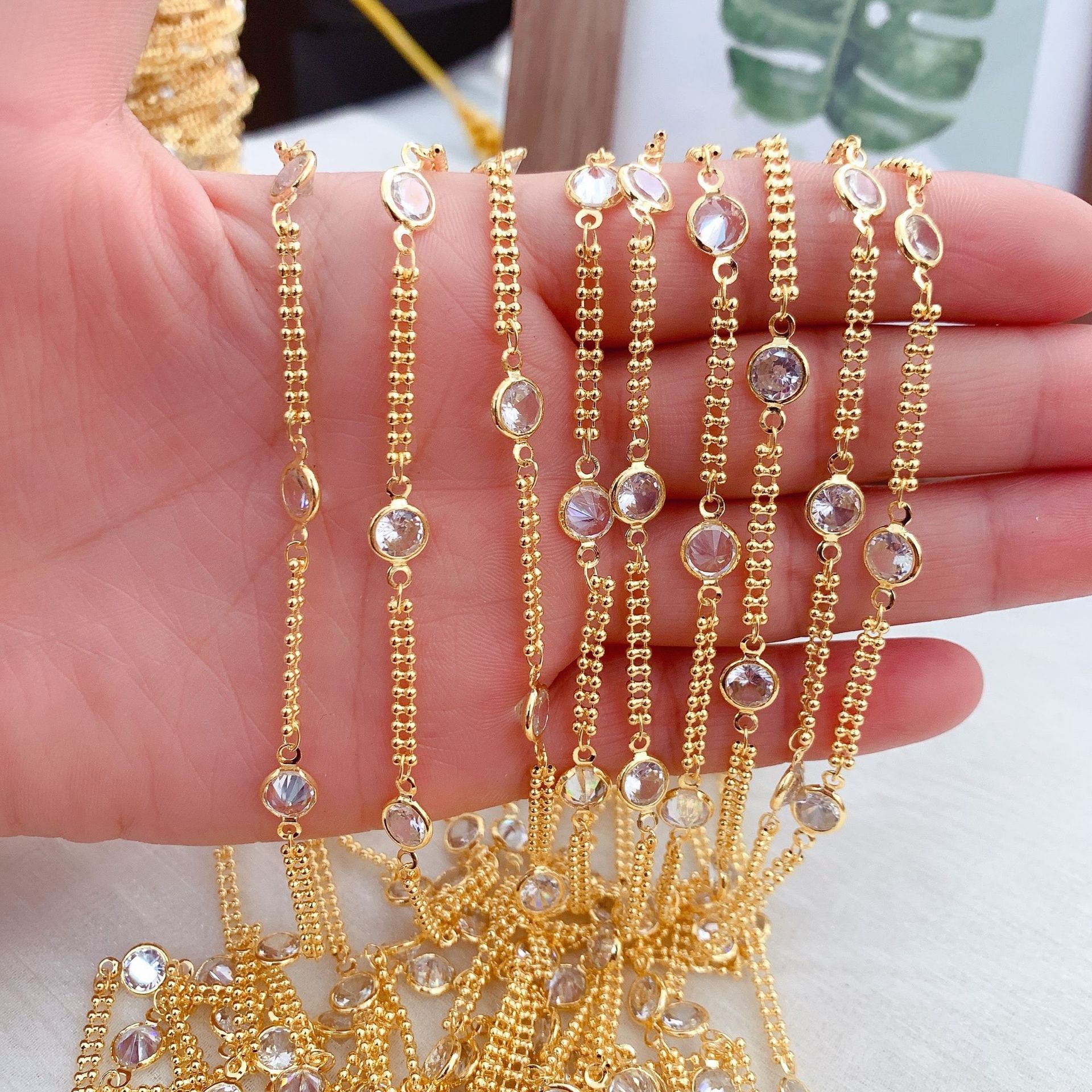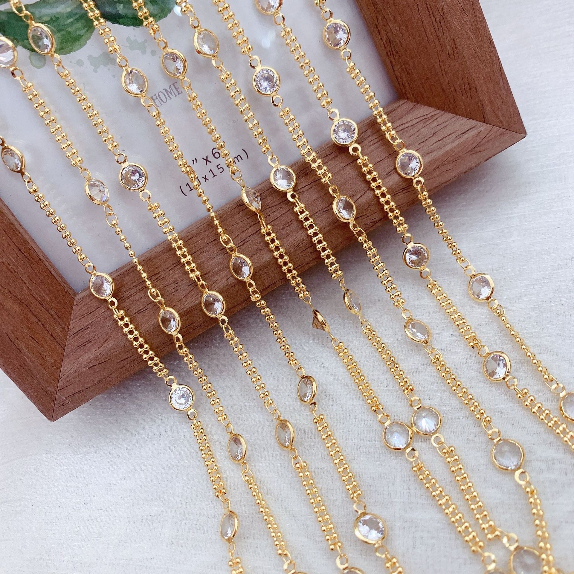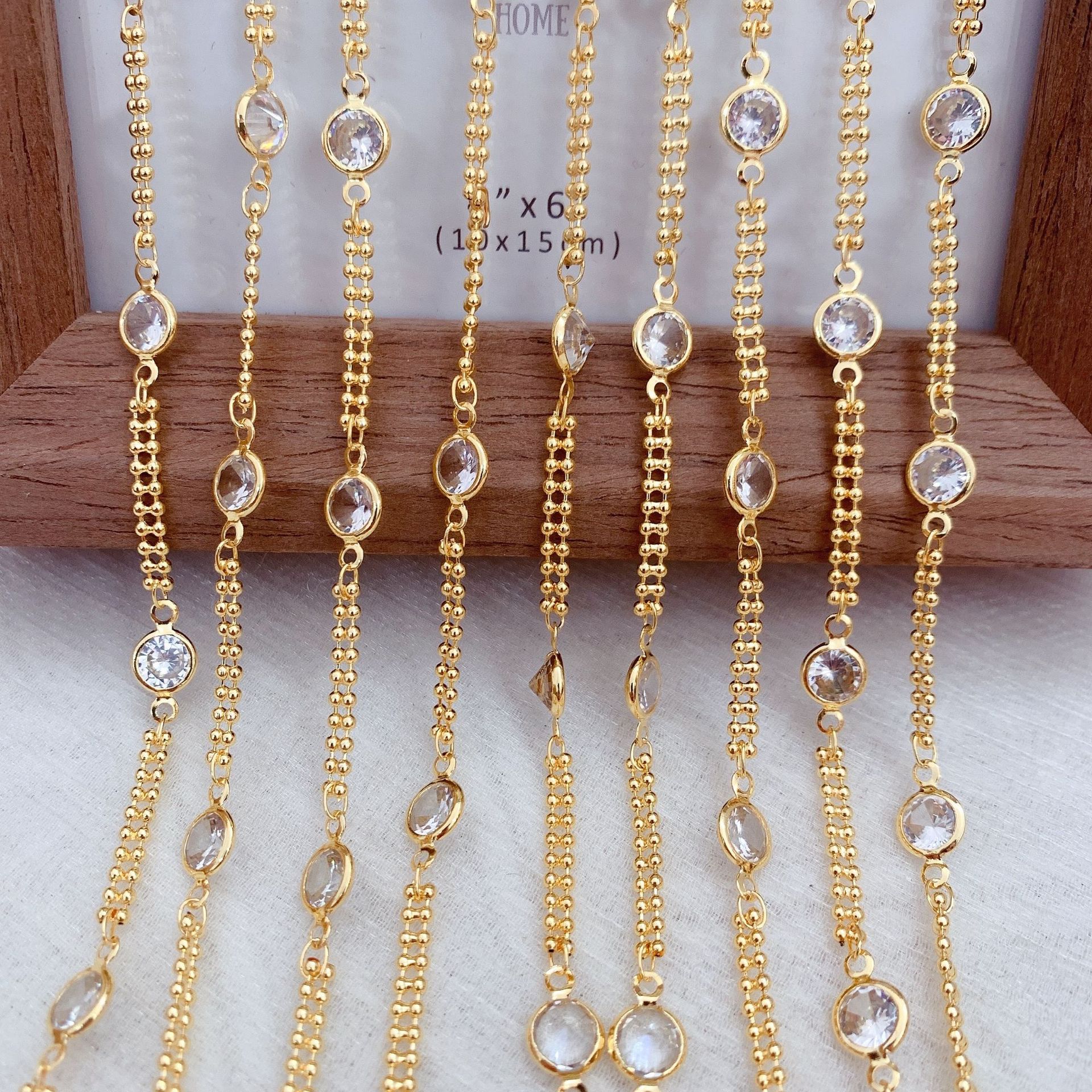Edelstein Perlen Kette, Messing, mit kubischer Zirkonia, goldfarben plattiert, DIY, gemischte Farben, 10m/Tasche, verkauft von Tasche