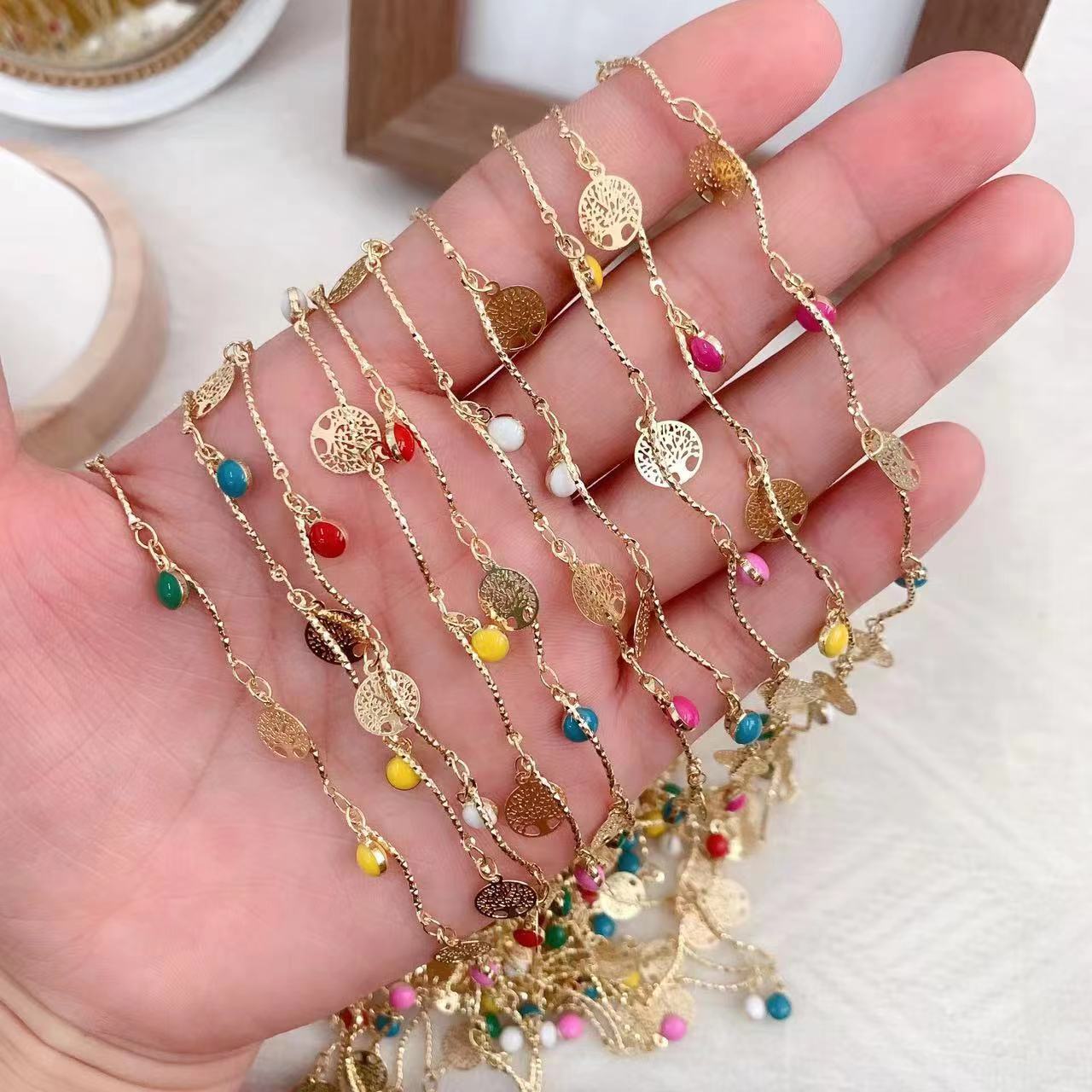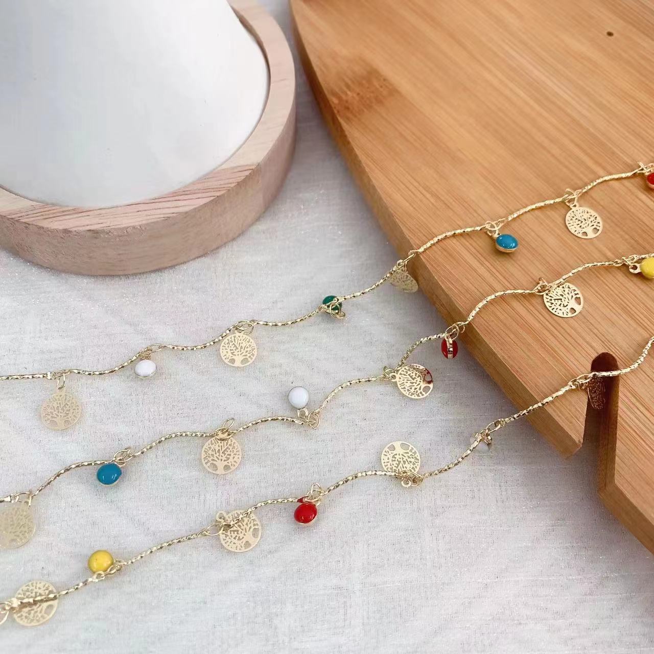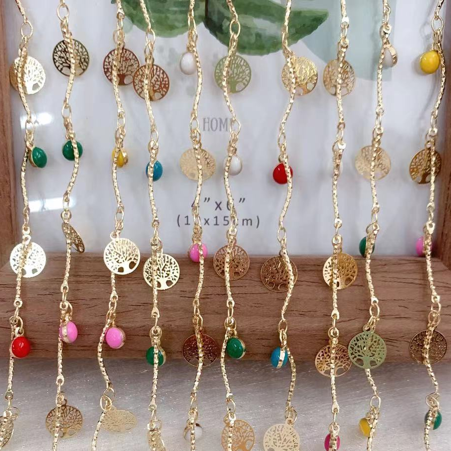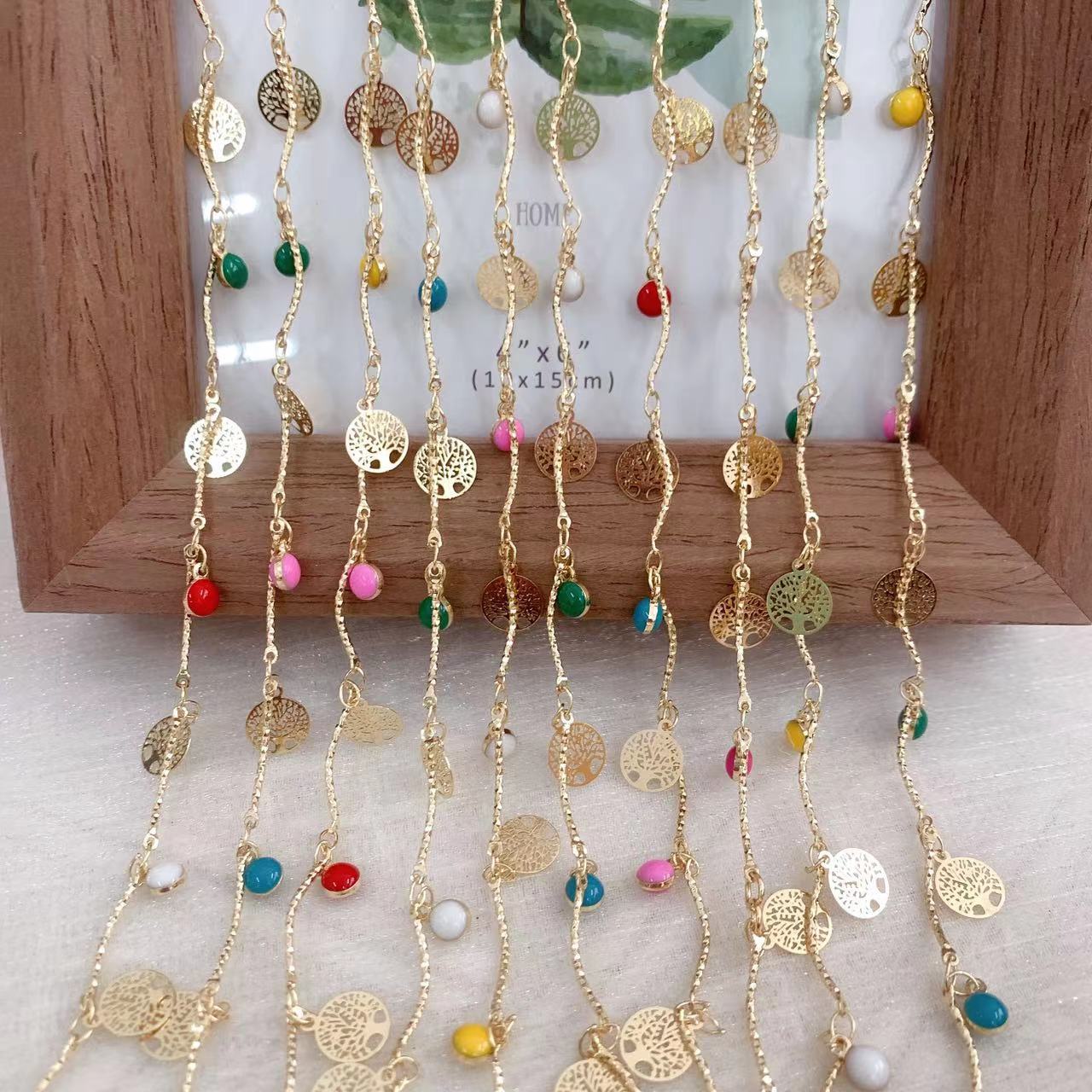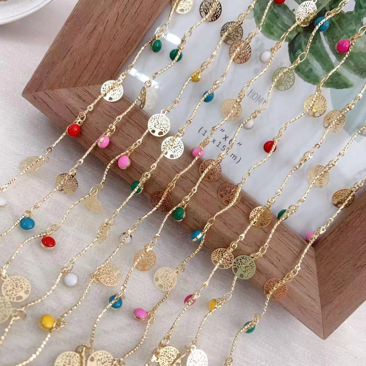 Edelstein Perlen Kette, Messing, goldfarben plattiert, DIY & Emaille, gemischte Farben, 10m/Tasche, verkauft von Tasche
