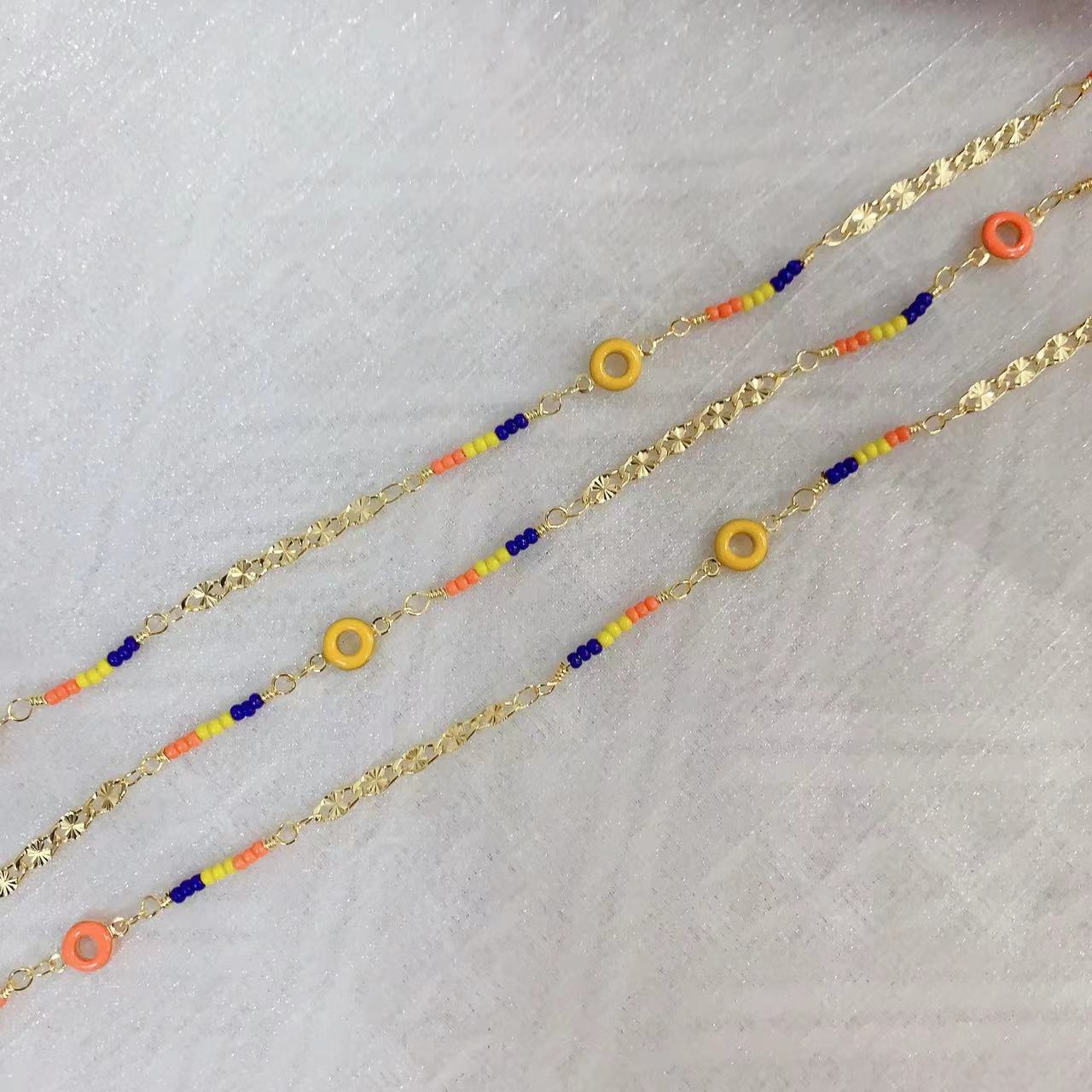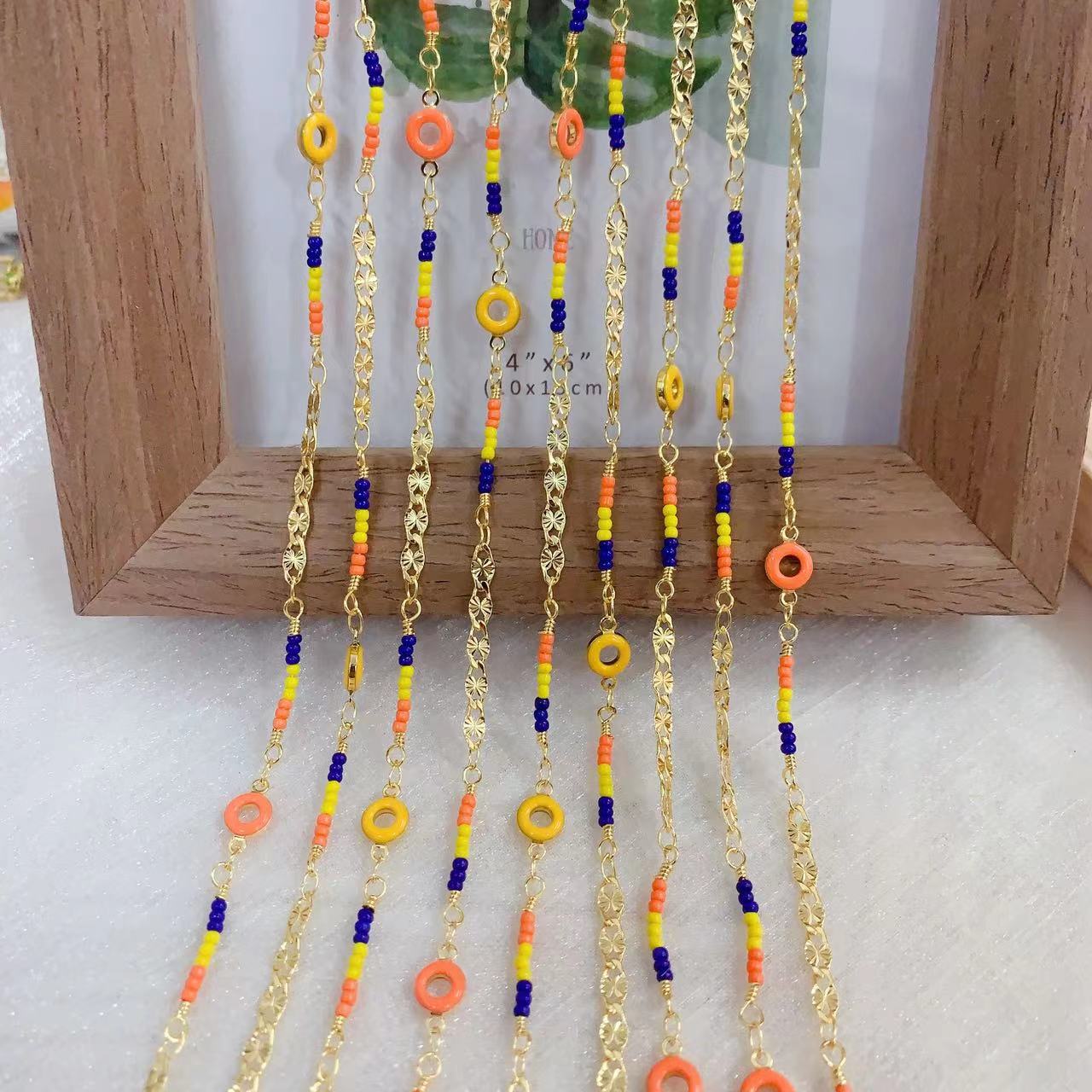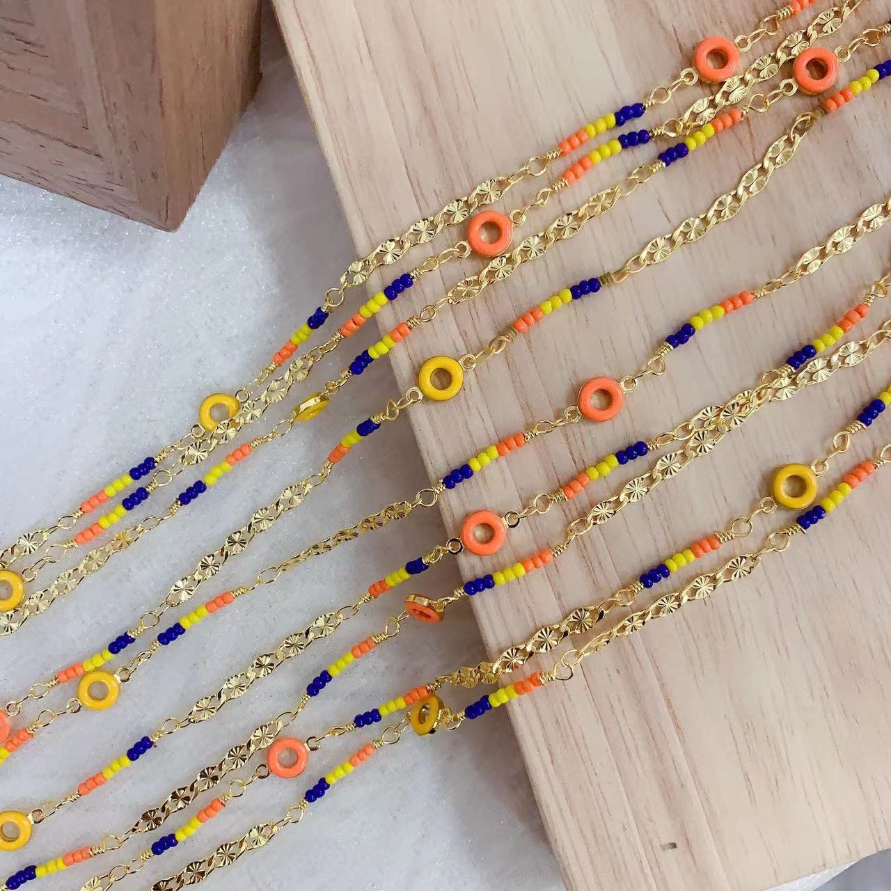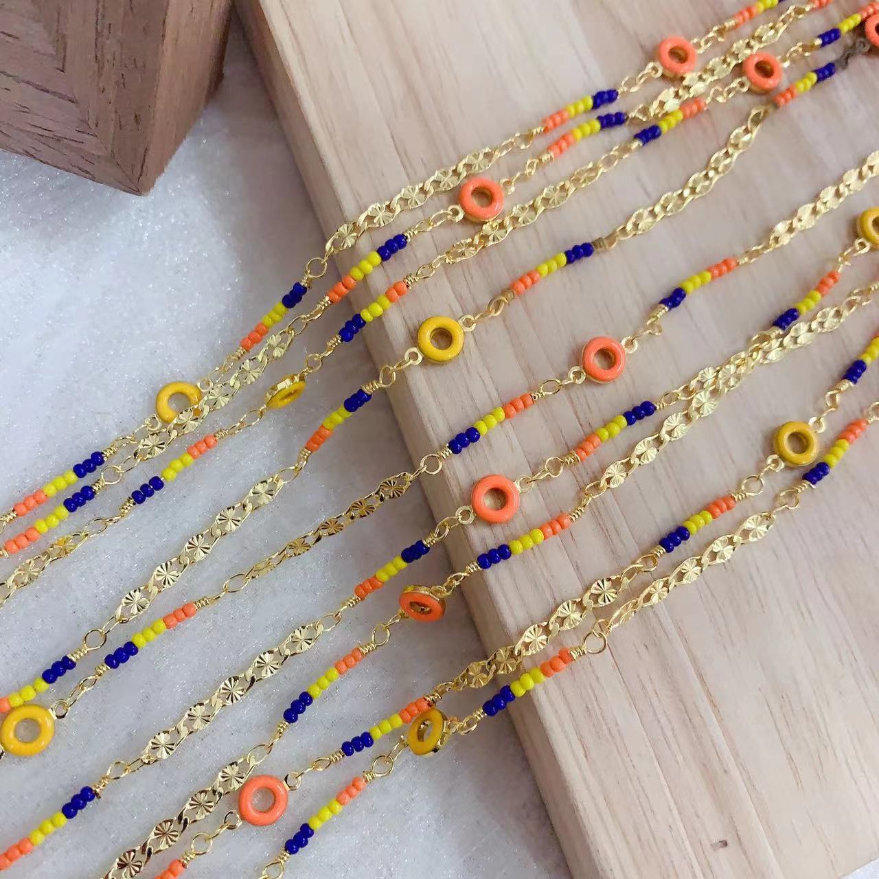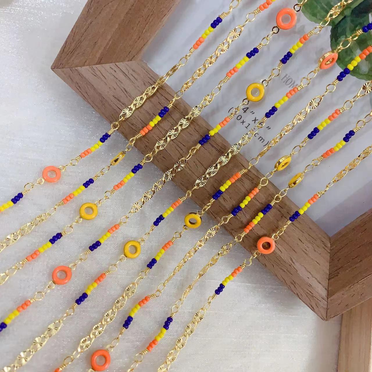Edelstein Perlen Kette, Messing, mit Seedbead, goldfarben plattiert, DIY & Emaille, gemischte Farben, 10m/Tasche, verkauft von Tasche