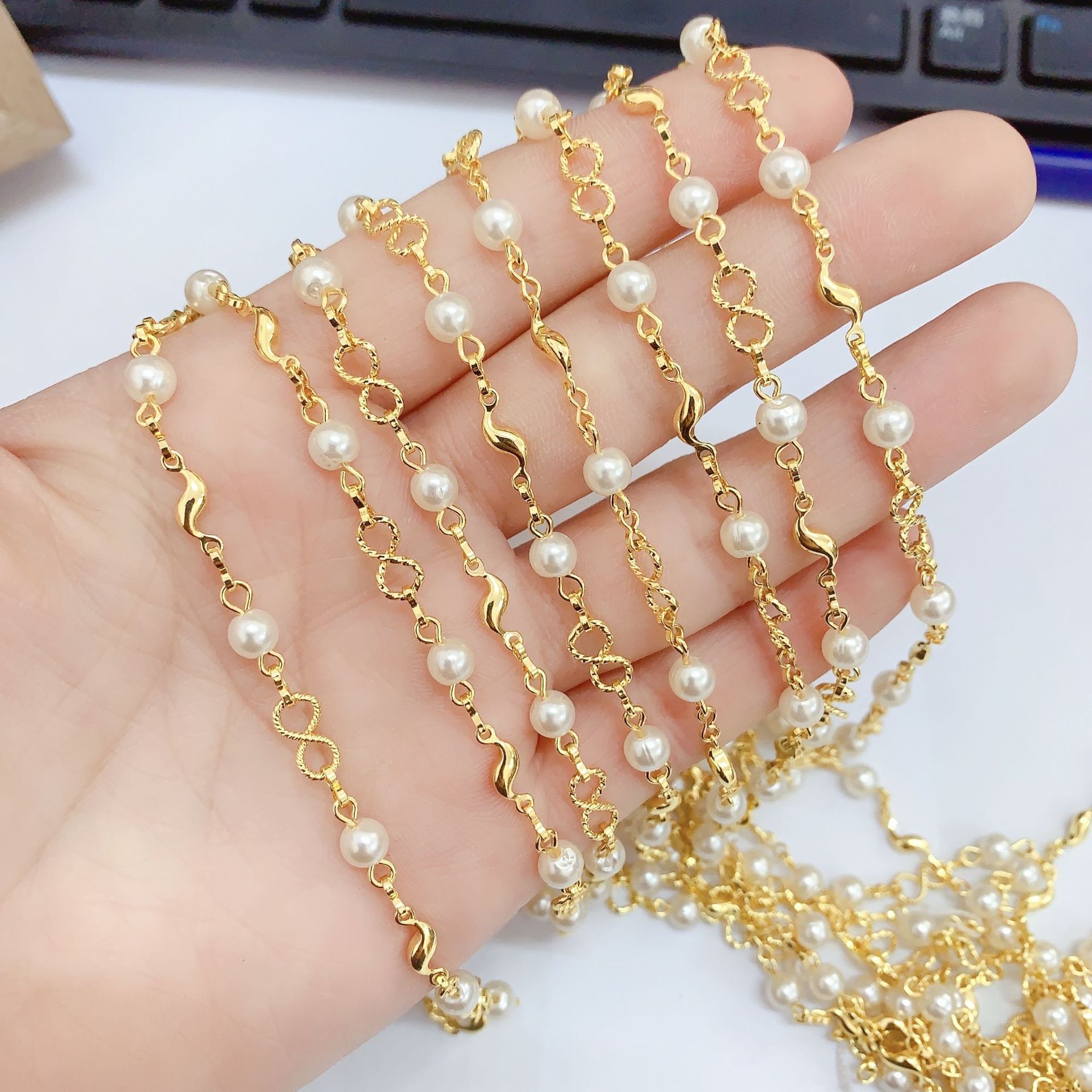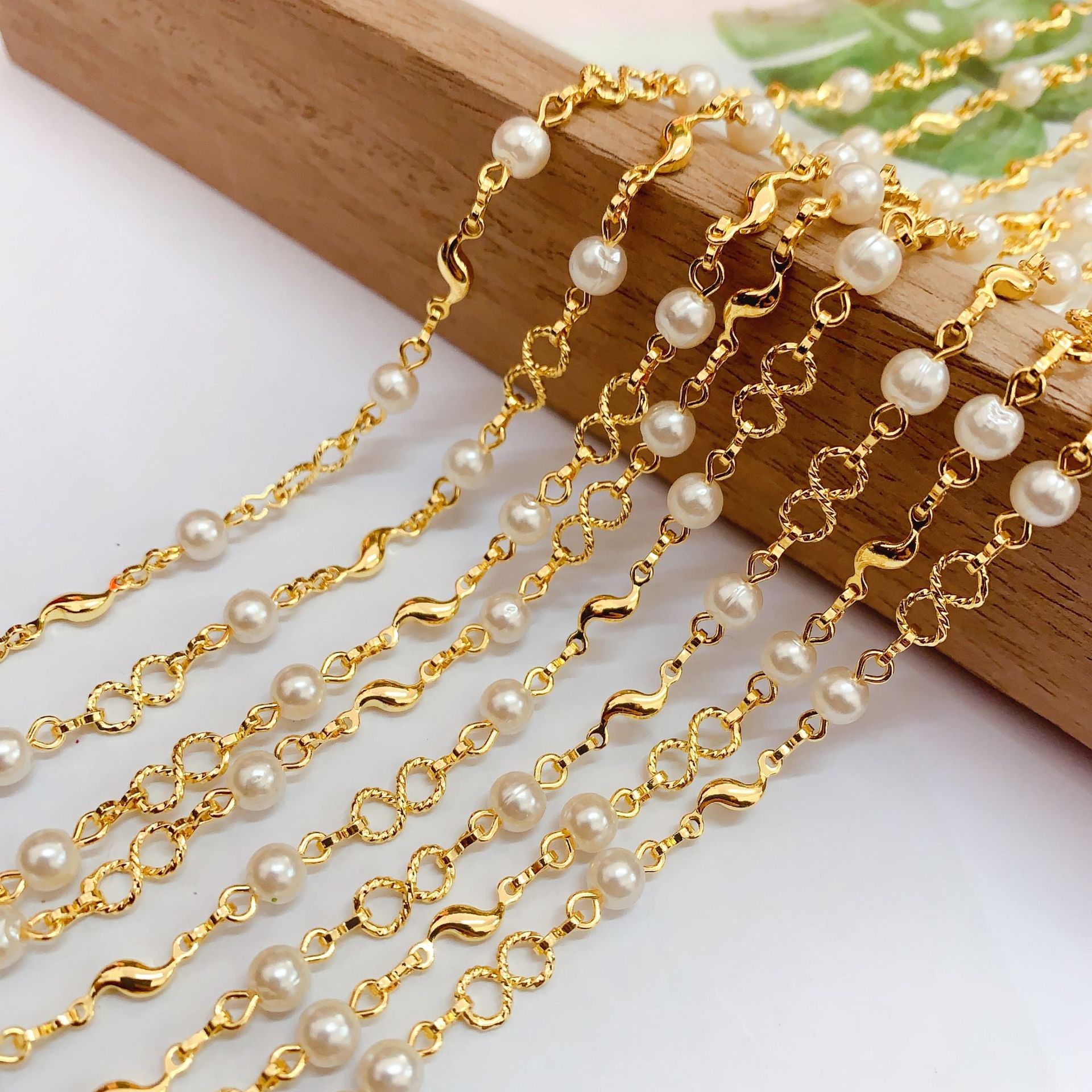 Edelstein Perlen Kette, Messing, goldfarben plattiert, DIY, gemischte Farben, 10m/Tasche, verkauft von Tasche