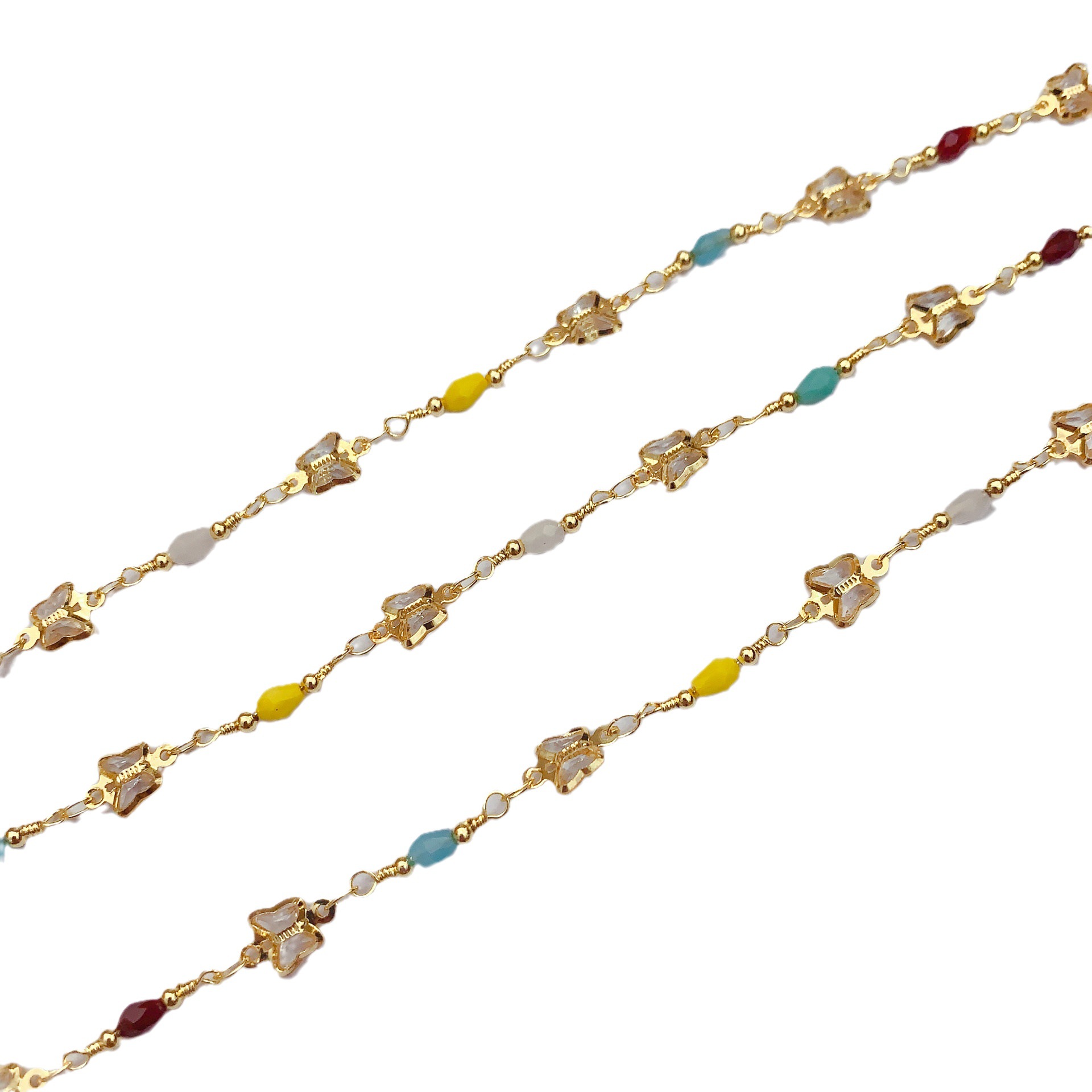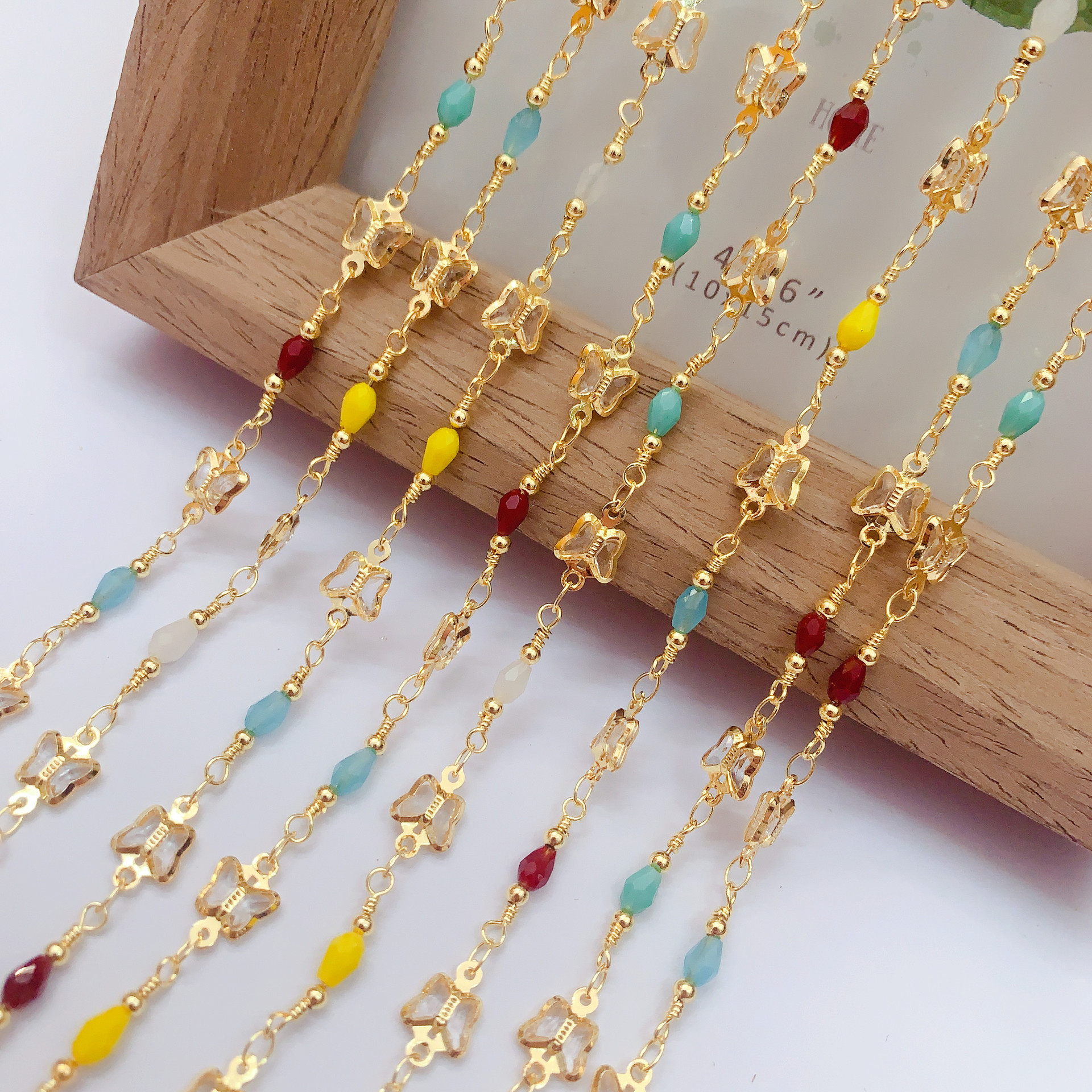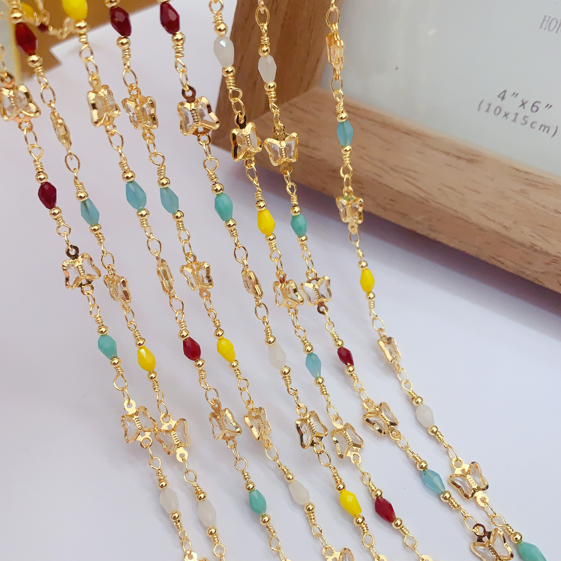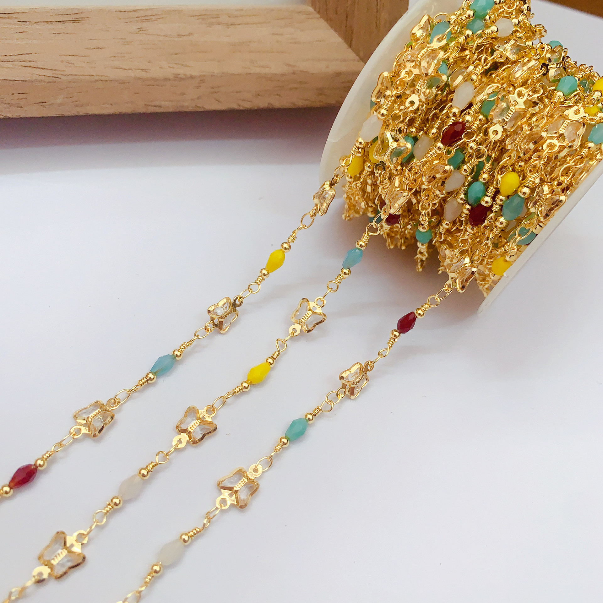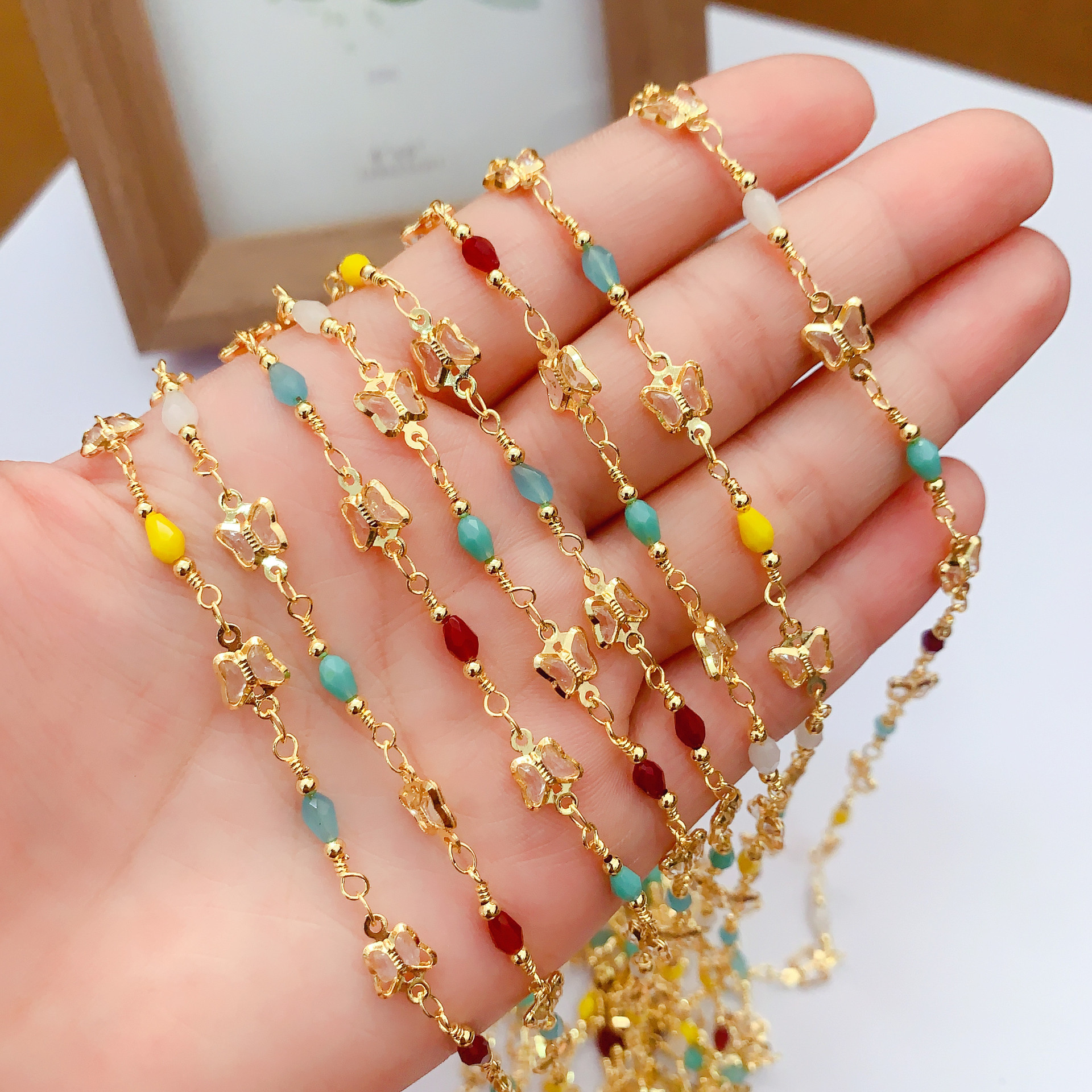 Edelstein Perlen Kette, Messing, mit Kunststoff, goldfarben plattiert, DIY, gemischte Farben, 10m/Tasche, verkauft von Tasche