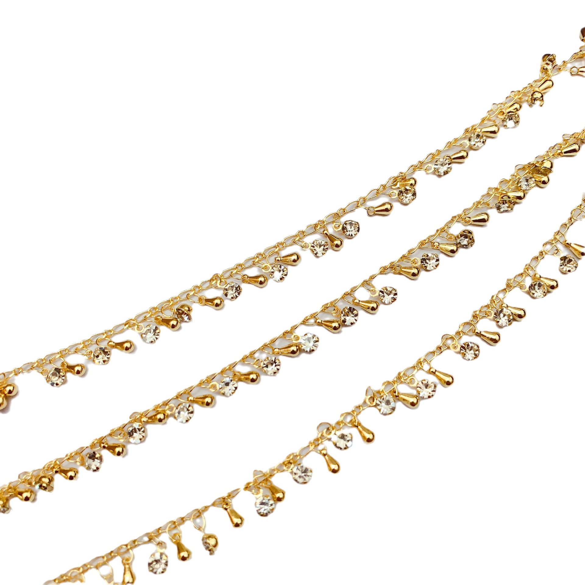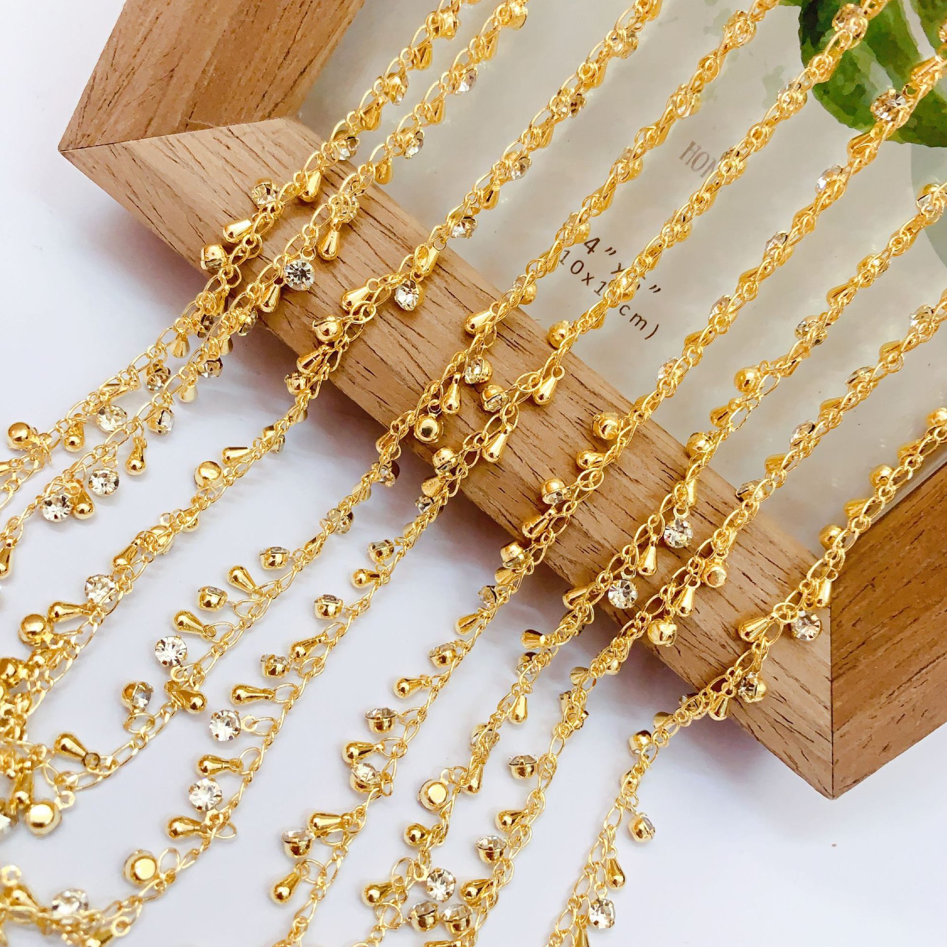 Edelstein Perlen Kette, Messing, goldfarben plattiert, DIY & mit Strass, gemischte Farben, 10m/Tasche, verkauft von Tasche