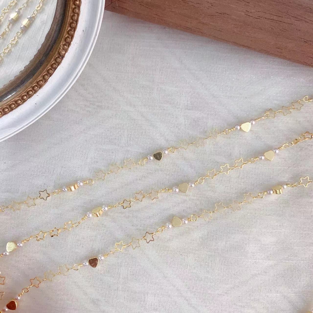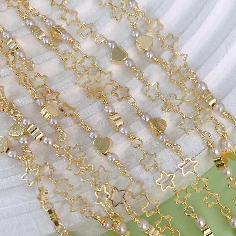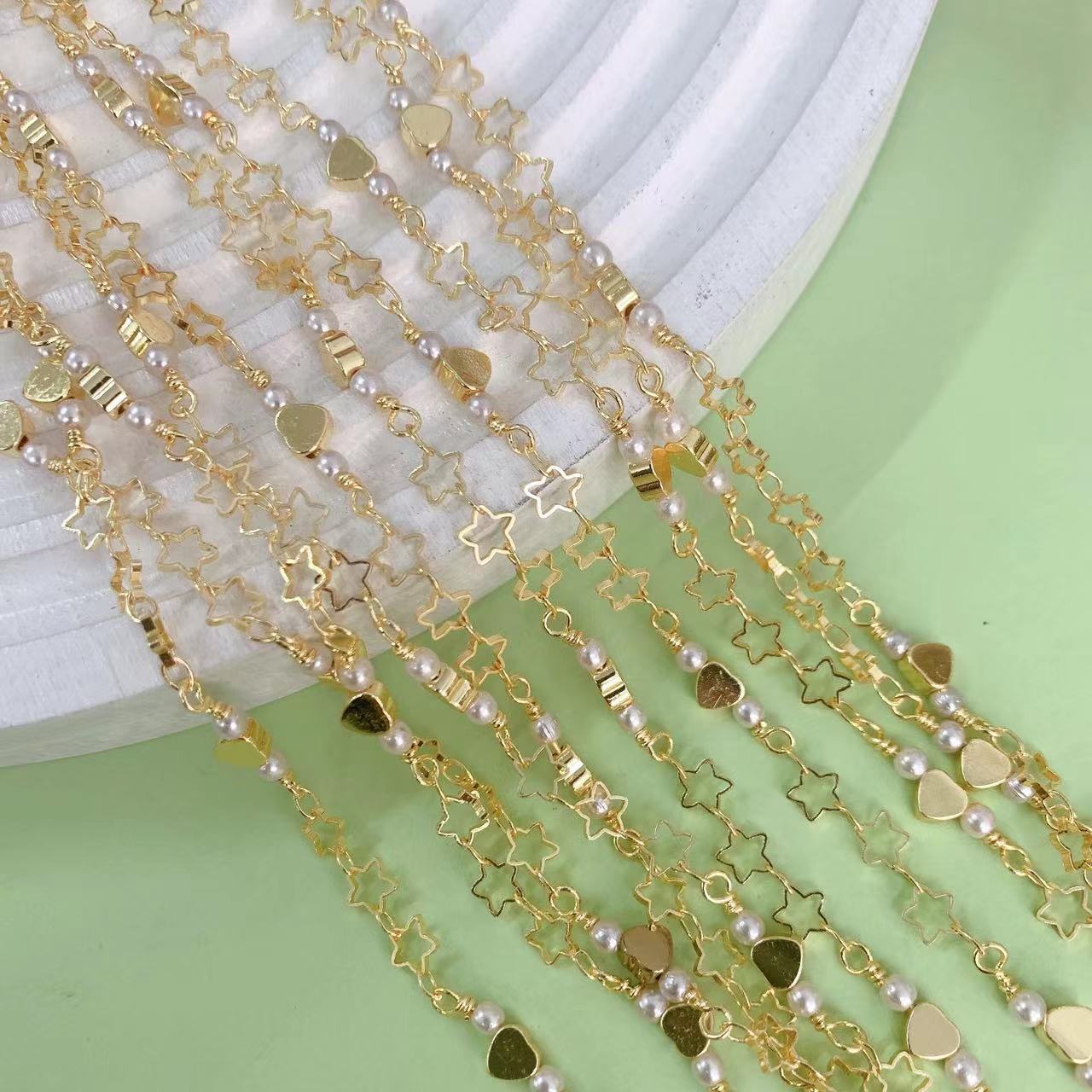 Edelstein Perlen Kette, Messing, mit Kunststoff Perlen, Vakuum-Ionen-Beschichtung, DIY, gemischte Farben, 10m/Tasche, verkauft von Tasche