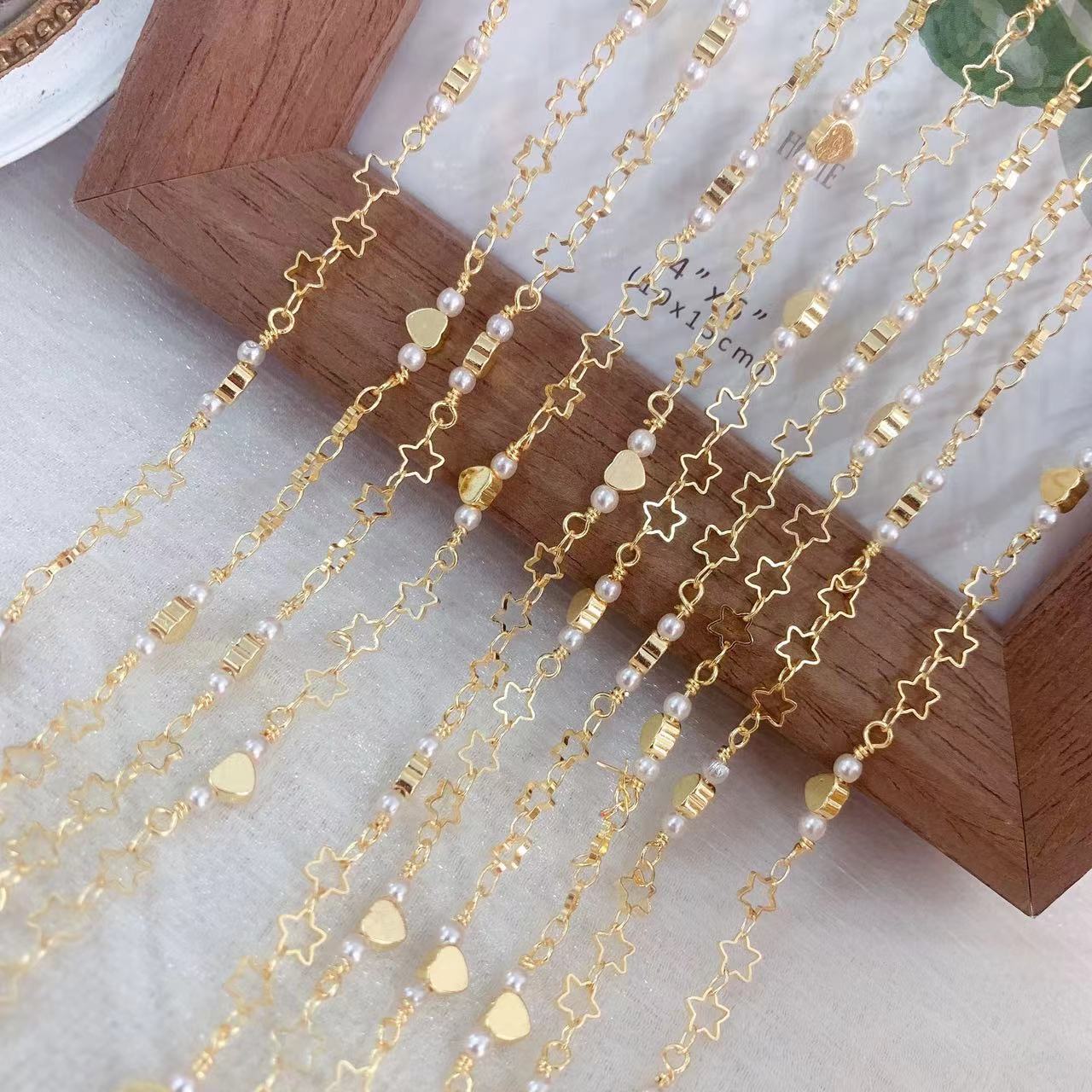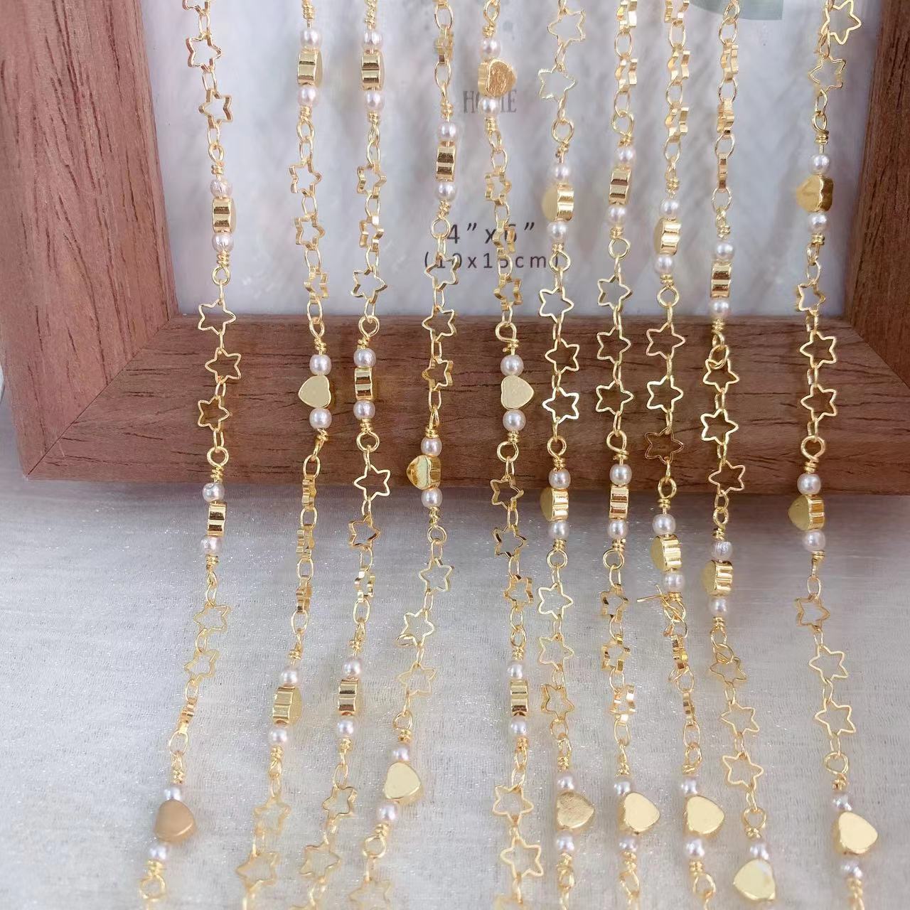 Kristall Perlen Kette, mit Messing, plattiert, handgefertigt & Bar-Kette & facettierte, mehrere Farben vorhanden, 6x5x14mm, 100m/Menge, verkauft von Menge
