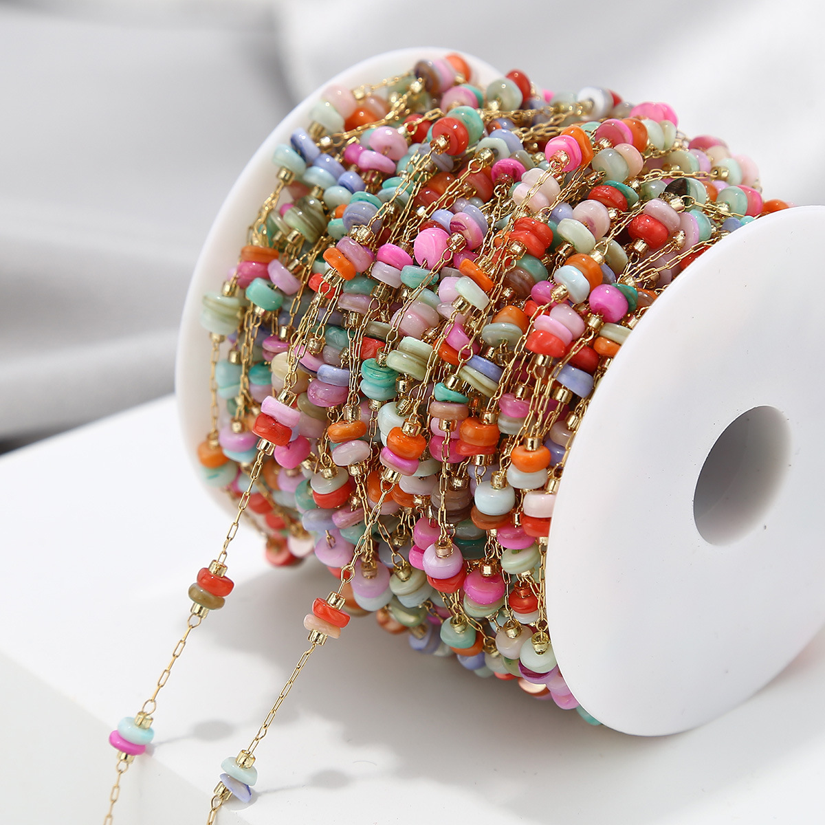 Edelstein Perlen Kette, 304 Edelstahl, mit Edelstein, goldfarben plattiert, DIY, farbenfroh, 1m/Tasche, verkauft von Tasche