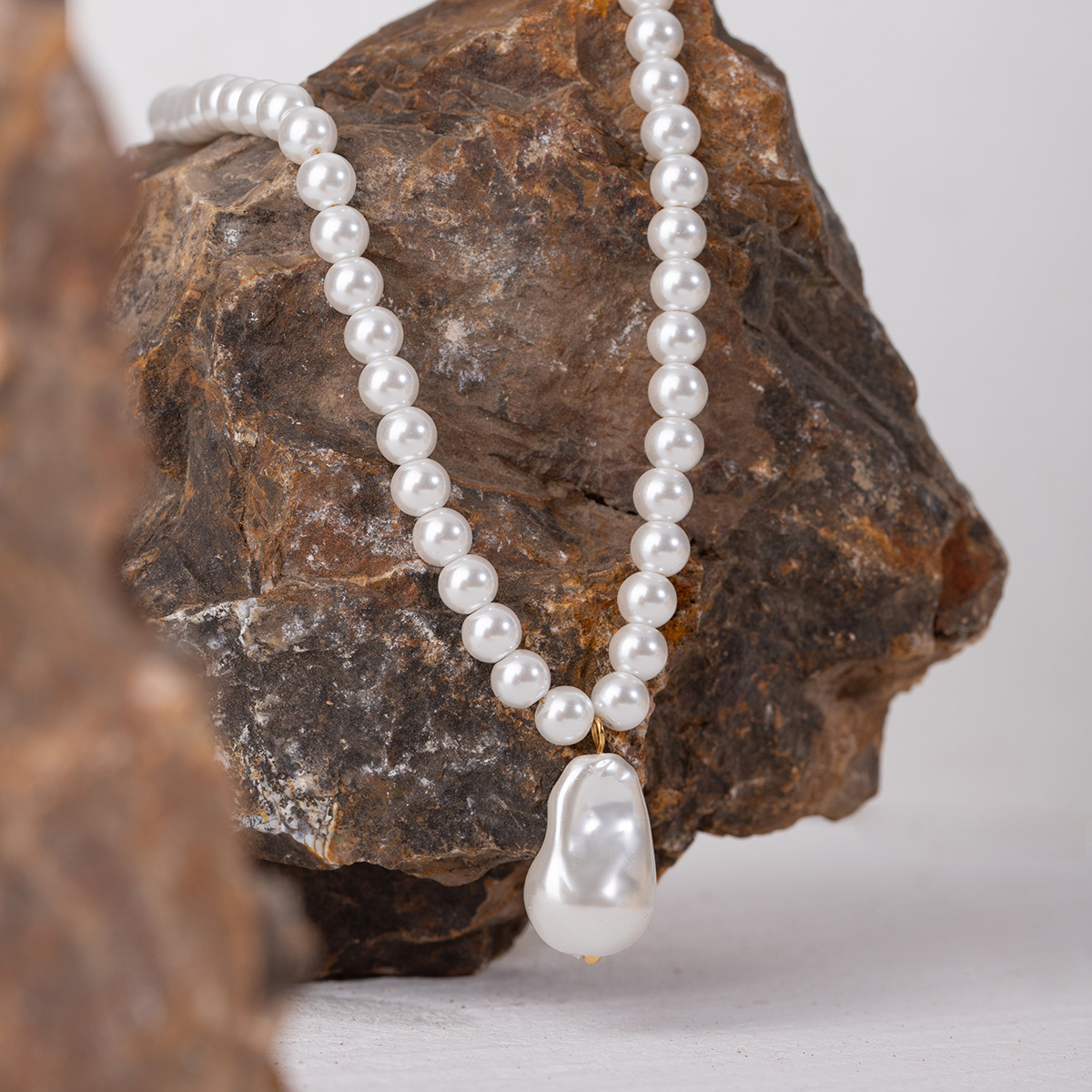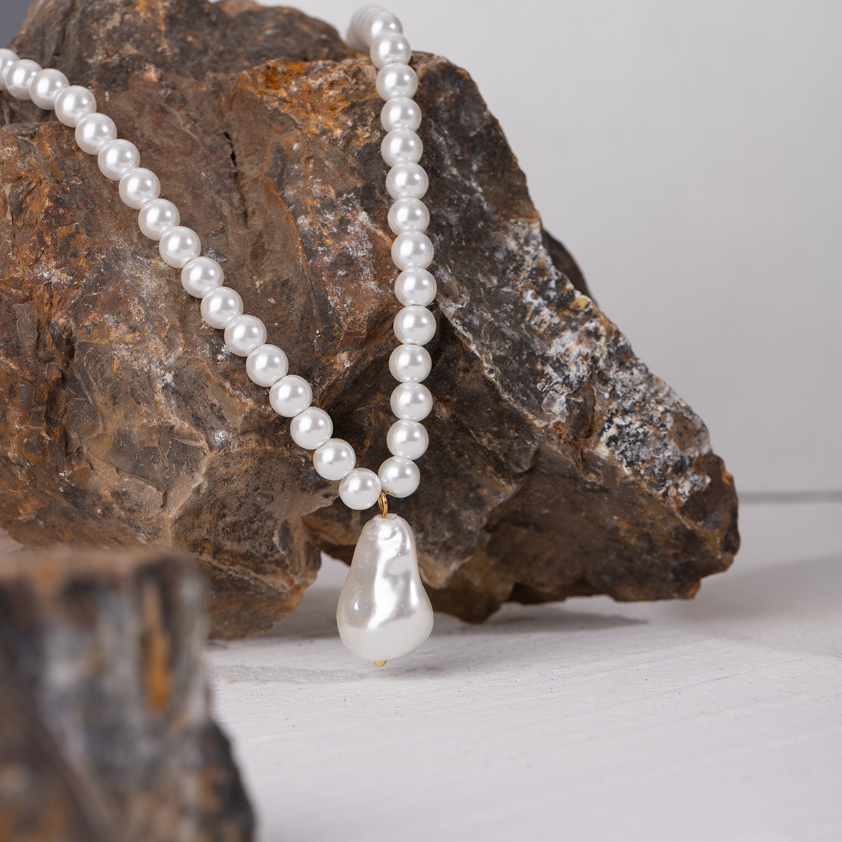 Acryl Halskette, mit Strass Ton befestigte Perelen & Kristall & Zinklegierung, auch als Wrap Armband getragen, weiß, 14x11x8.5mm, Länge:ca. 20.5 ZollInch, verkauft von Strang