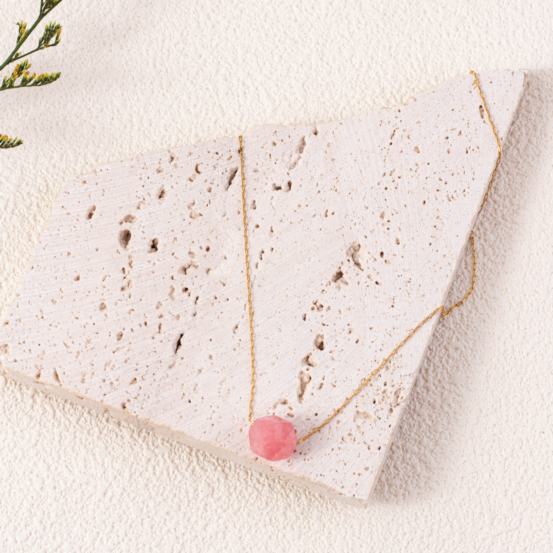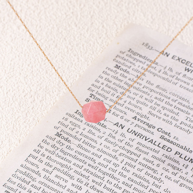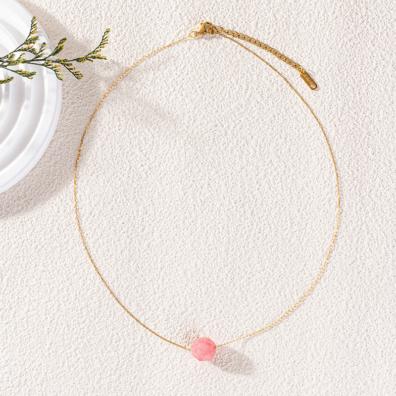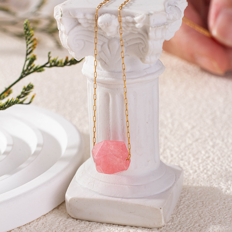 Quarz Halskette, Messing, mit Rosenquarz, goldfarben plattiert, für Frau, Rosa, Länge:46 cm, verkauft von PC