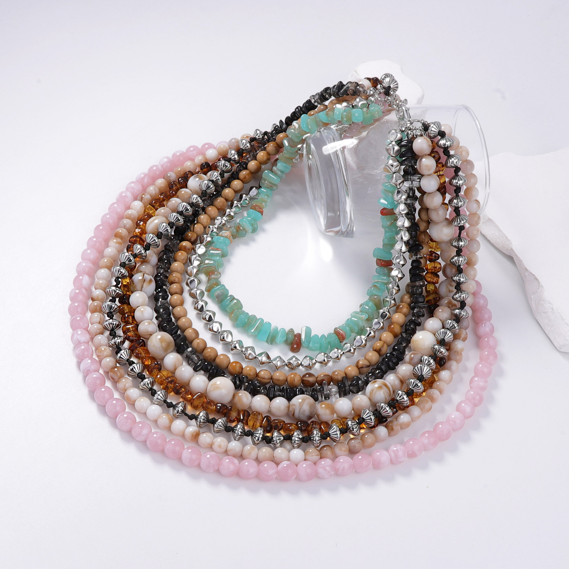 Mode-Multi-Layer-Halskette, Zinklegierung, mit Edelstein, goldfarben plattiert, Modeschmuck, gemischte Farben, verkauft von PC