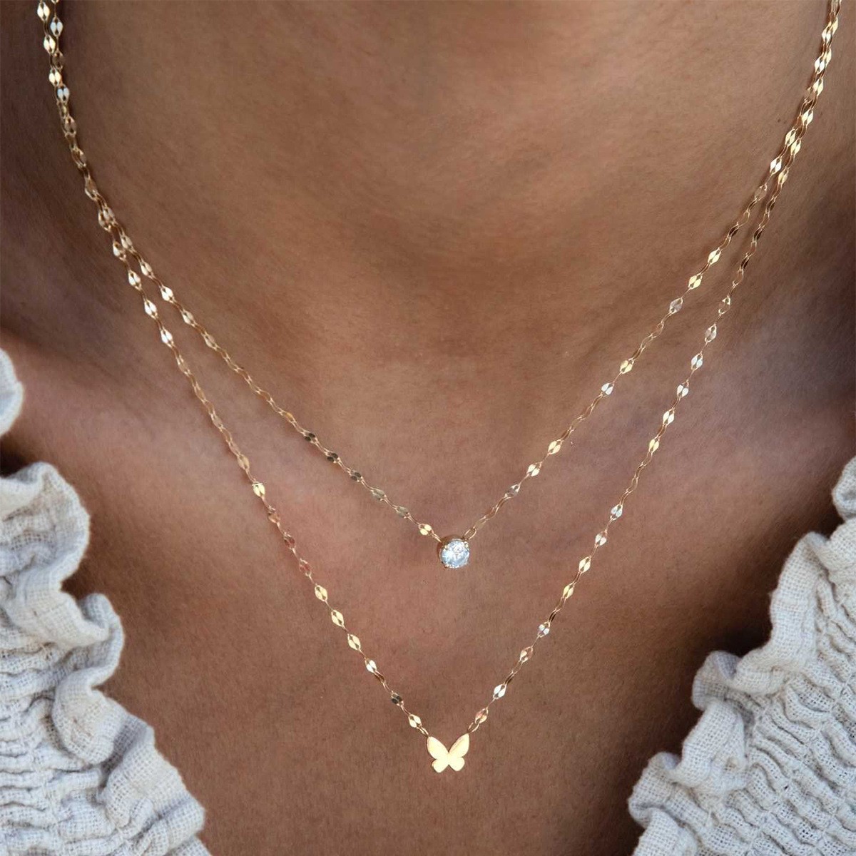 Mode-Multi-Layer-Halskette, Edelstahl, Schmetterling, Rósegold-Farbe plattiert, Oval-Kette & 2 strängig, 8x5mm, Länge:ca. 17 ZollInch, verkauft von Strang