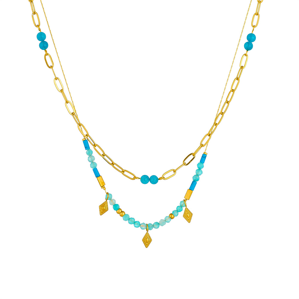 Mode-Multi-Layer-Halskette, 304 Edelstahl, mit Kunststoff, goldfarben plattiert, Doppelschicht & Modeschmuck & für Frau, verkauft von PC