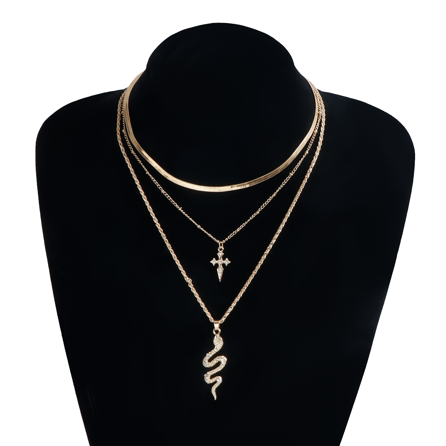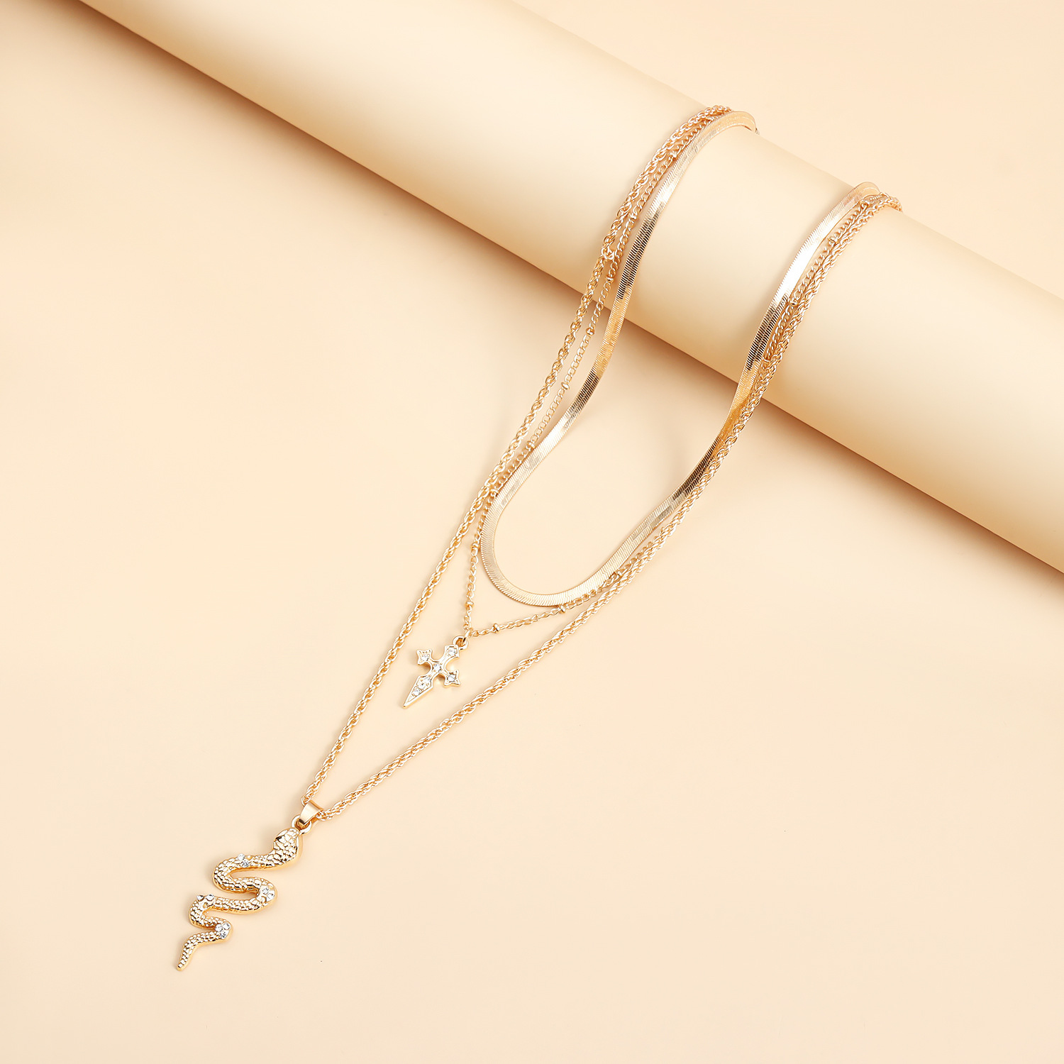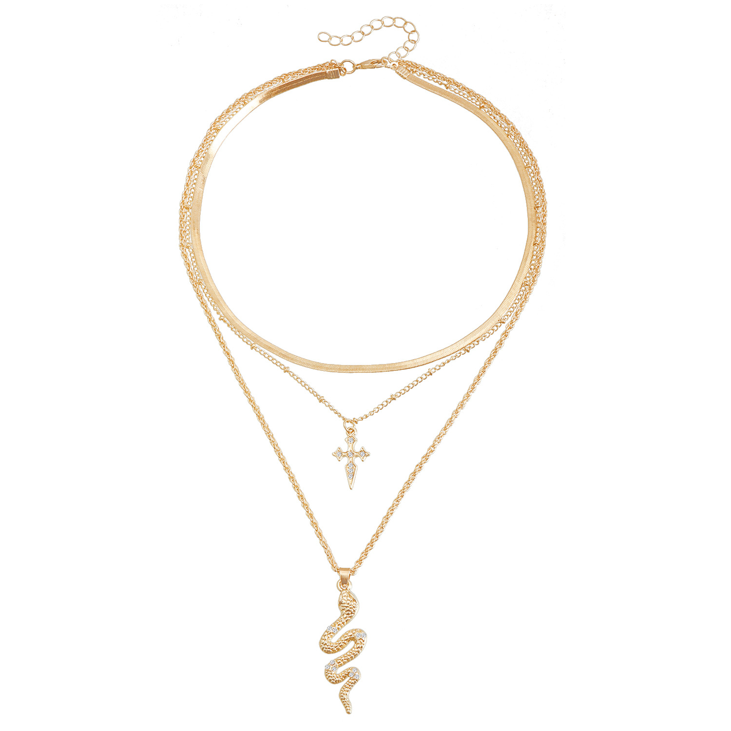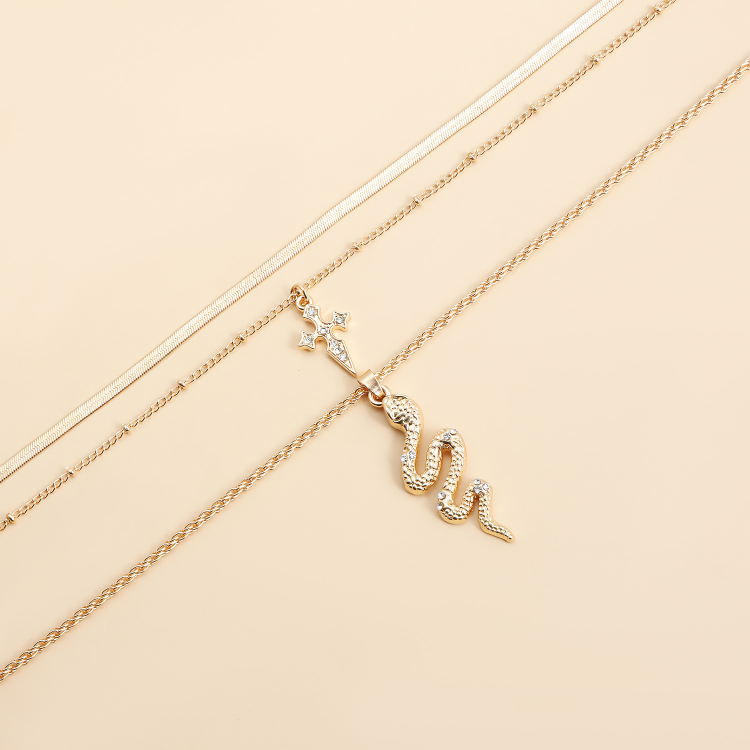 Mode-Multi-Layer-Halskette, Zinklegierung, plattiert, drei Schichten & für Frau & mit Strass, goldfarben, verkauft von PC
