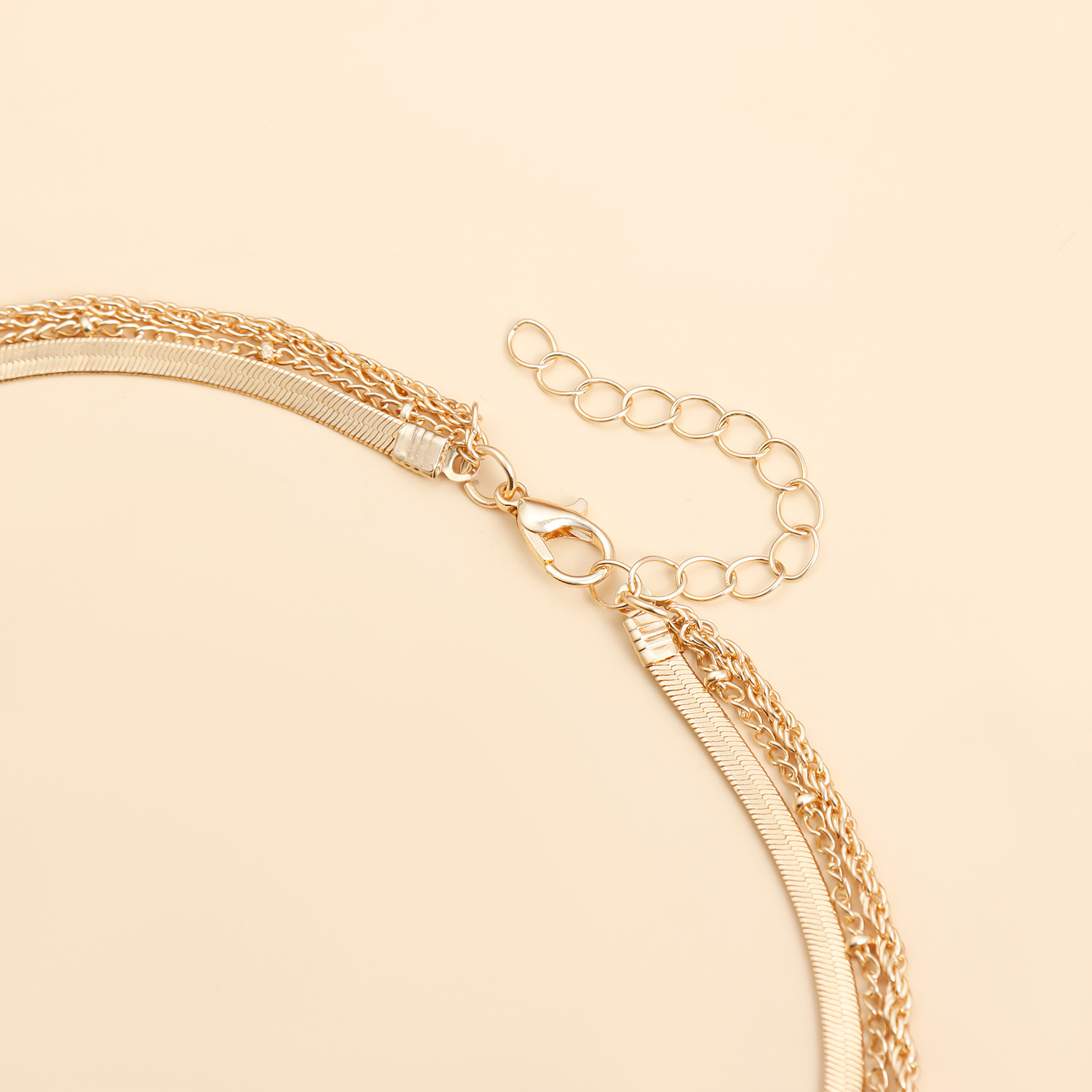 Mode-Multi-Layer-Halskette, Zinklegierung, mit Eisenkette, mit Verlängerungskettchen von 5cm, 18 K vergoldet, Oval-Kette & 4-Strang & gehämmert, frei von Blei & Kadmium, 39cm, Länge:ca. 15.5 ZollInch, verkauft von Strang