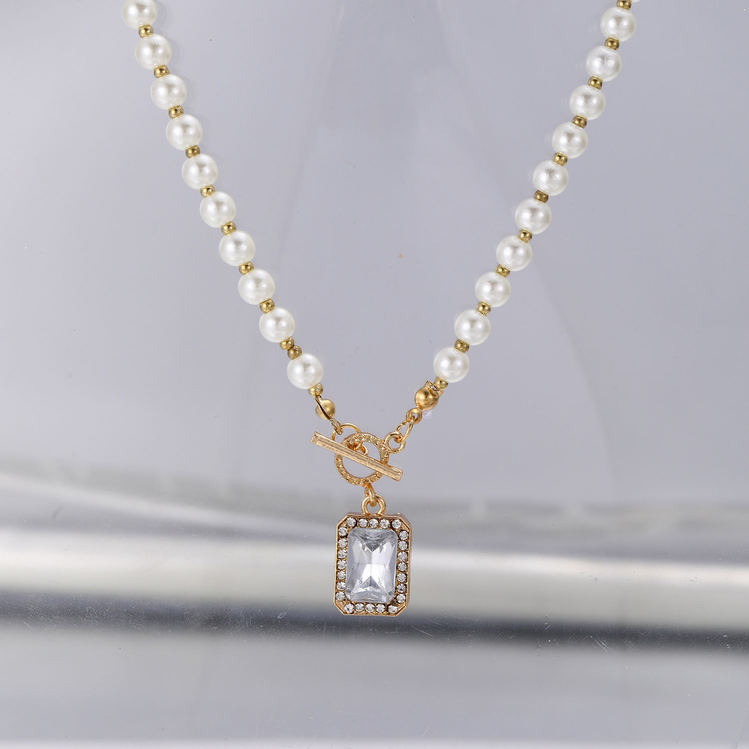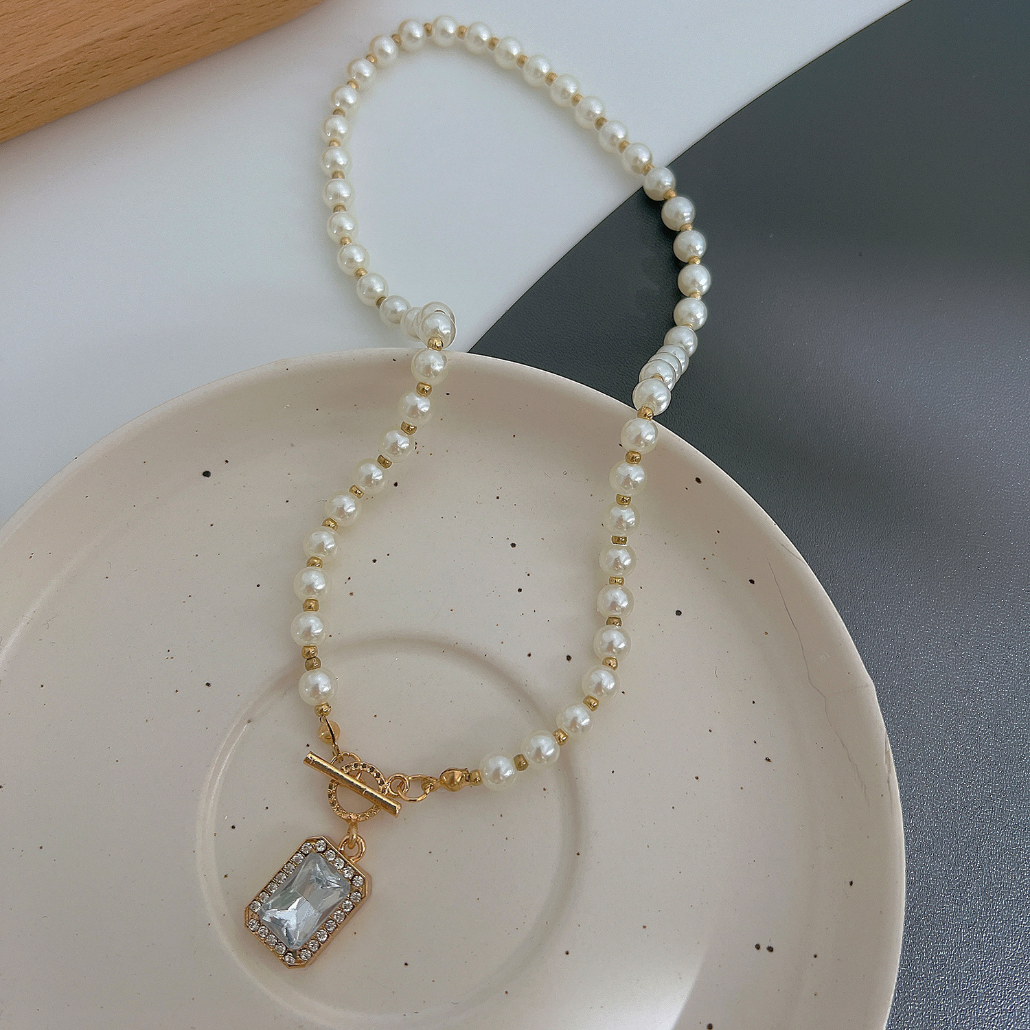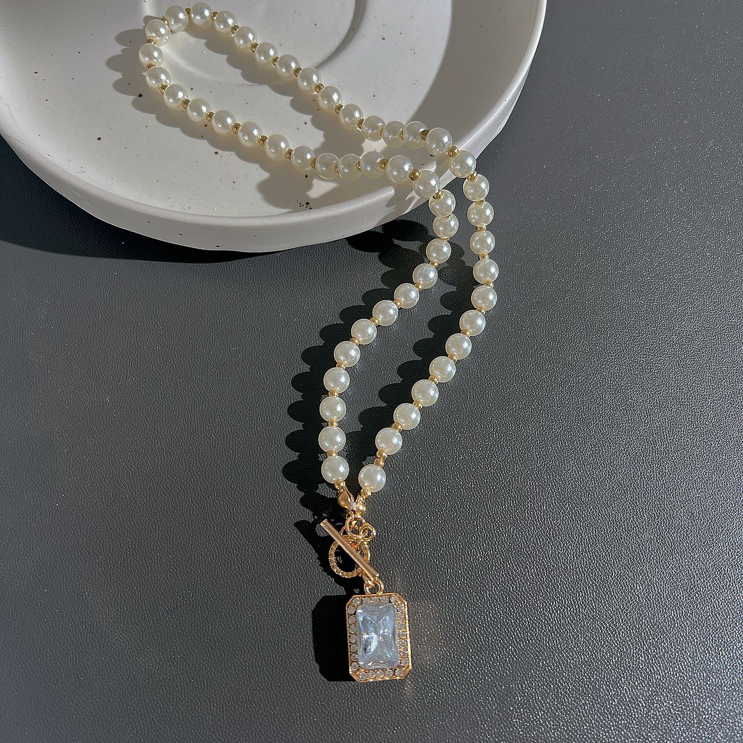 Plastik-Perlenkette, Zinklegierung, mit Kunststoff Perlen, plattiert, Modeschmuck & Micro pave Zirkonia & für Frau, goldfarben, Länge:ca. 38.5 cm, verkauft von PC