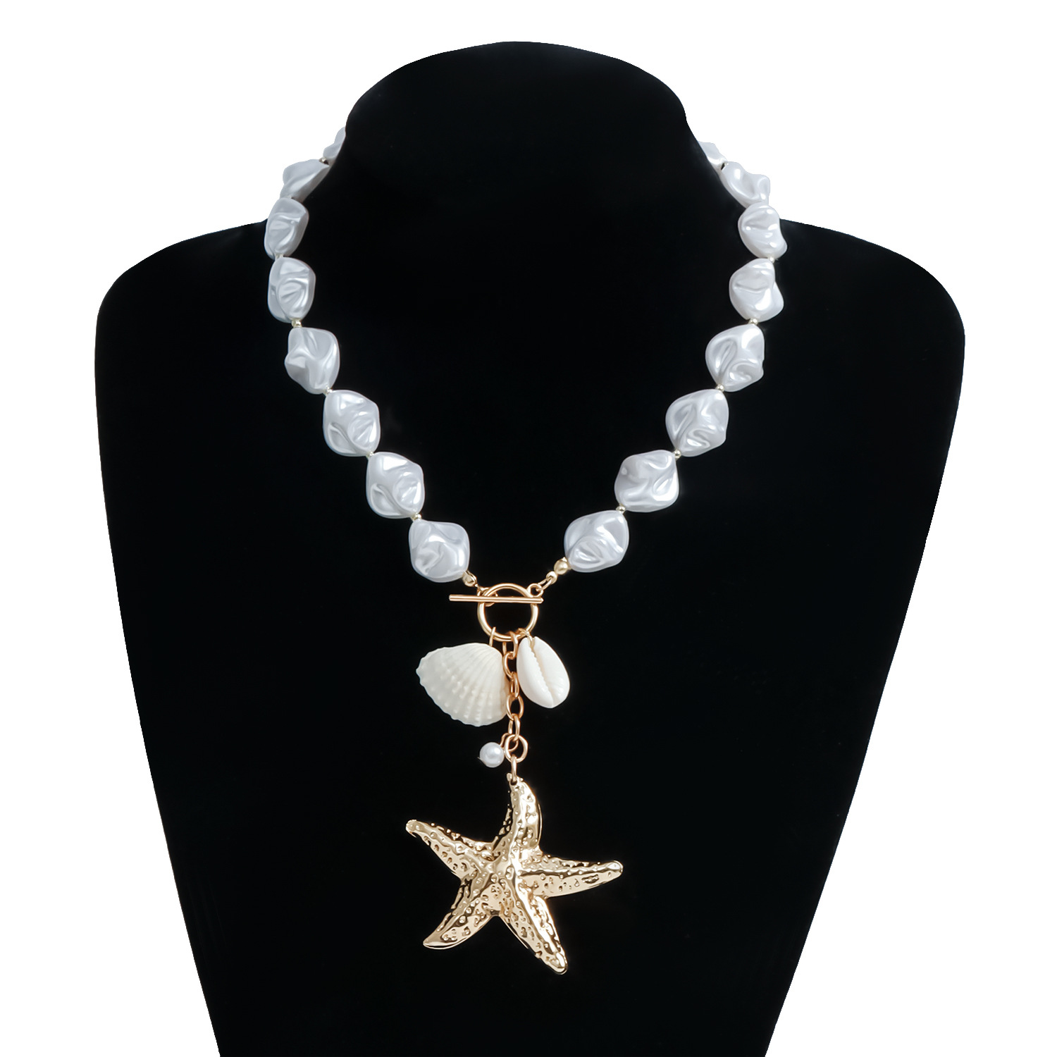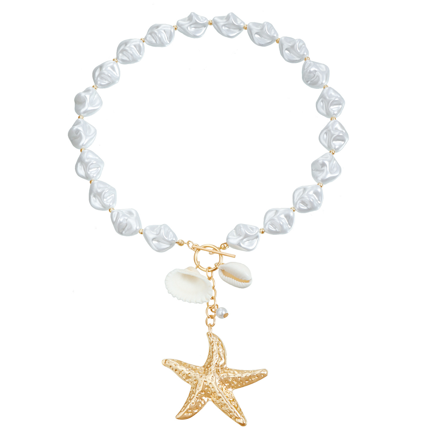 Zink Legierung Halskette, Zinklegierung, mit Muschel & Kunststoff Perlen, plattiert, Modeschmuck & für Frau, goldfarben, verkauft von PC