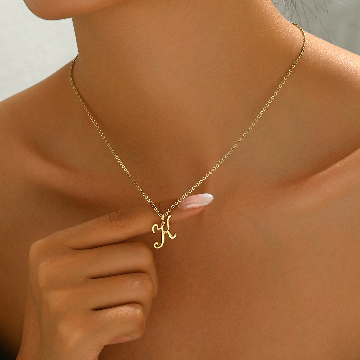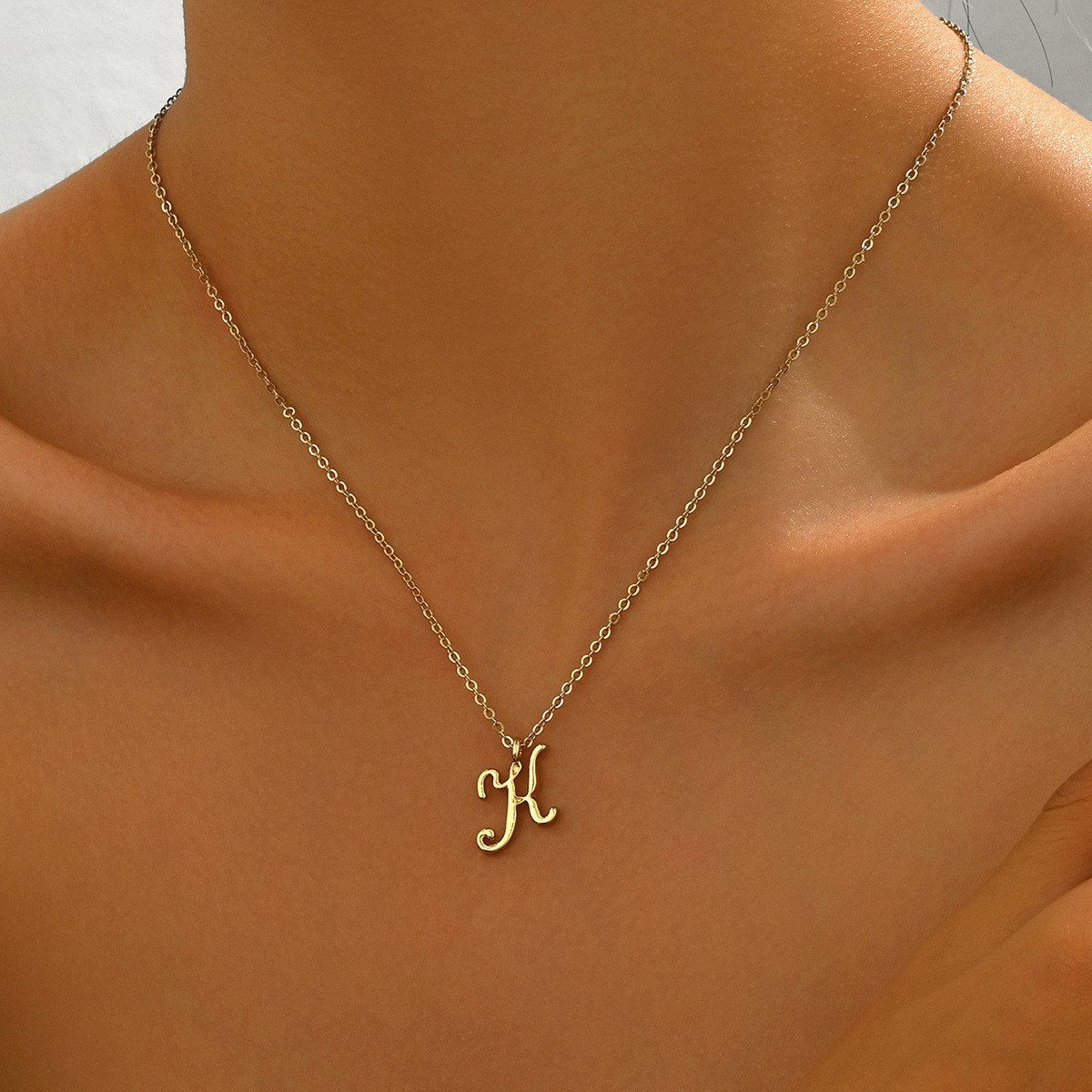 Zink Legierung Halskette, Zinklegierung, flache Runde, Platinfarbe platiniert, Oval-Kette & mit Brief Muster & für Frau & Schwärzen, 17x20mm, Länge:ca. 15.7 ZollInch, verkauft von Strang