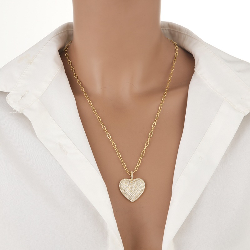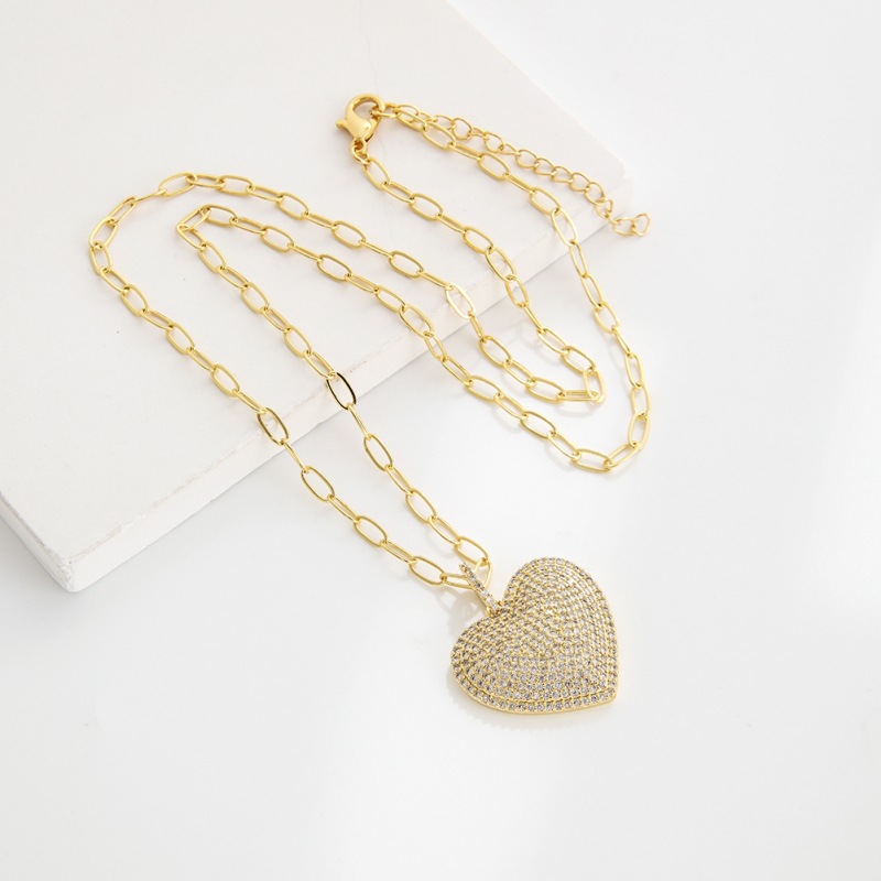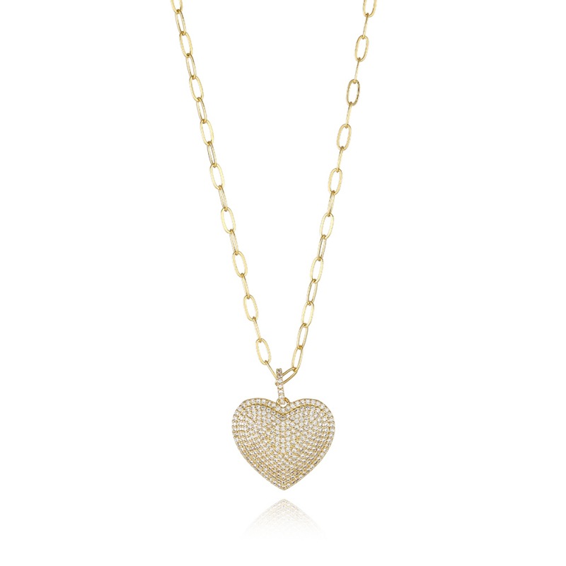 Zirkonia Mikro pflastern Messinghalsketten, Messing, Herz, vergoldet, Oval-Kette & Micro pave Zirkonia & für Frau, frei von Blei & Kadmium, 40cm, Länge:ca. 15.5 ZollInch, verkauft von Strang