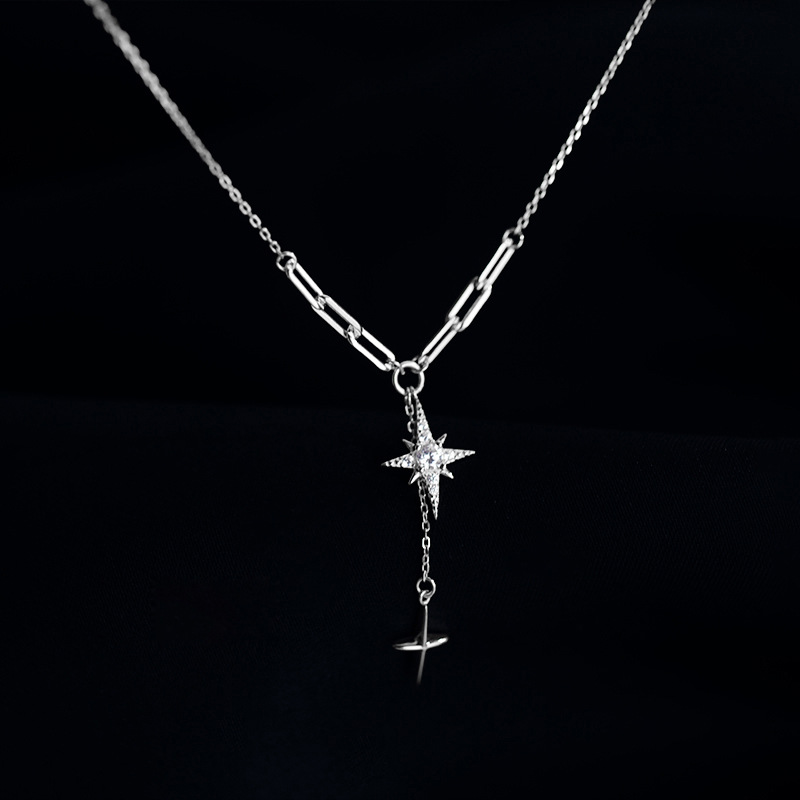 Zirkonia Mikro pflastern Messinghalsketten, Messing, mit Verlängerungskettchen von 5CM, plattiert, Micro pave Zirkonia & für Frau, Platin Farbe, Länge:ca. 40 cm, verkauft von PC