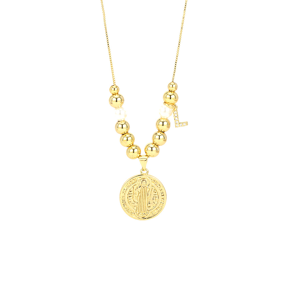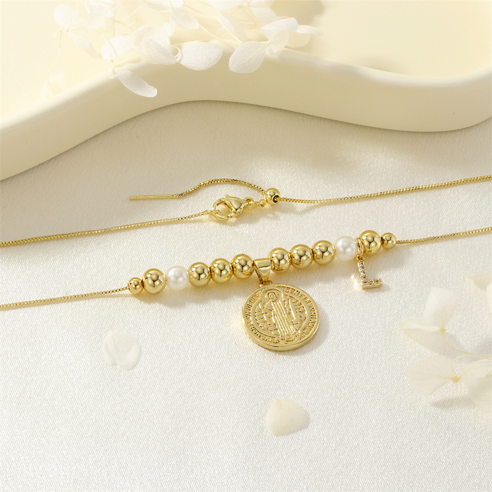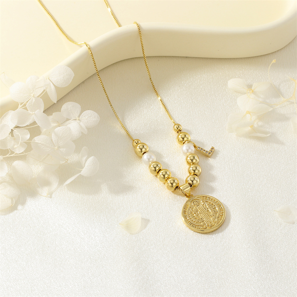 Handgemachte Messinghalskette, Messing, mit Kunststoff Perlen, rund, goldfarben plattiert, für Frau, Länge:40 cm, verkauft von PC