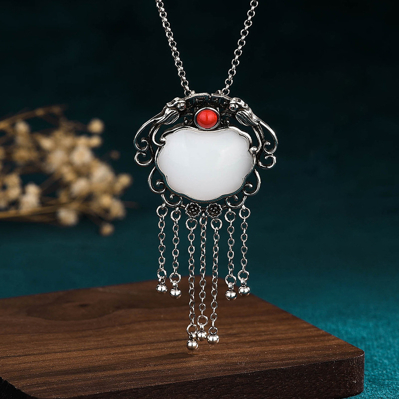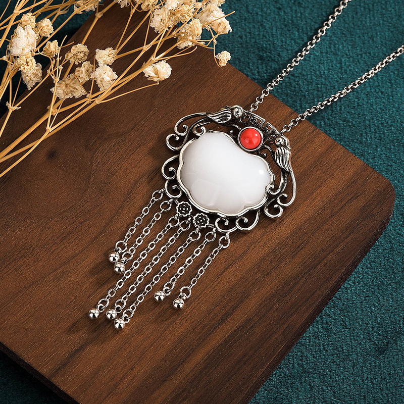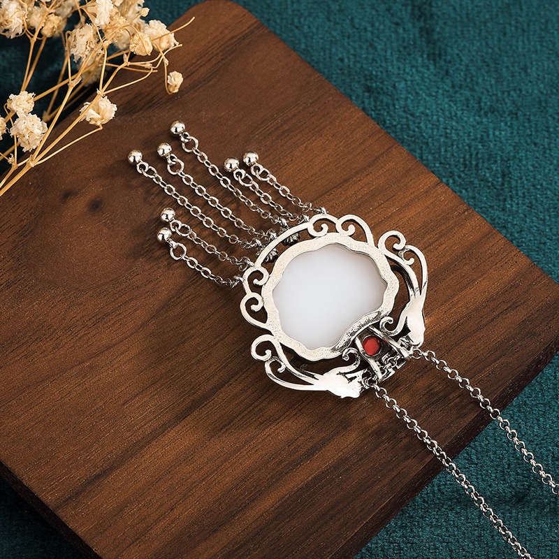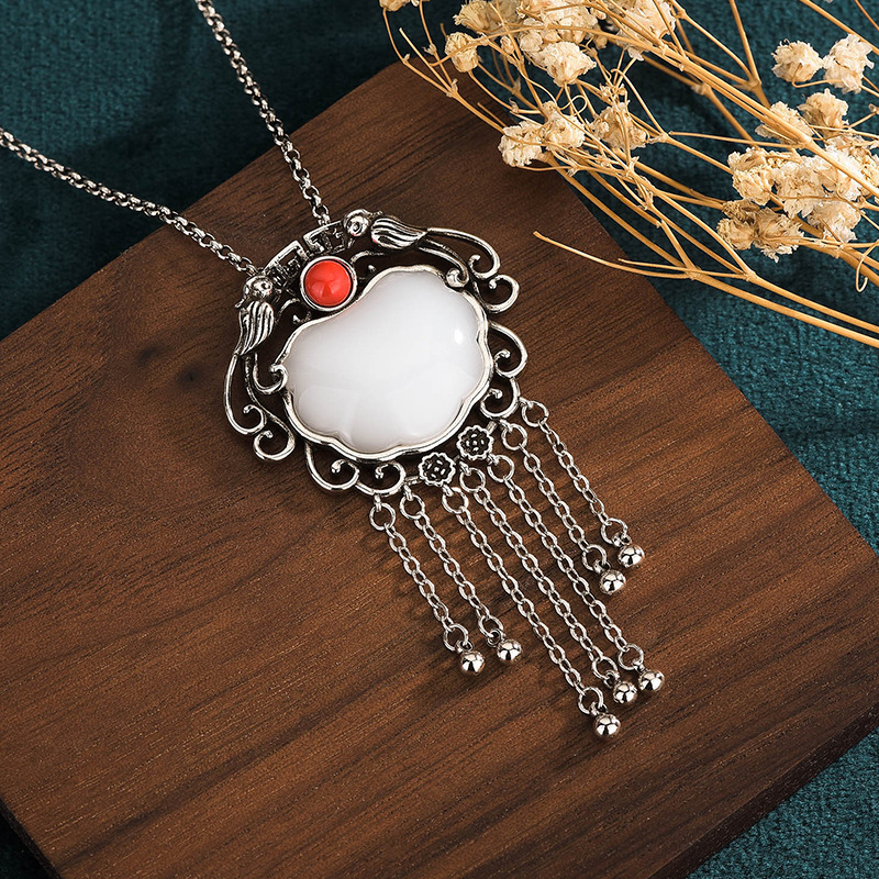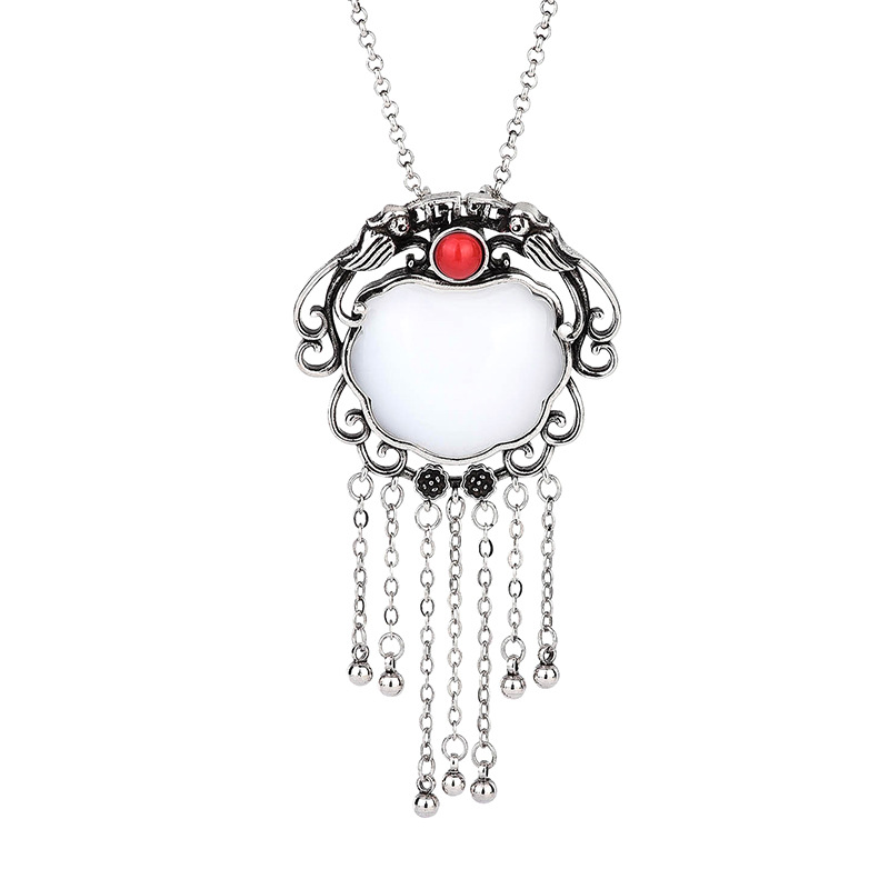 Handgemachte Messinghalskette, Messing, mit Synthetische Jade, Modeschmuck & für Frau, Silberfarbe, Länge:ca. 45 cm, verkauft von PC