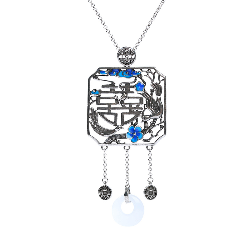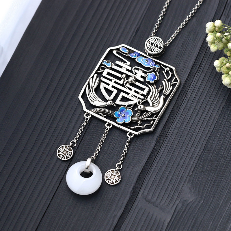 Handgemachte Messinghalskette, Messing, mit Synthetische Jade, für Frau & Emaille, Silberfarbe, Länge:ca. 45 cm, verkauft von PC