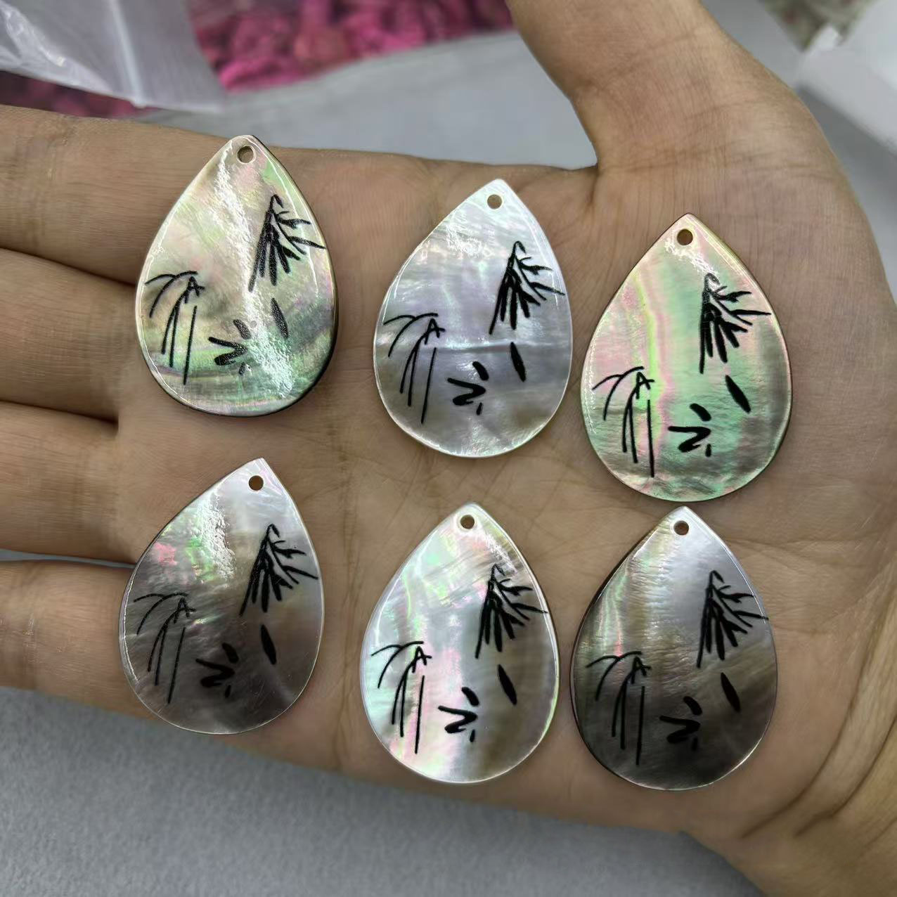 Natürlichen Muschel -Anhänger, Seemuschel, Tropfen, DIY, schwarz, 25x35mm, verkauft von PC