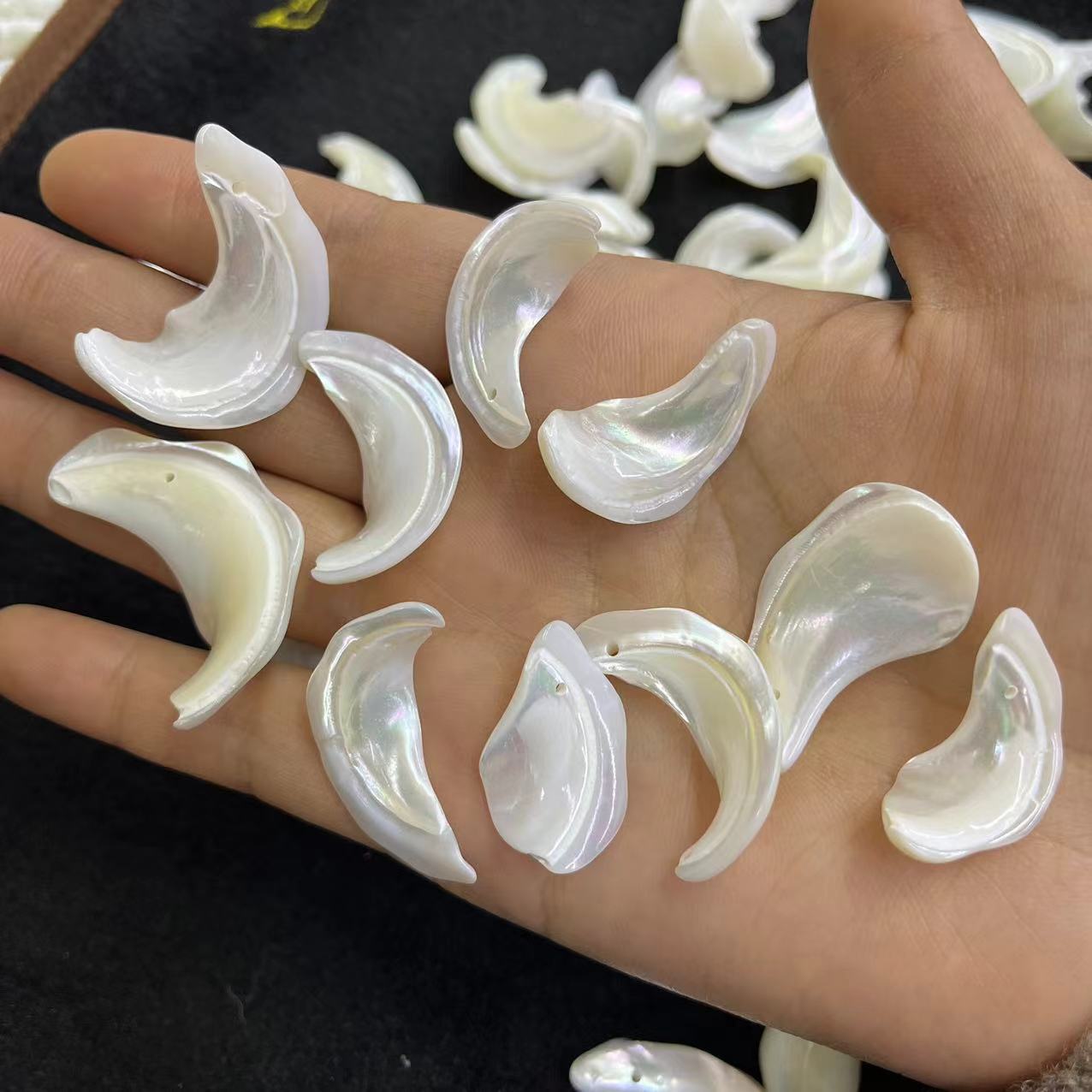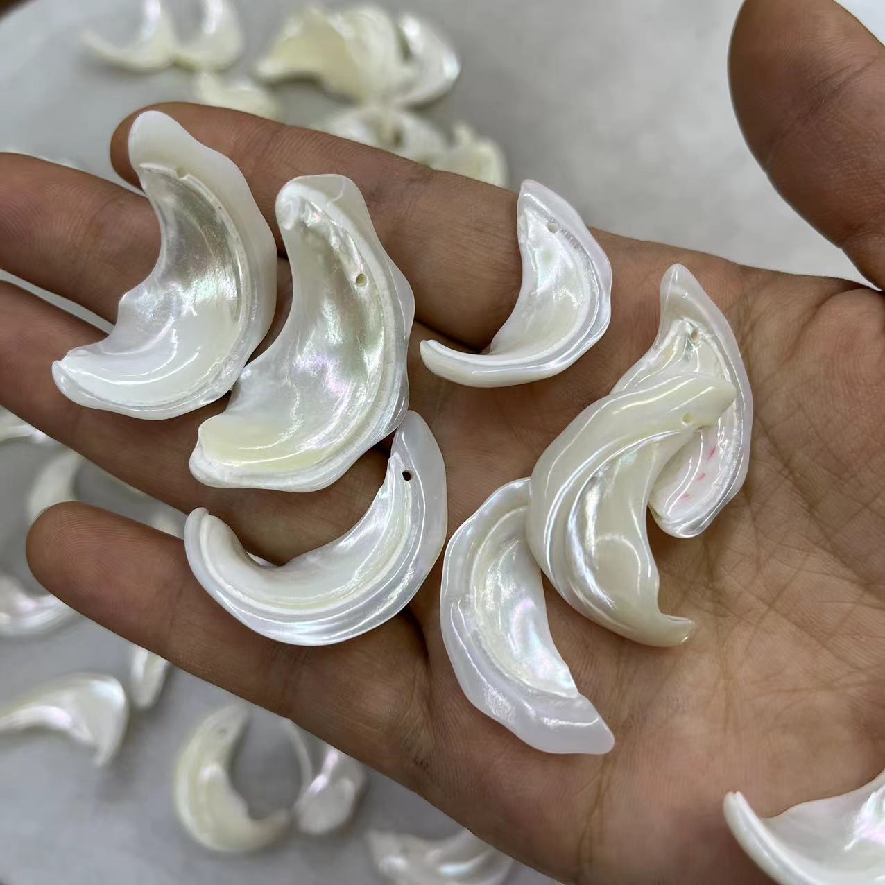 Natürlichen Muschel -Anhänger, Turbanschnecken, Mond, DIY, weiß, Length about 25-38mm, verkauft von PC