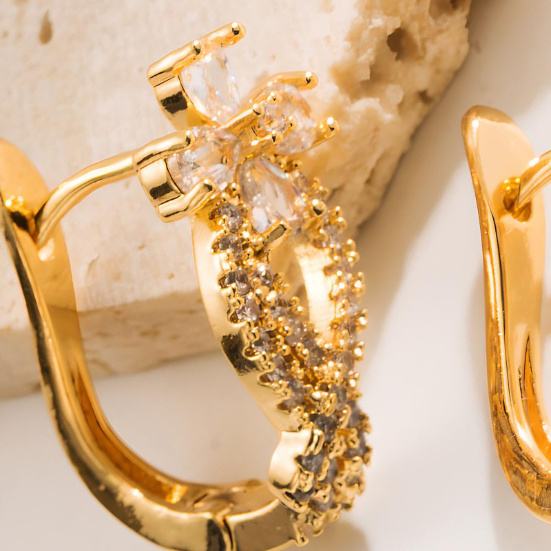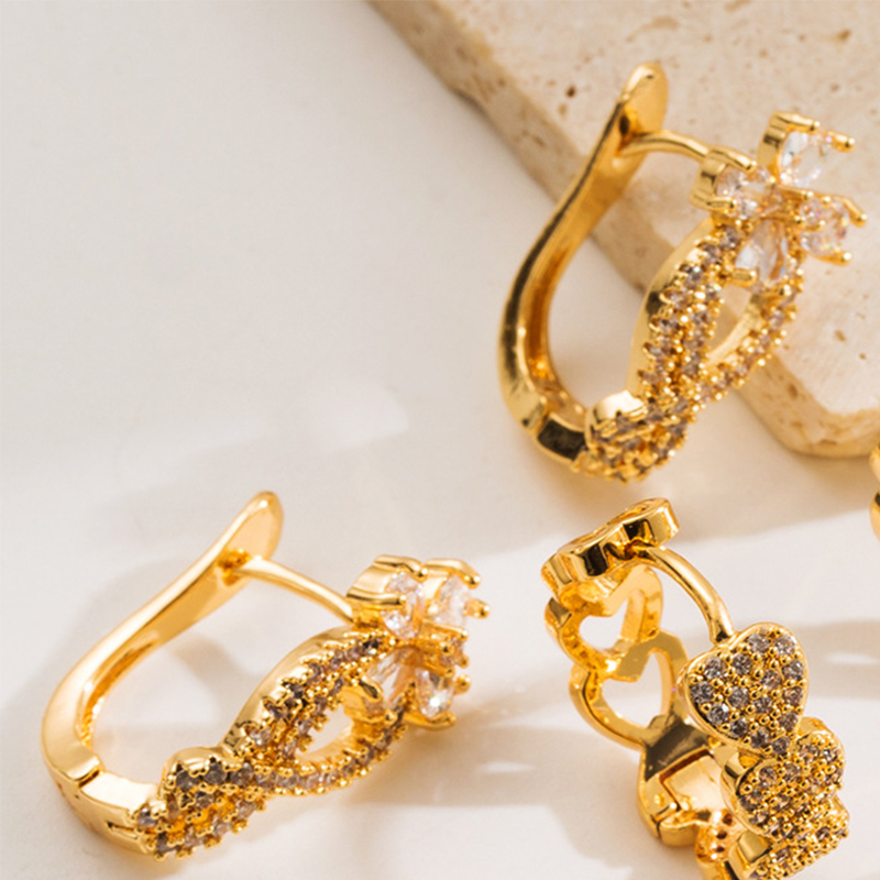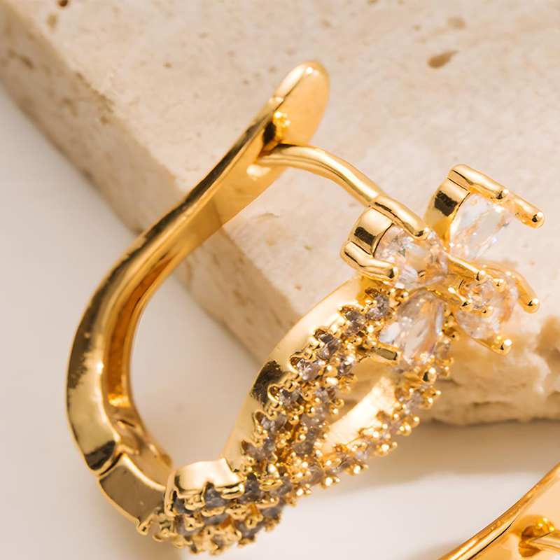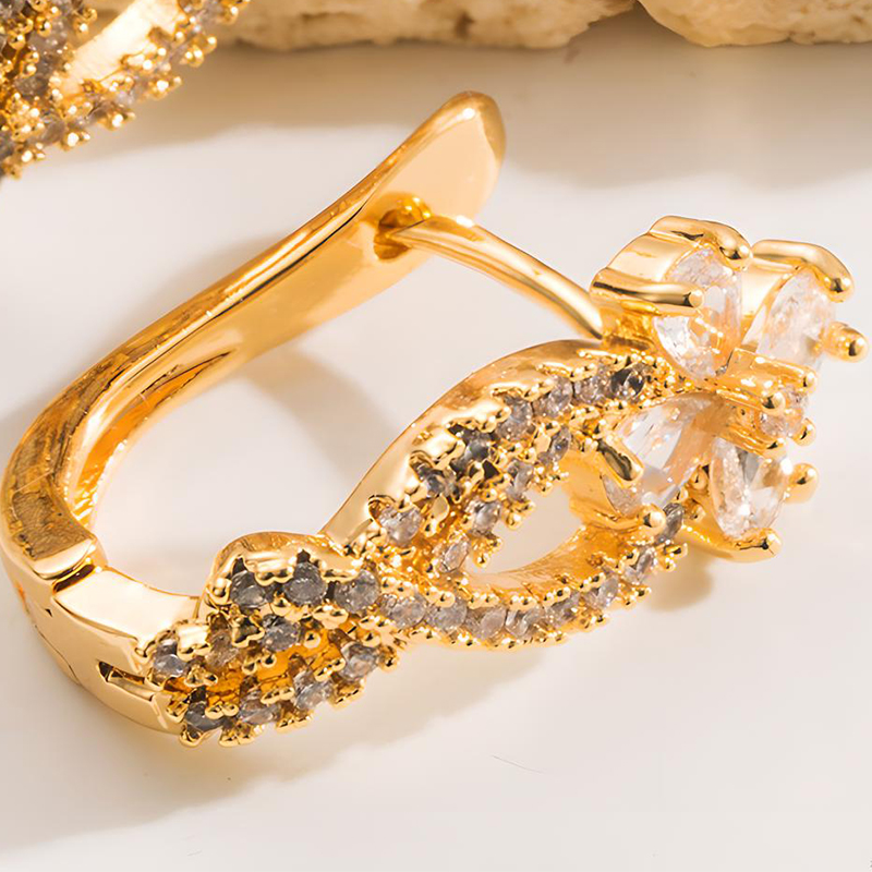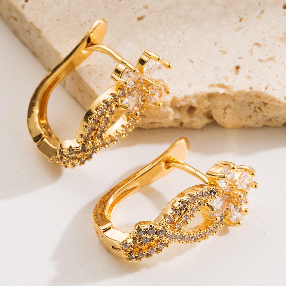 Kupfer Hebel Rückseiten Ohrring, Blume, goldfarben plattiert, für Frau & mit Strass, 20x20mm, verkauft von Paar