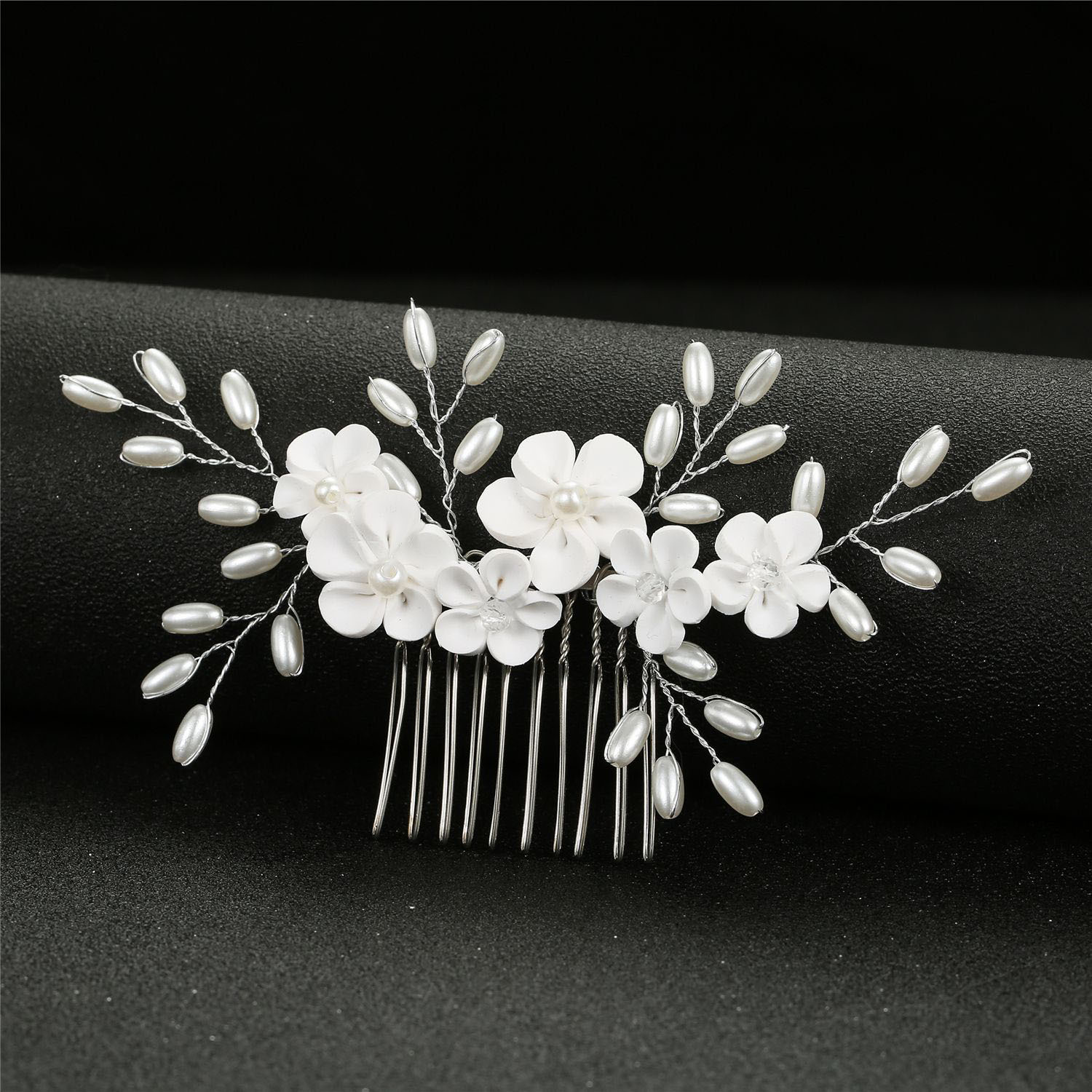 Dekoratives Haarkämmchen, Zinklegierung, mit Messingdraht & Polymer Ton & Kunststoff Perlen, handgemacht, Modeschmuck & für Frau, weiß, 130x70mm, verkauft von PC