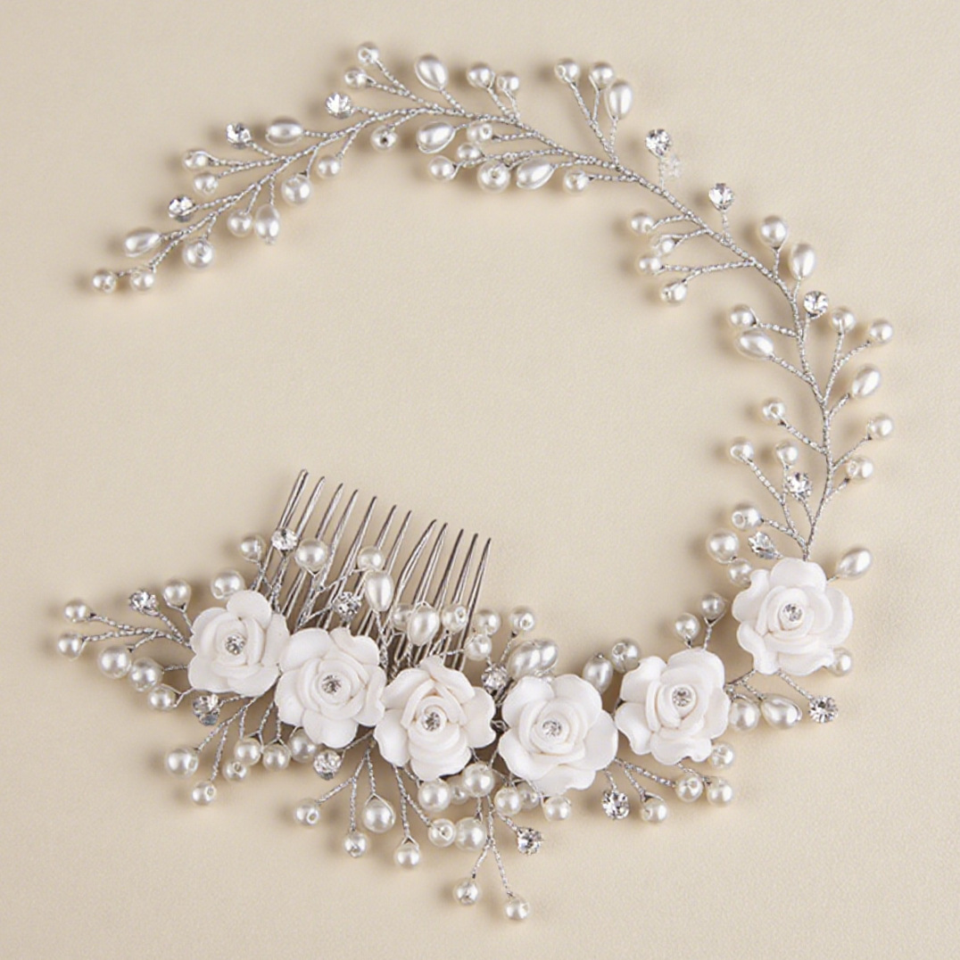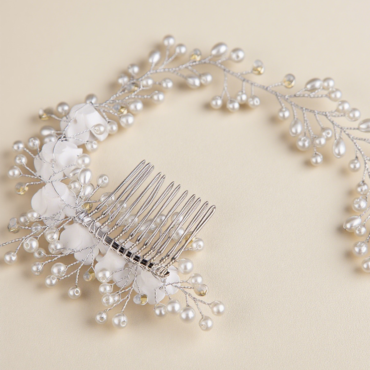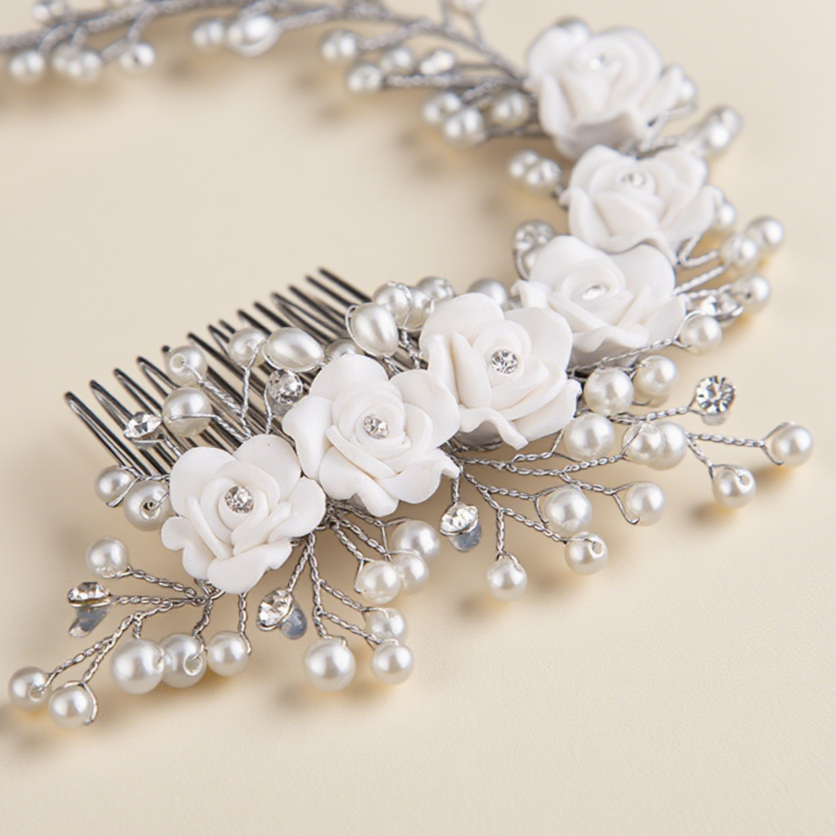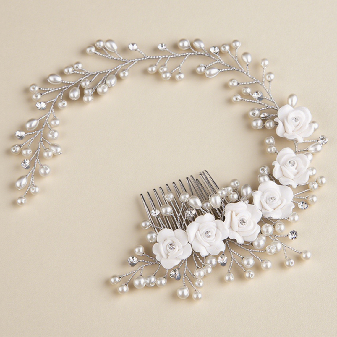 Dekoratives Haarkämmchen, Zinklegierung, mit Harz & Kunststoff Perlen, verschiedene Stile für Wahl & für Frau & mit Strass, weiß, verkauft von PC