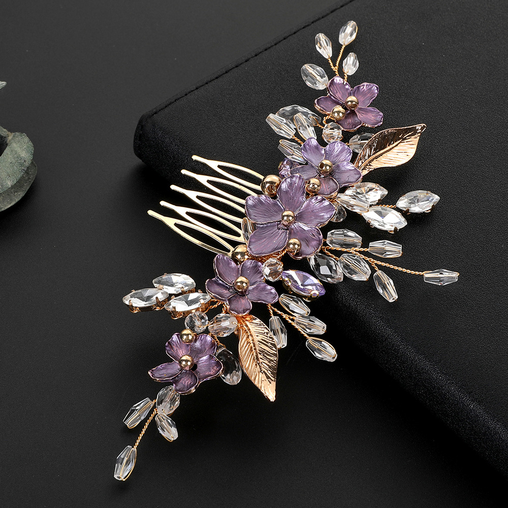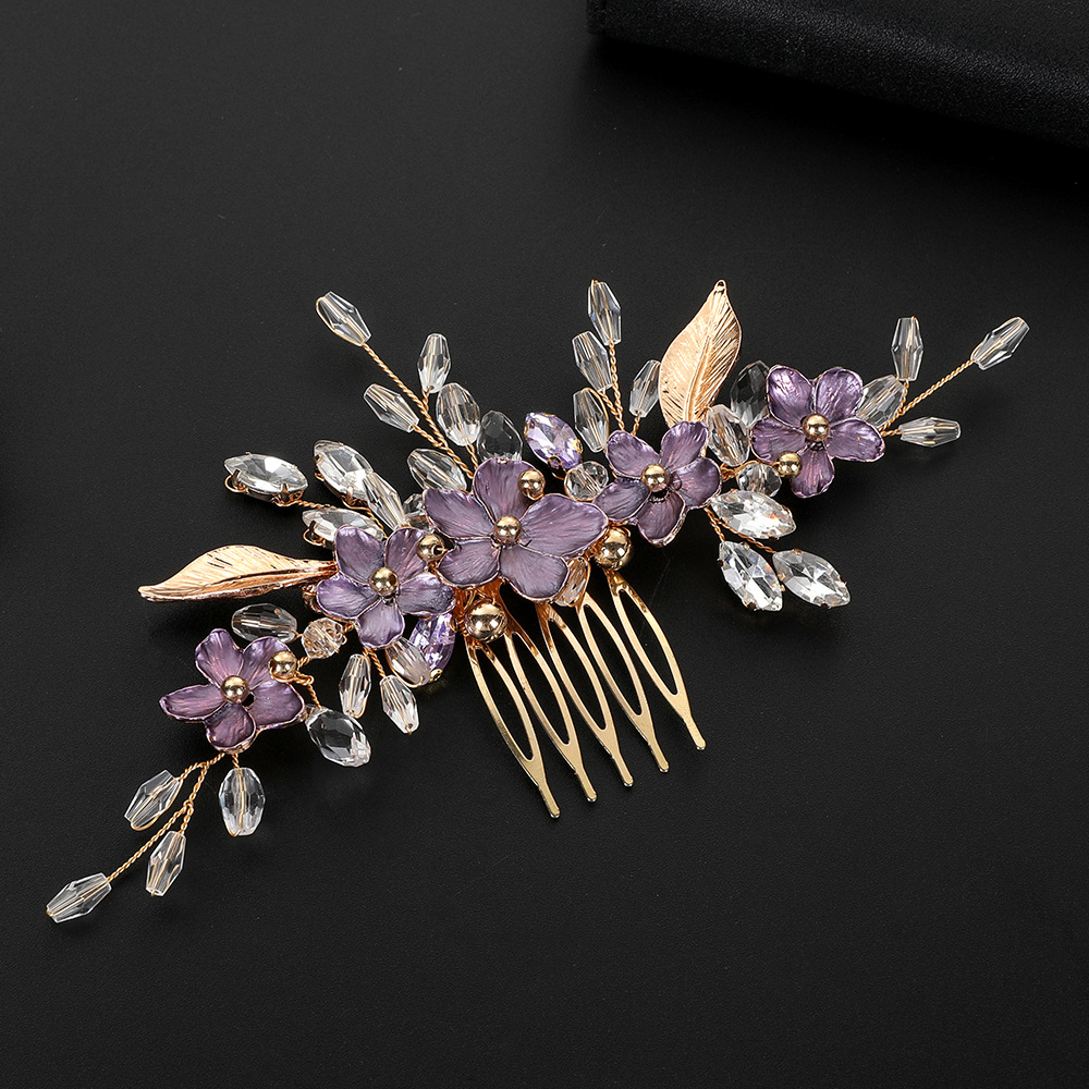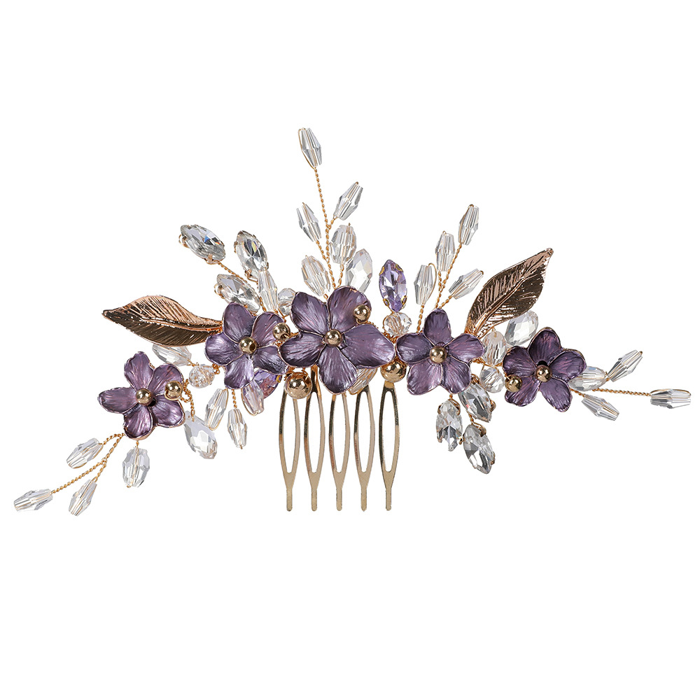 Braut Dekoratives Haarkämmchen, Zinklegierung, mit Messingdraht & Kristall, handgemacht, Modeschmuck & für Frau & Emaille, goldfarben, 130x80x10mm, verkauft von PC