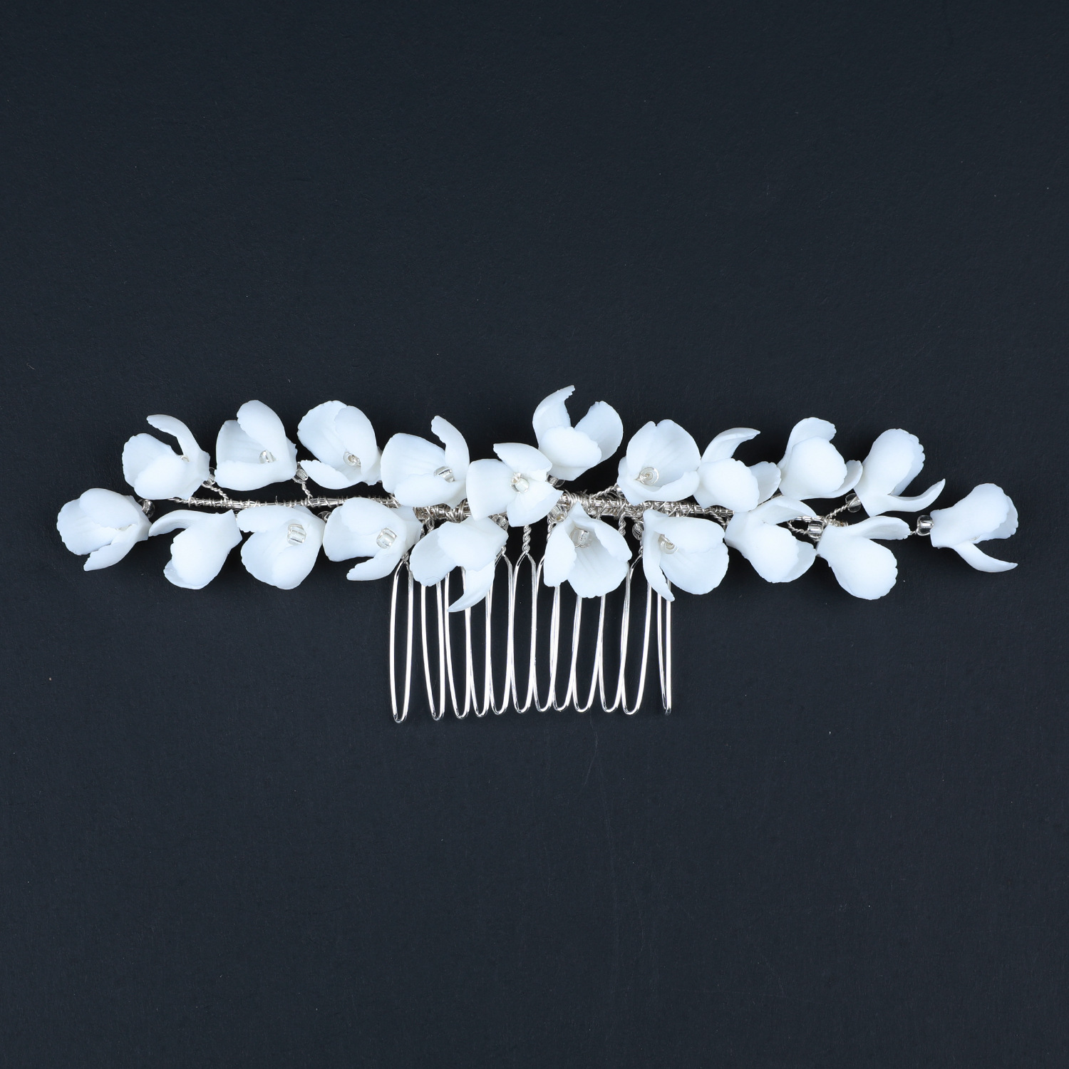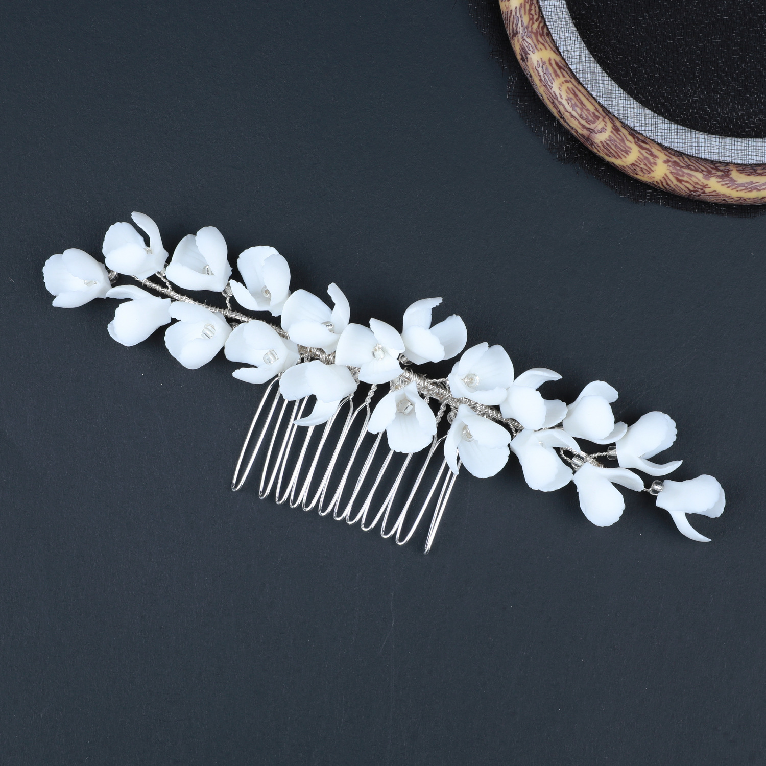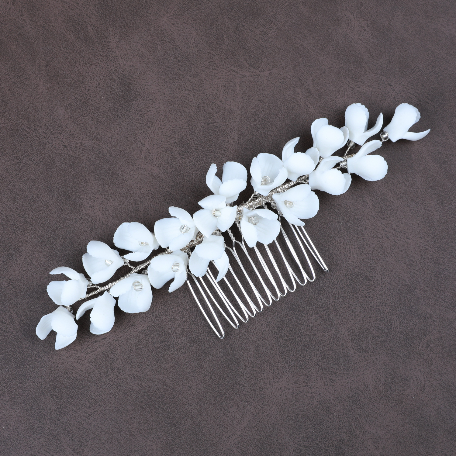 Braut Dekoratives Haarkämmchen, Zinklegierung, mit Messingdraht & Polymer Ton & Kristall, handgemacht, Modeschmuck & für Frau, Silberfarbe, 150x40x15mm, verkauft von PC
