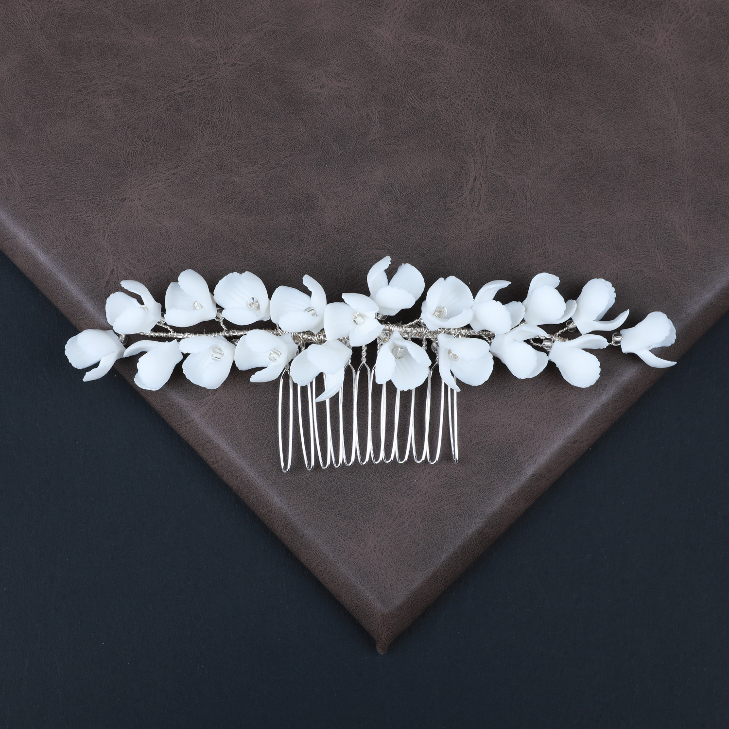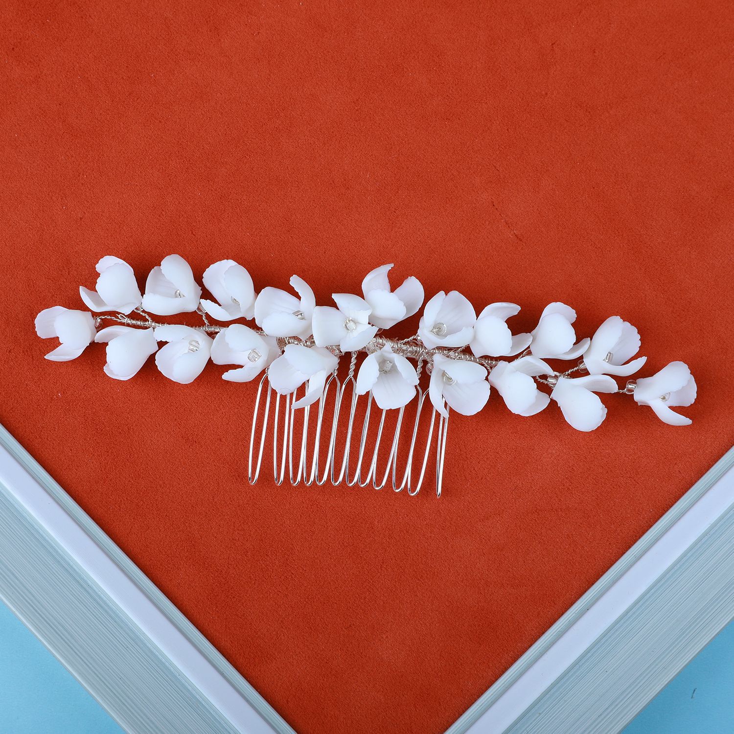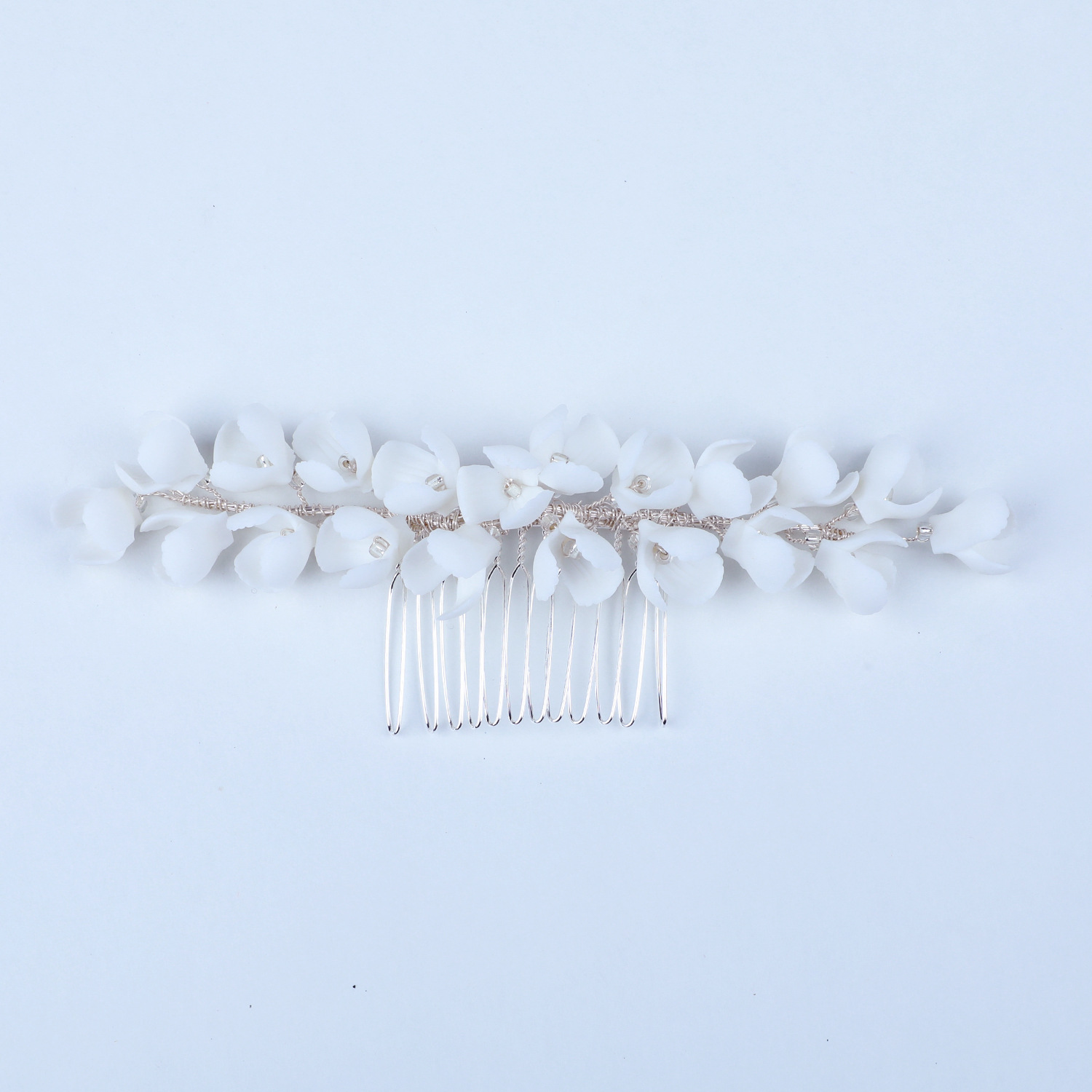 Braut Dekoratives Haarkämmchen, Zinklegierung, mit Messingdraht & Polymer Ton & Kristall, handgemacht, Modeschmuck & für Frau, Silberfarbe, 150x40x15mm, verkauft von PC