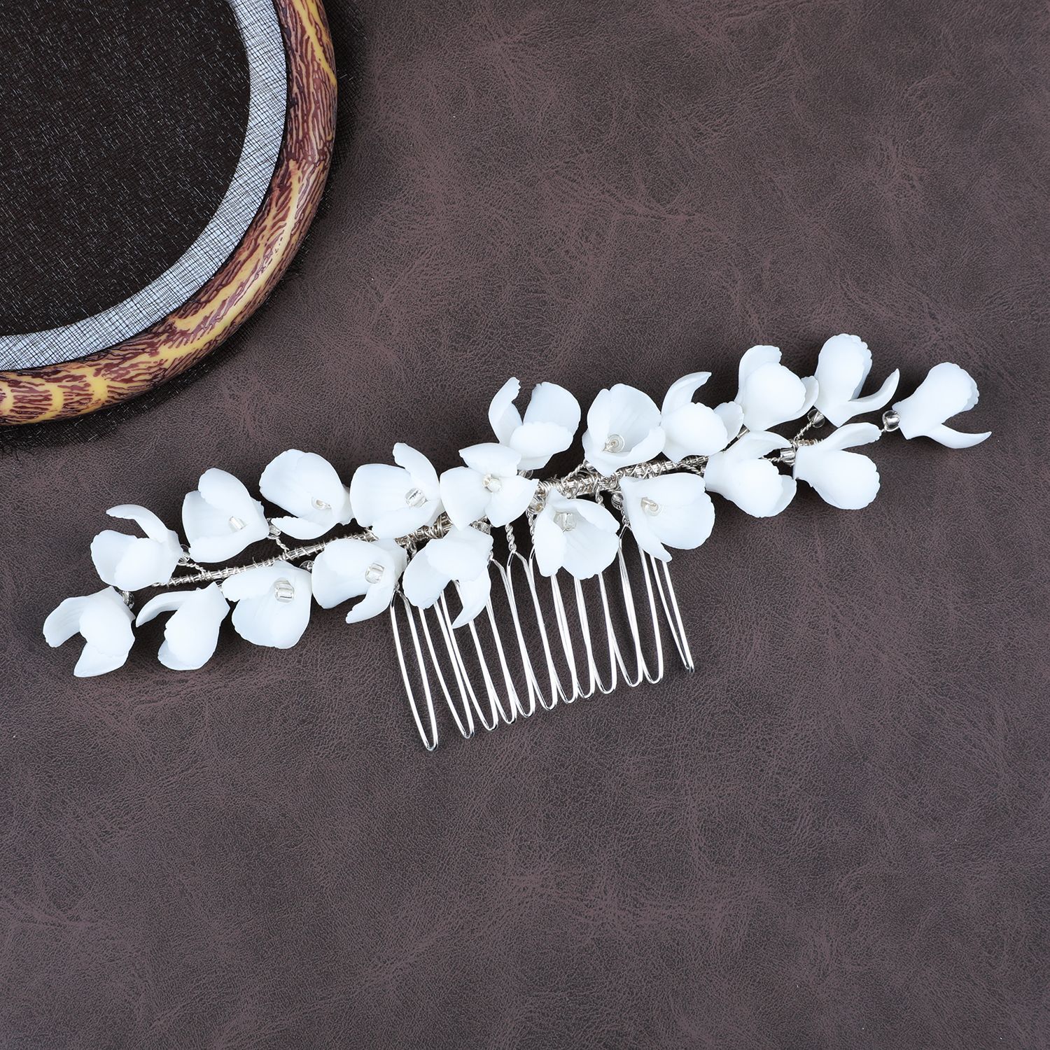 Braut Dekoratives Haarkämmchen, Messing, mit Kristall & Kunststoff Perlen & Eisen, plattiert, Modeschmuck & Hochzeitsgeschenk & für Frau, weiß, 210x130mm, verkauft von PC