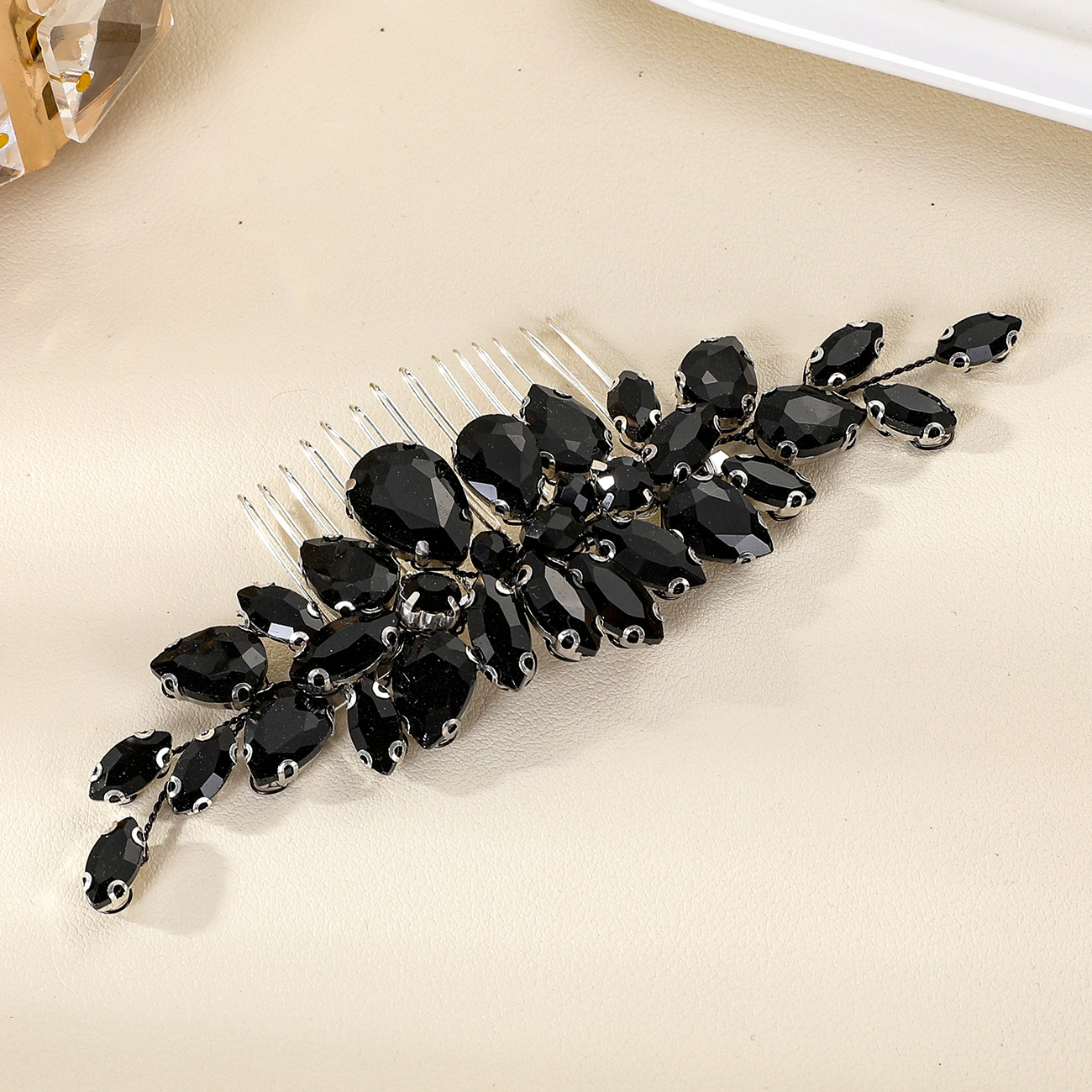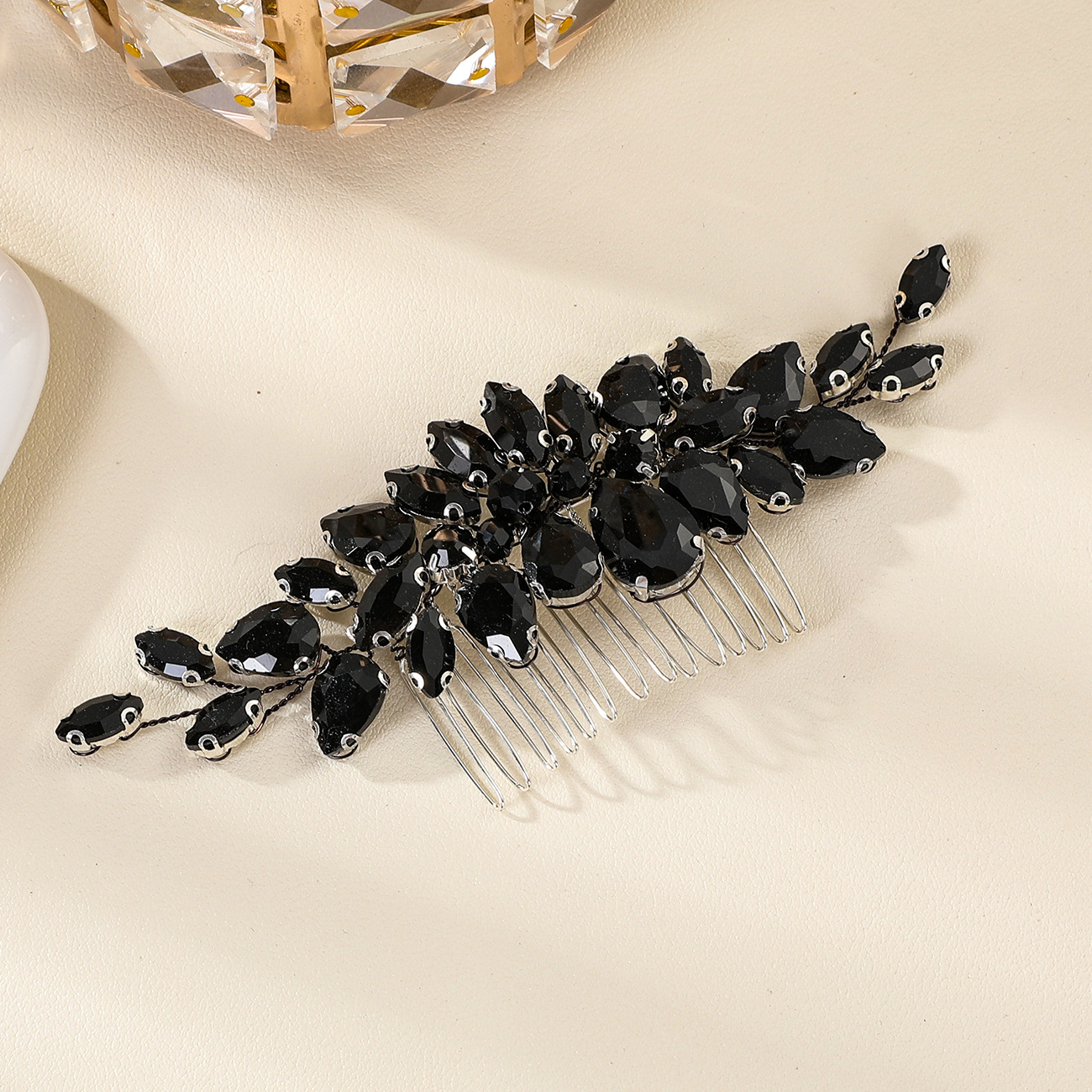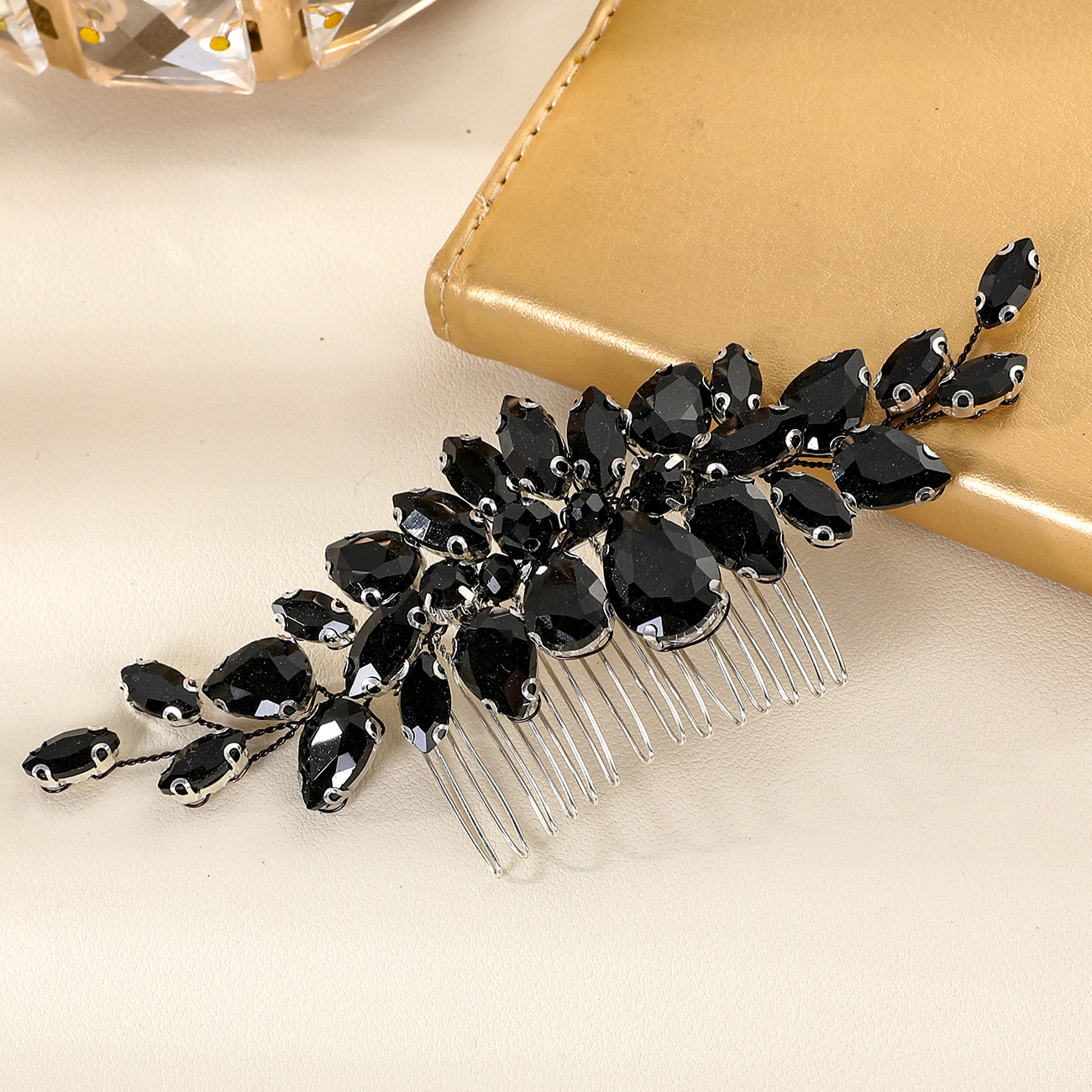 Braut Dekoratives Haarkämmchen, Zinklegierung, mit Messingdraht & Kristall, handgemacht, Modeschmuck & für Frau, schwarz, verkauft von PC